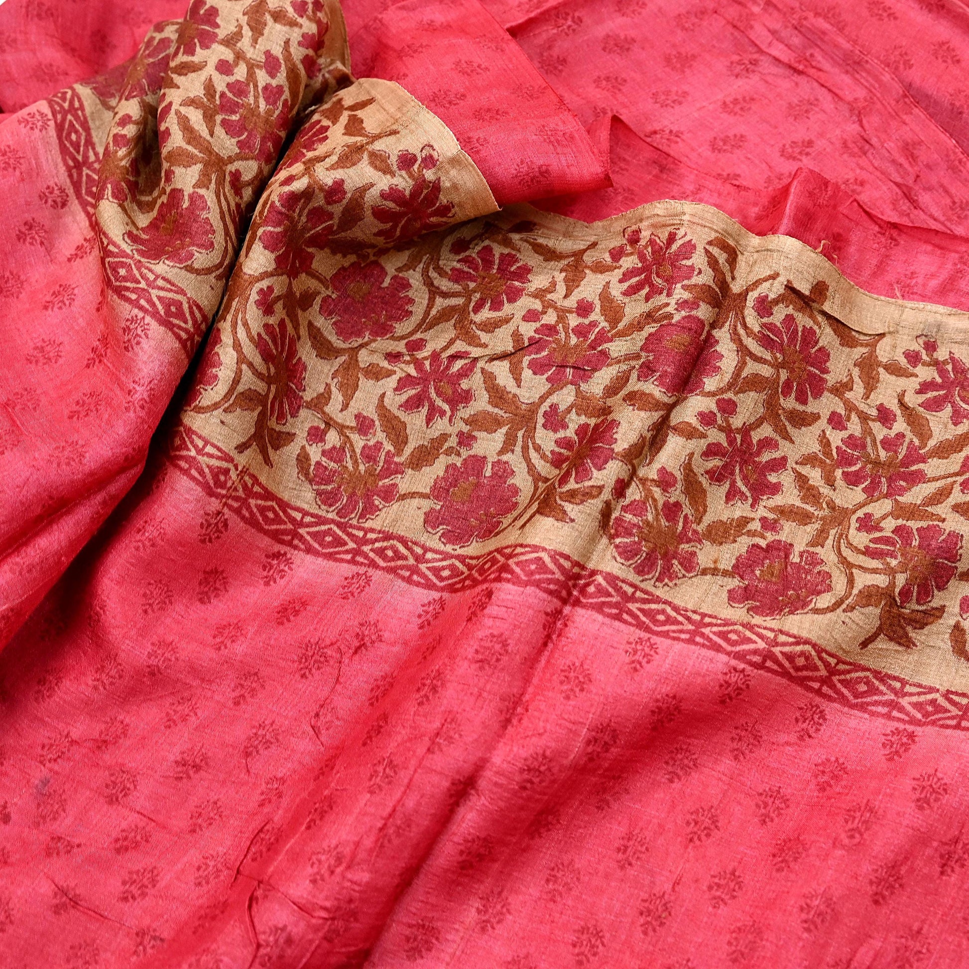 *An Awesome Peach & Beige Colored 100% Pure Khadi Silk Handloom Block Printed Sari.