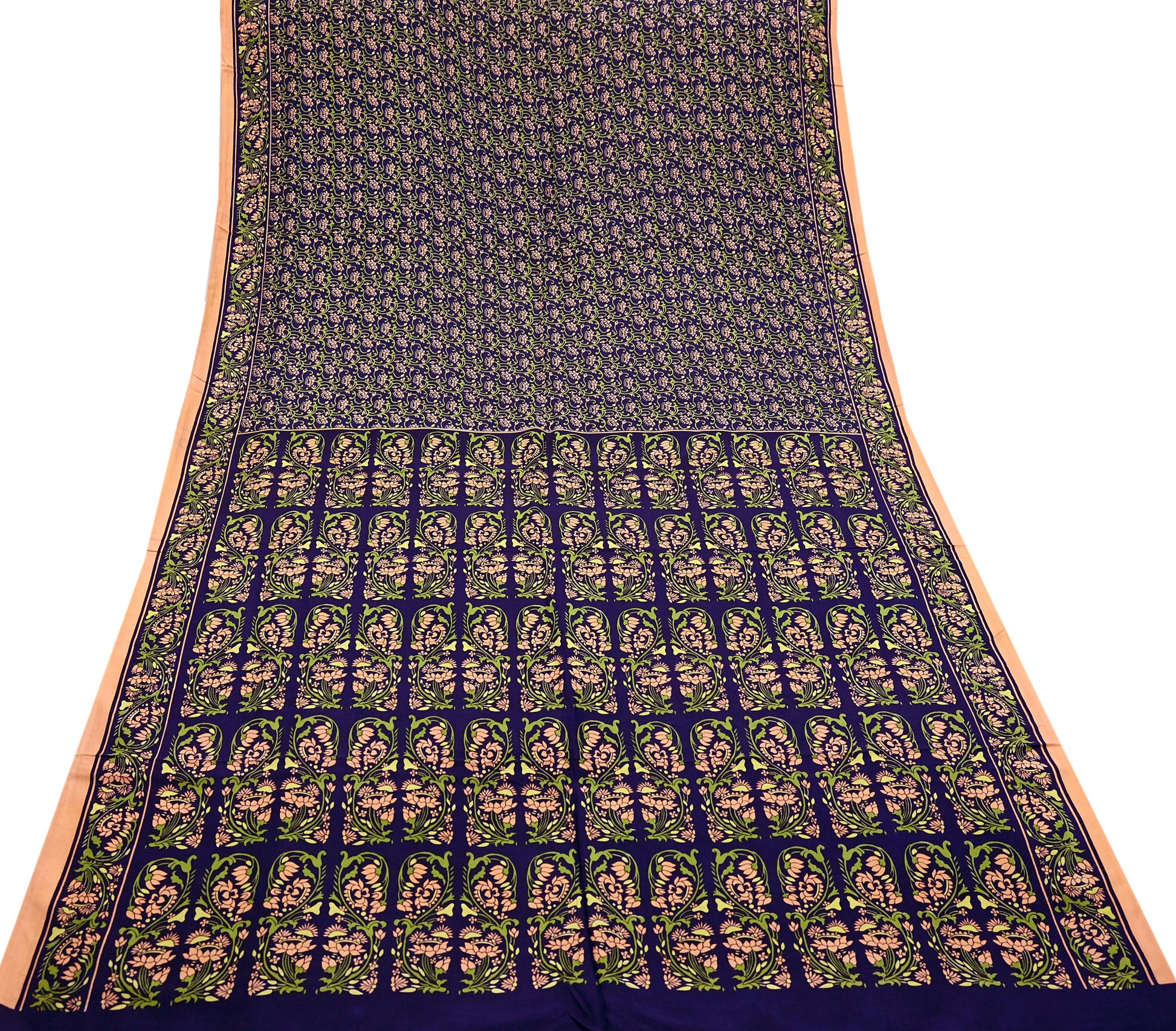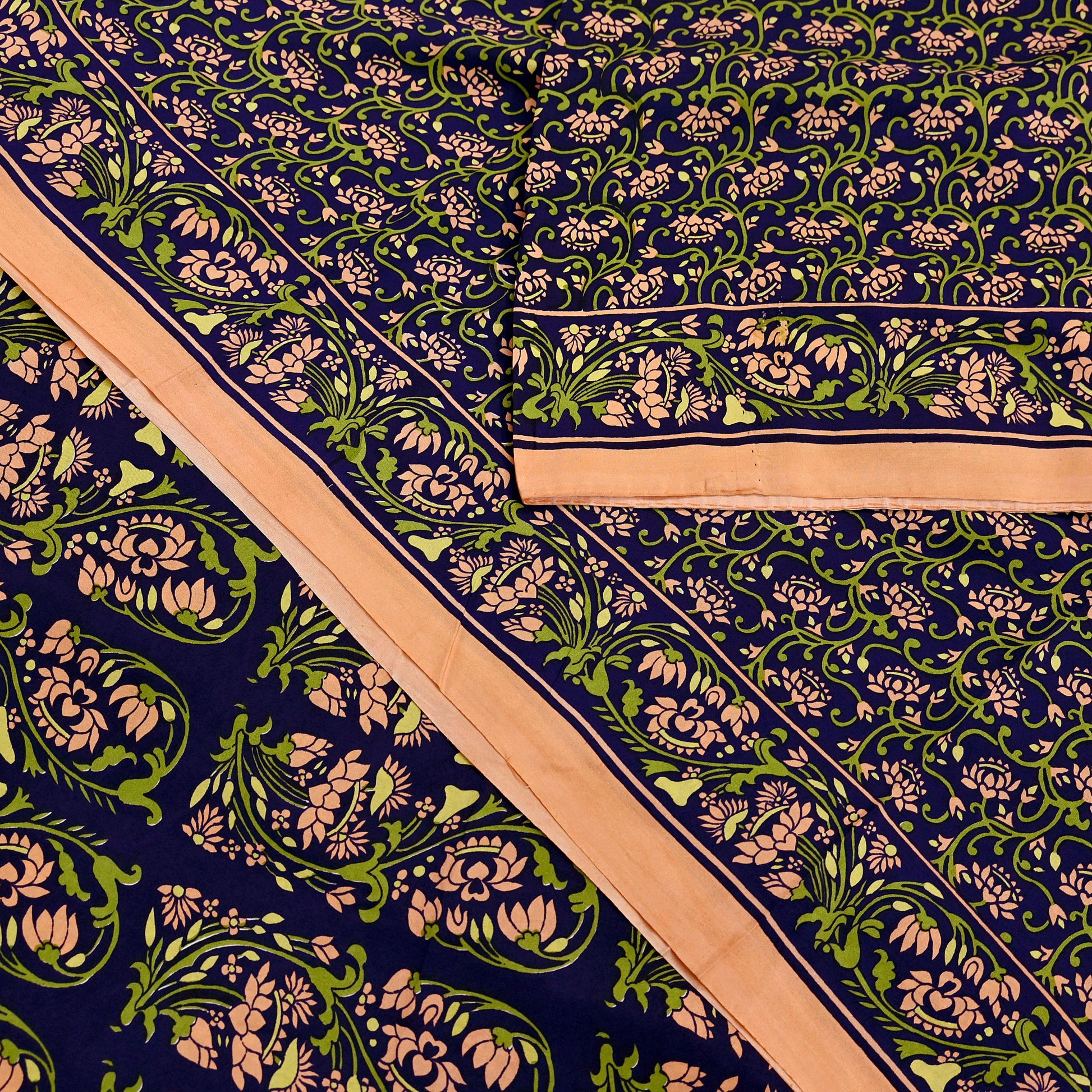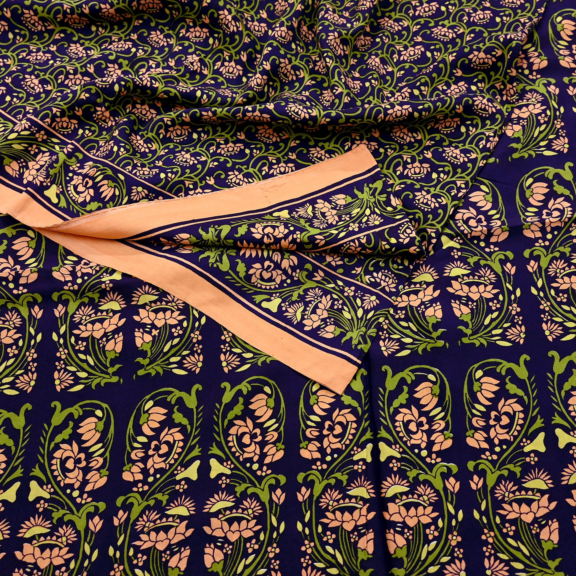 Indian Vintage Peach & Blue Sarees Pure Silk Printed Sari 6yd Sewing Craft Fabric DressMaking Floral Soft Crafting Quilting