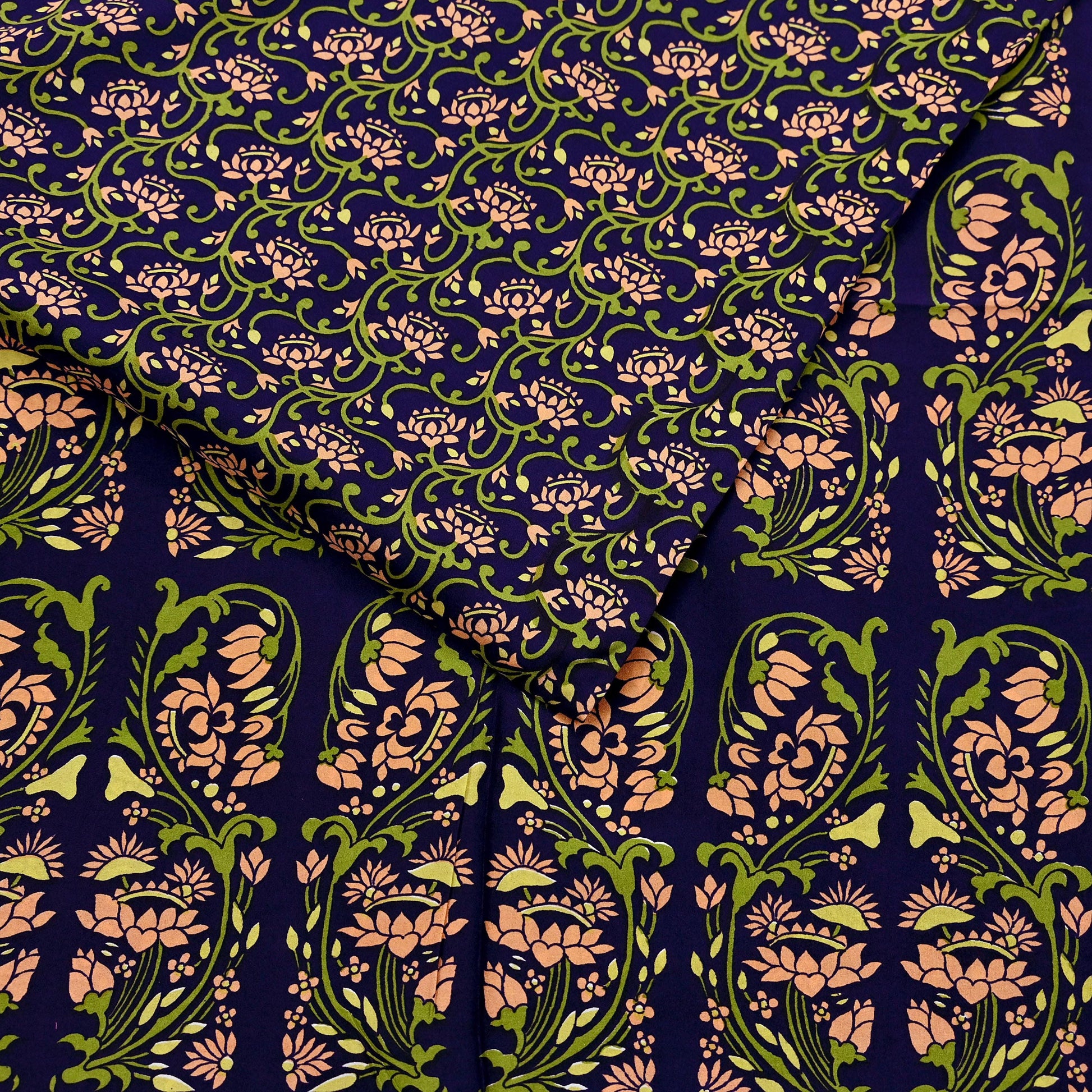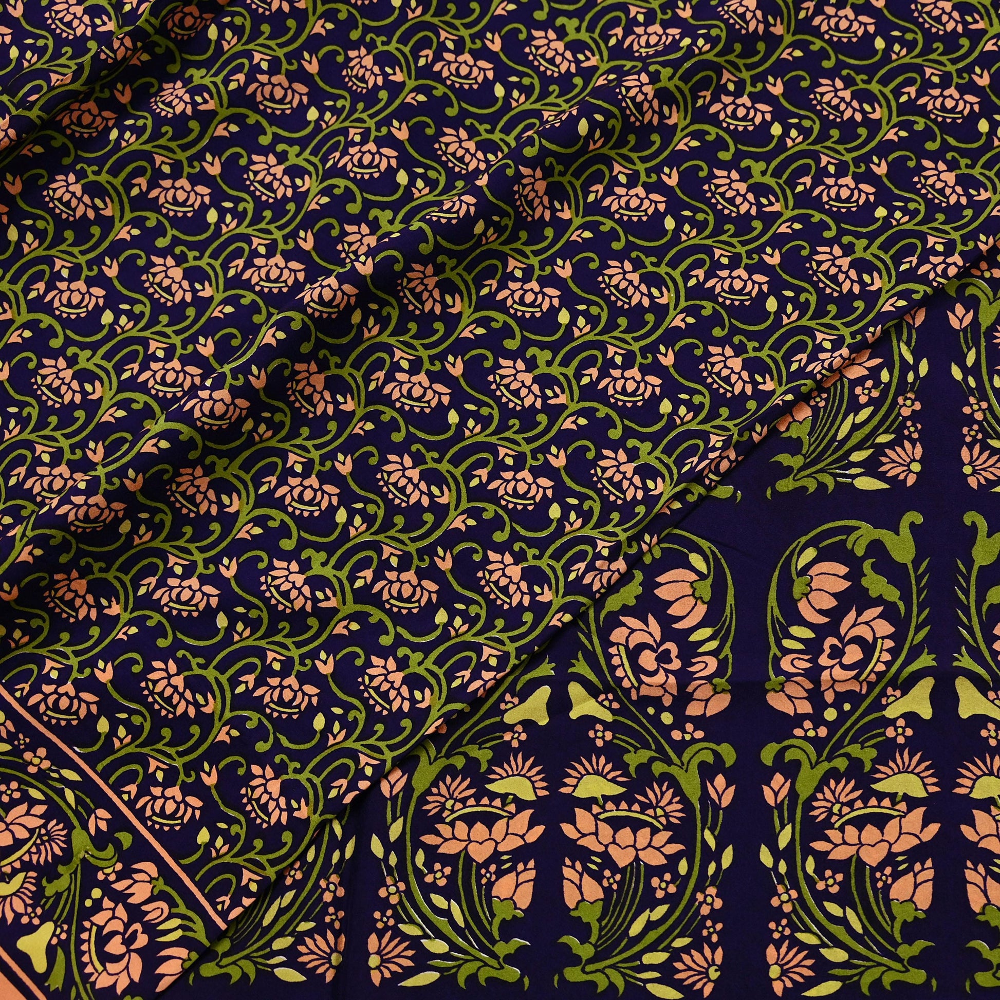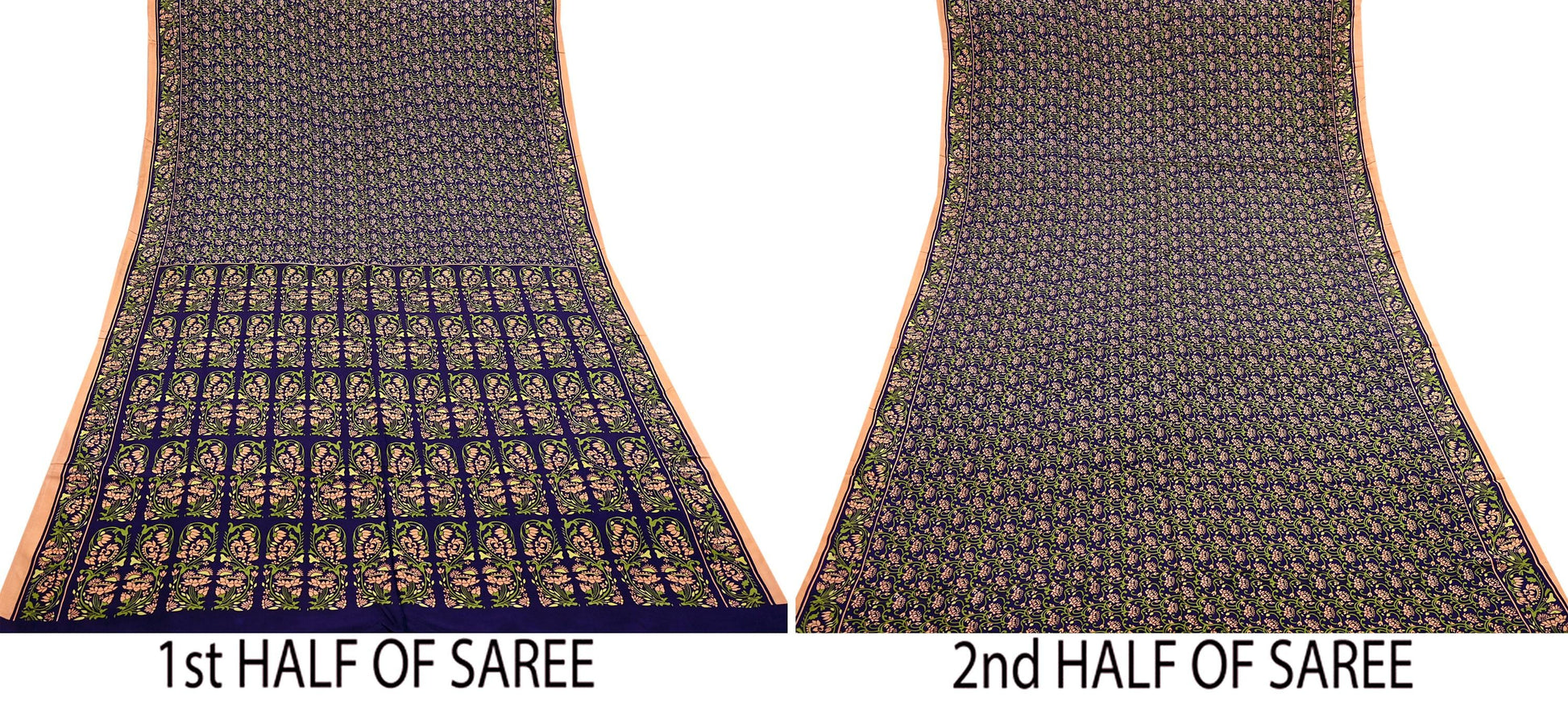 Indian Vintage Peach & Blue Sarees Pure Silk Printed Sari 6yd Sewing Craft Fabric DressMaking Floral Soft Crafting Quilting