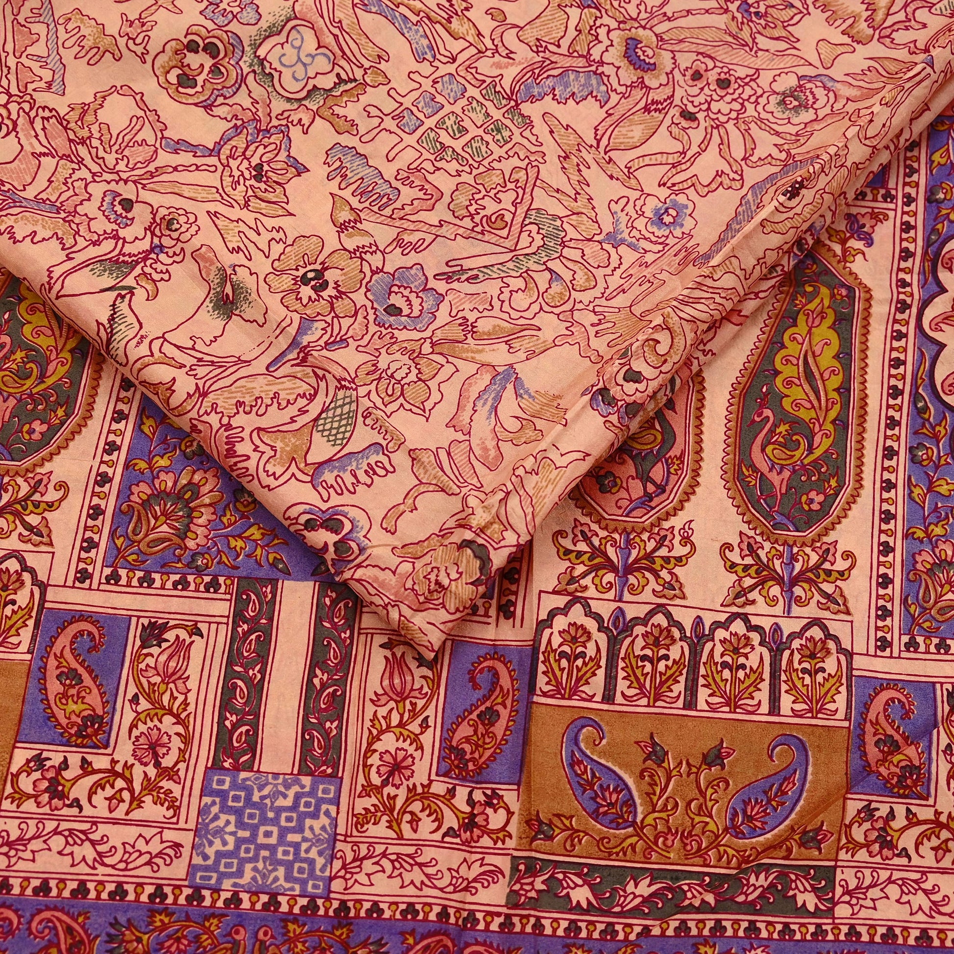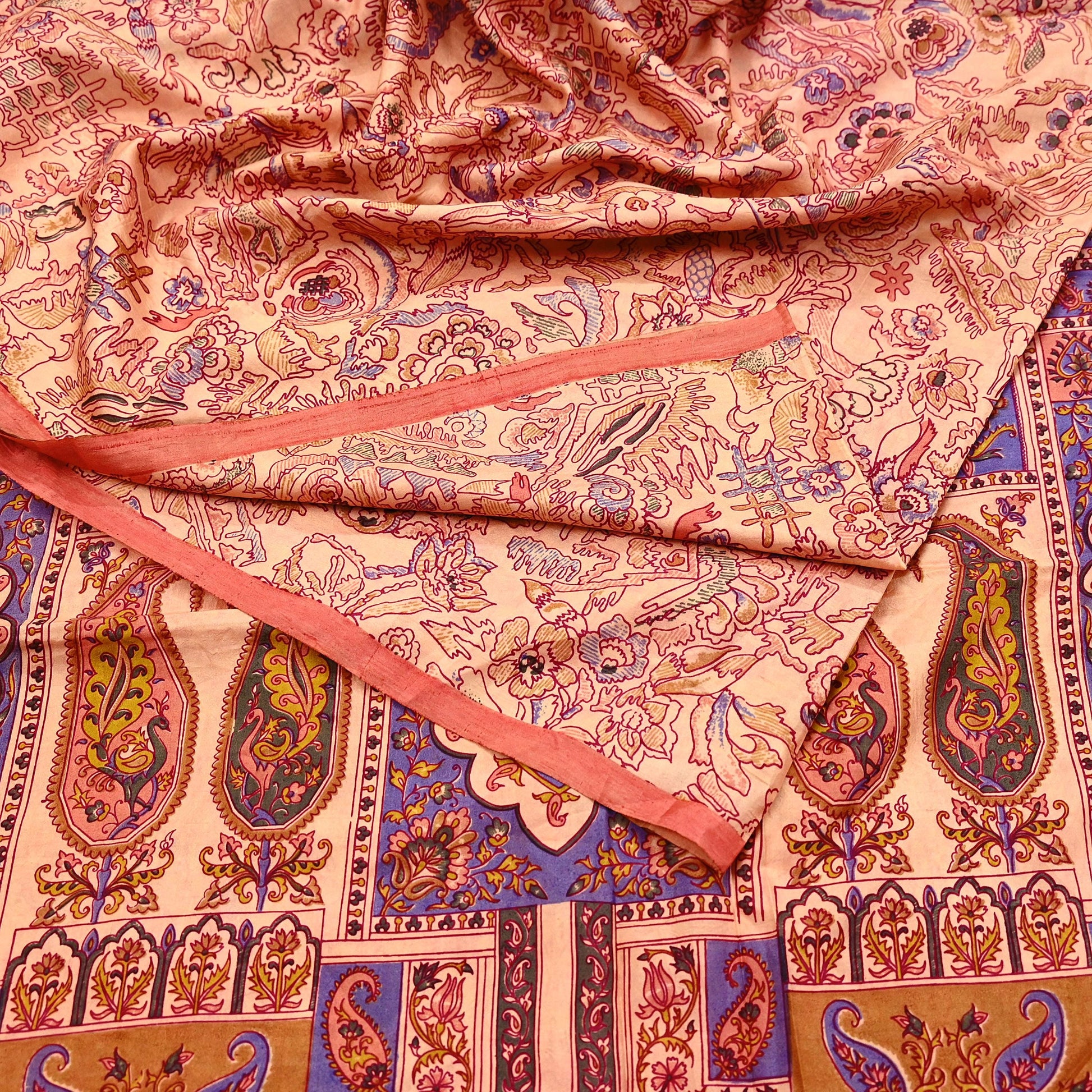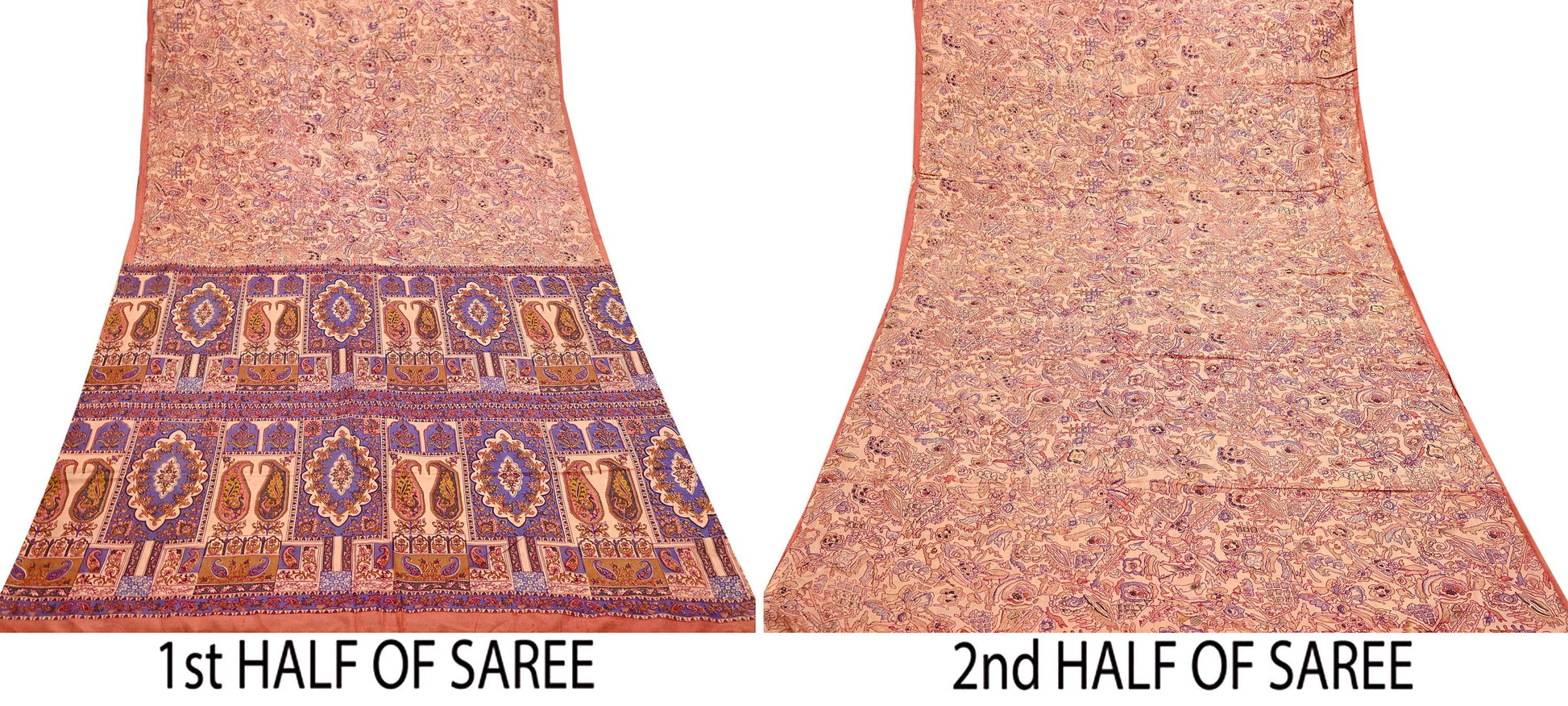 Indian Vintage Peach Pure Silk Printed Saree | 5 Yards | Soft Floral Fabric for Dressmaking, Quilting, Crafting, Sewing & Upcycling