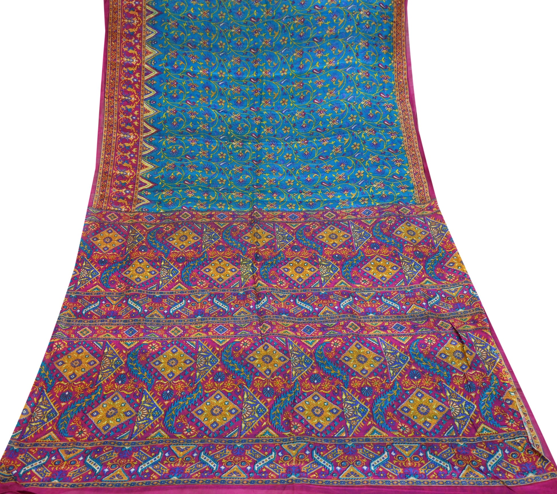 Bring vibrant charm to your designs with this Indian vintage sari in a gorgeous pink and blue color combination, made from 100% pure silk. Adorned with printed floral patterns, this lightweight and soft fabric is ideal for a wide variety of creative projects—from fashion to home decor and artistic upcycling.