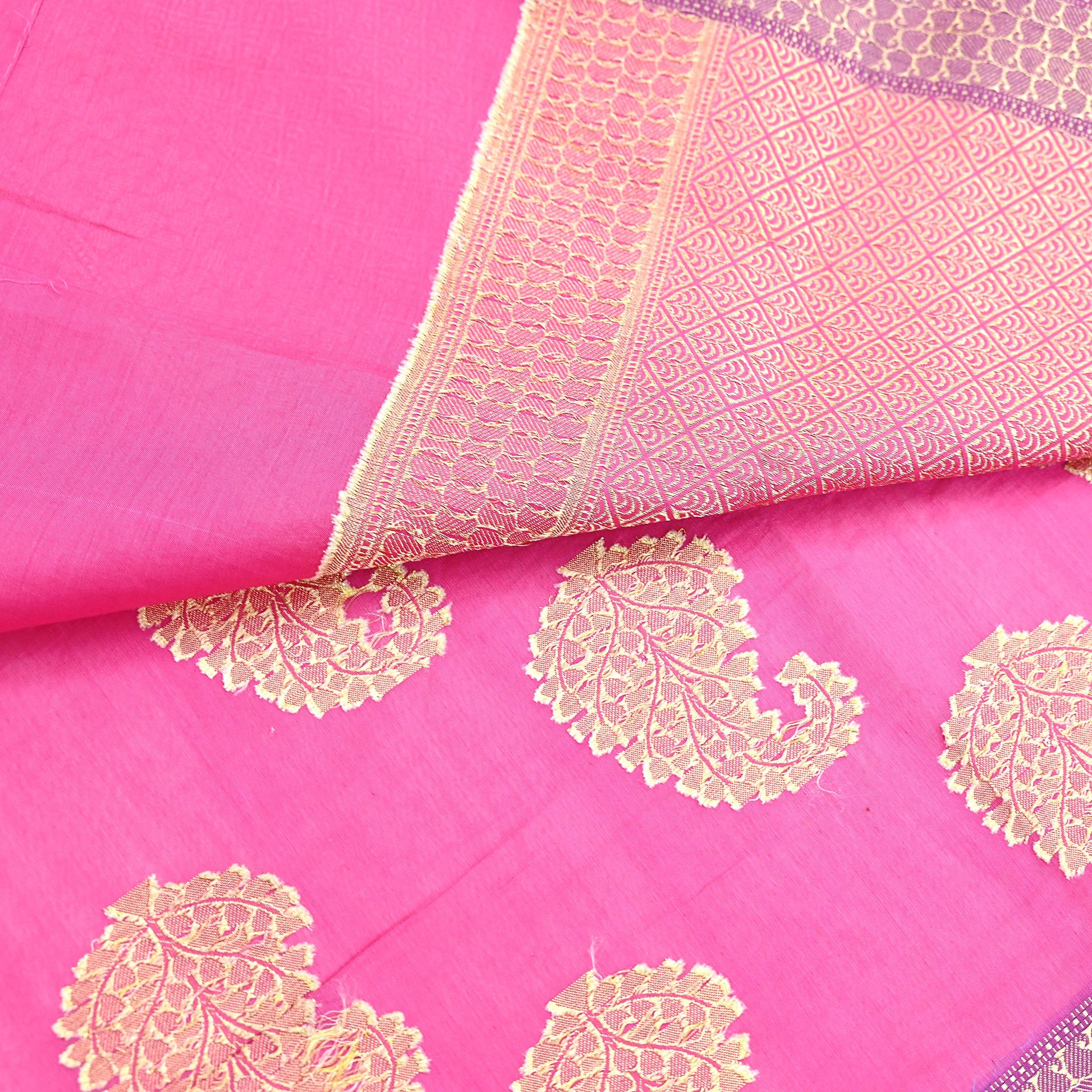 Step into timeless elegance with this Indian Vintage Pink Cotton Saree, a stunning handwoven masterpiece crafted with delicate golden floral and paisley motifs. Made from soft cotton, this saree beautifully combines comfort with traditional artistry.