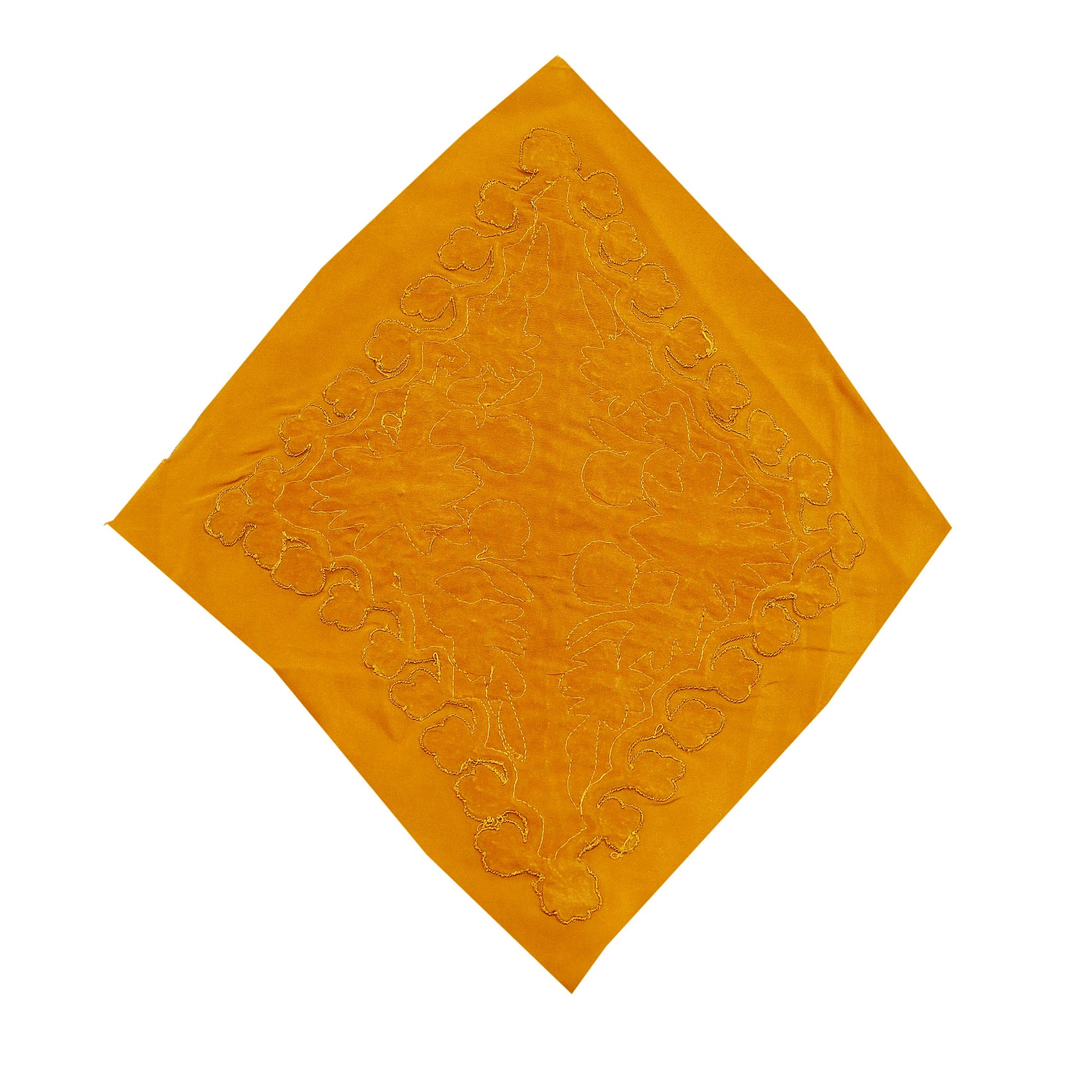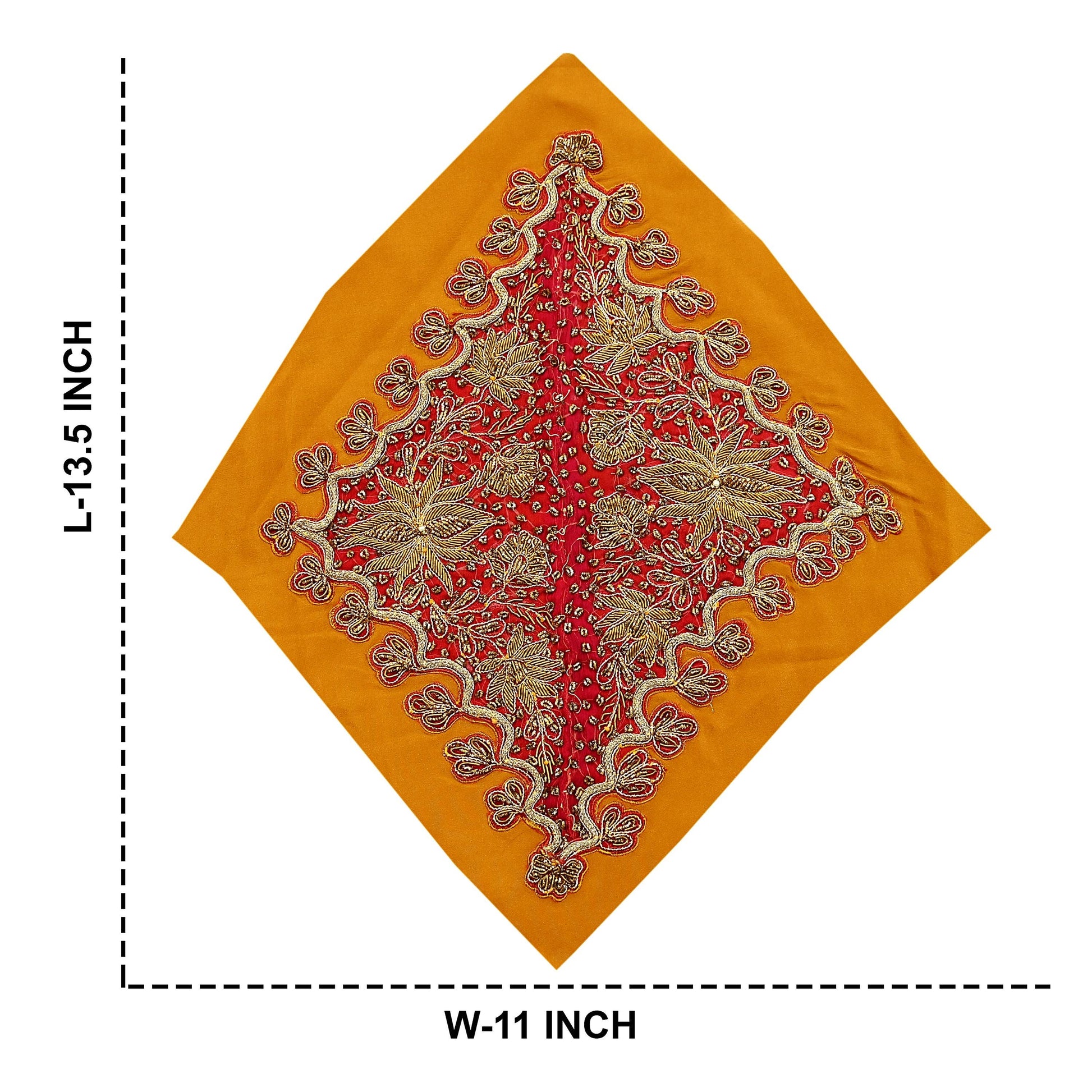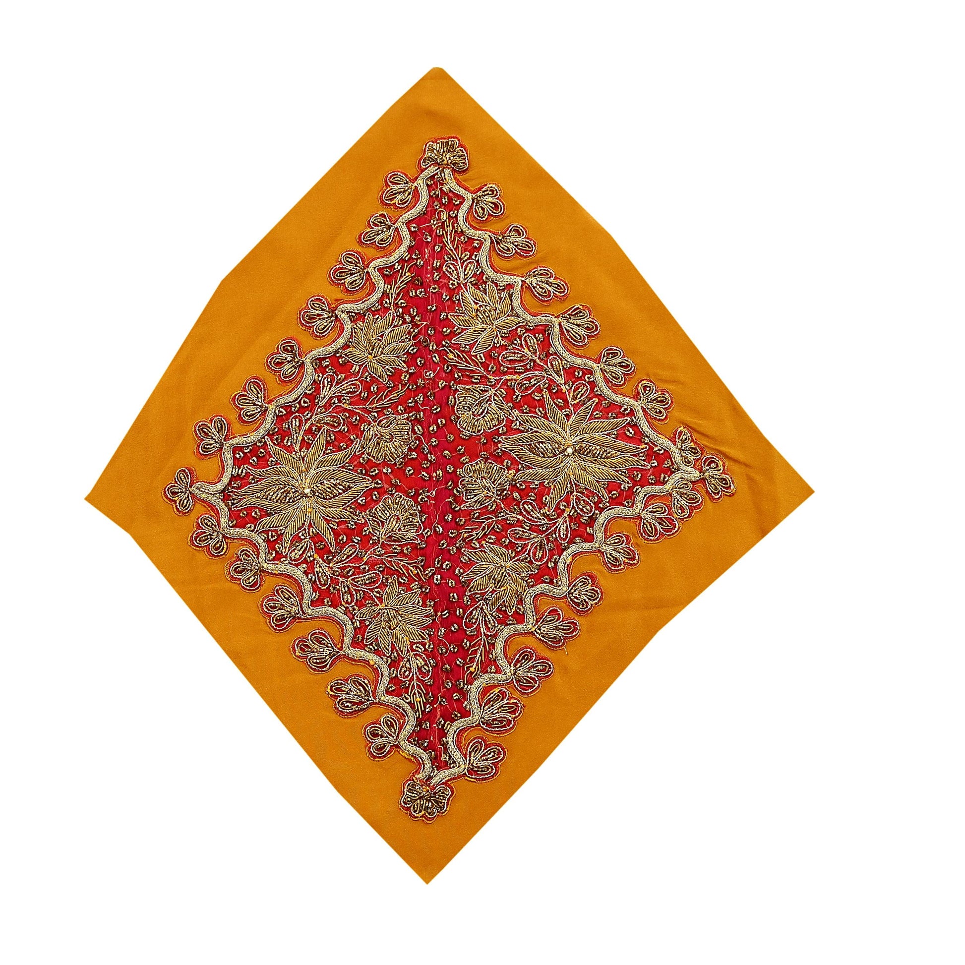 Enhance your craft with this stunning set of 1 hand-embroidered vintage appliques, cut from an elegant pure Crepe silk sari on Chiffon Fabric Patch in soft Saffron & Pink. These graceful pieces feature floral motifs embellished with golden zardozi/dabka, and zari, embroidery, showcasing exquisite traditional Indian craftsmanship.