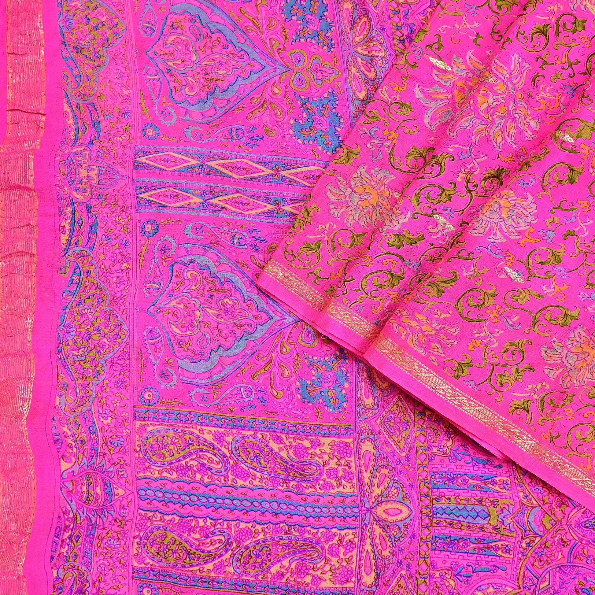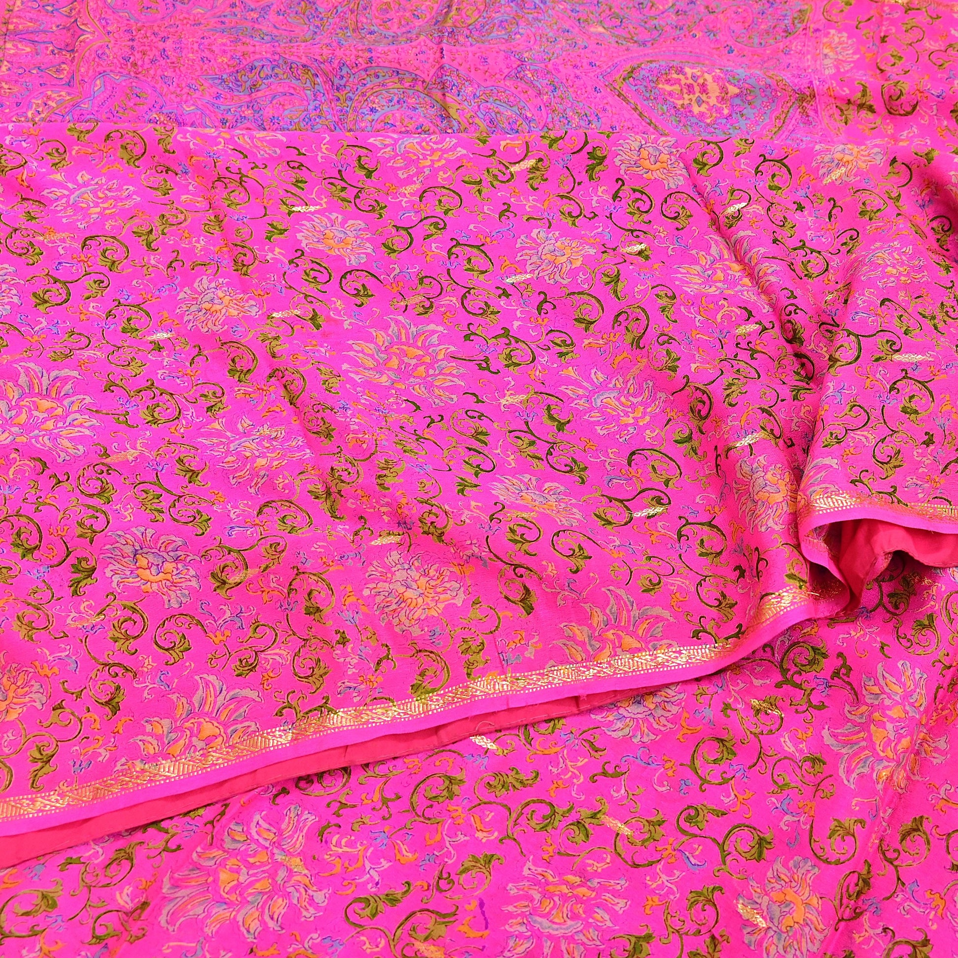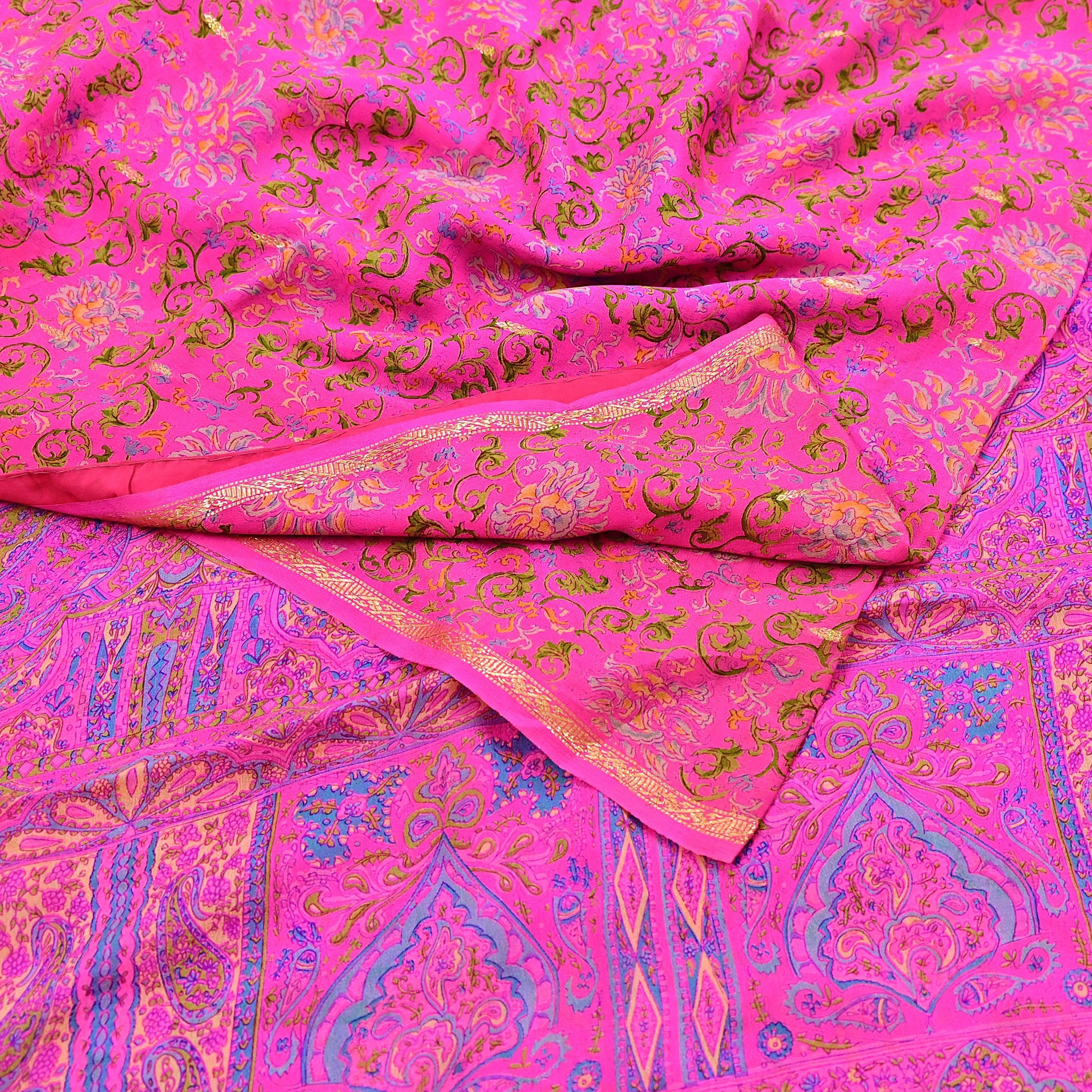 Indian Vintage Pink Saree 100% Pure Silk Printed Sari 5yard Sewing Craft Fabric DressMaking Soft Golden Zari