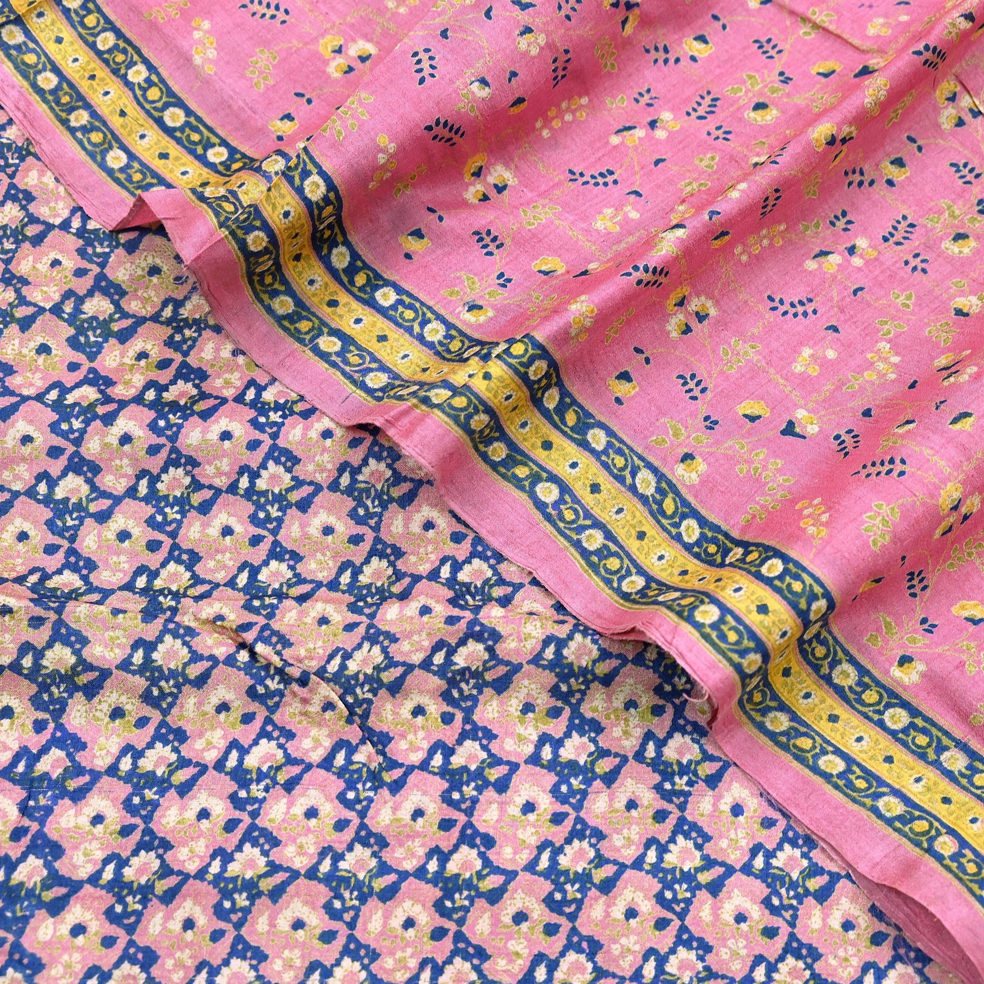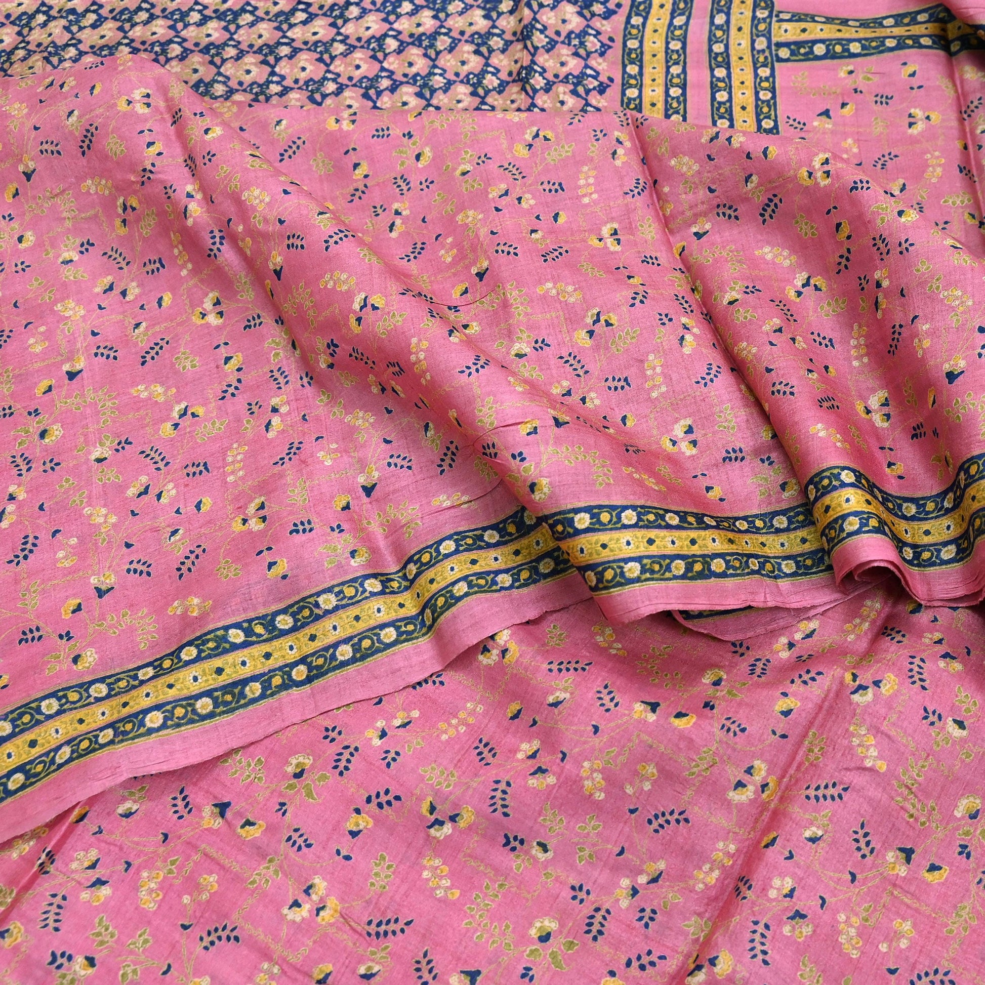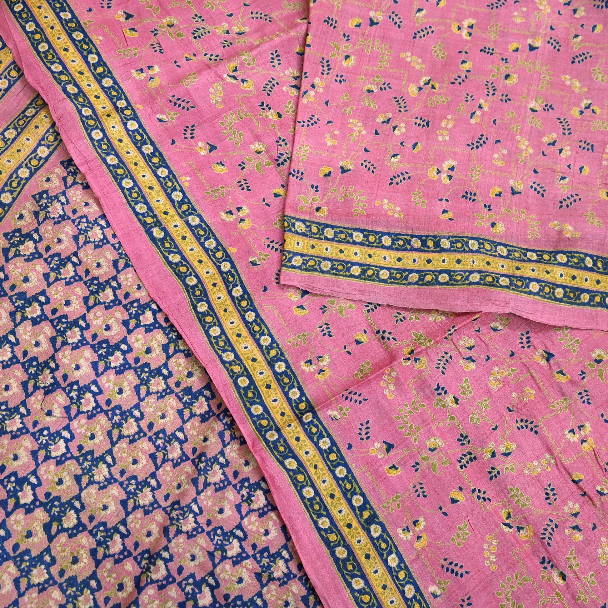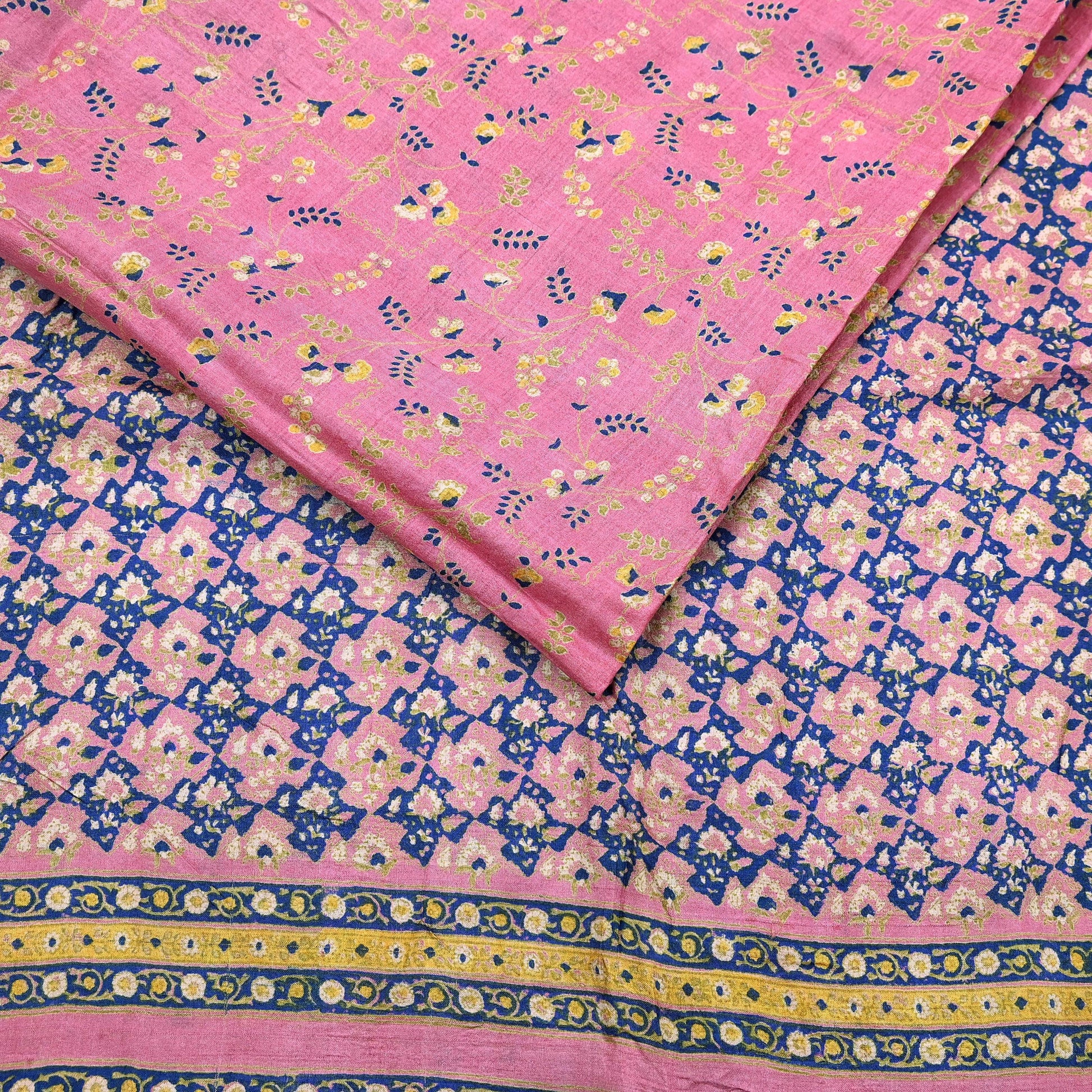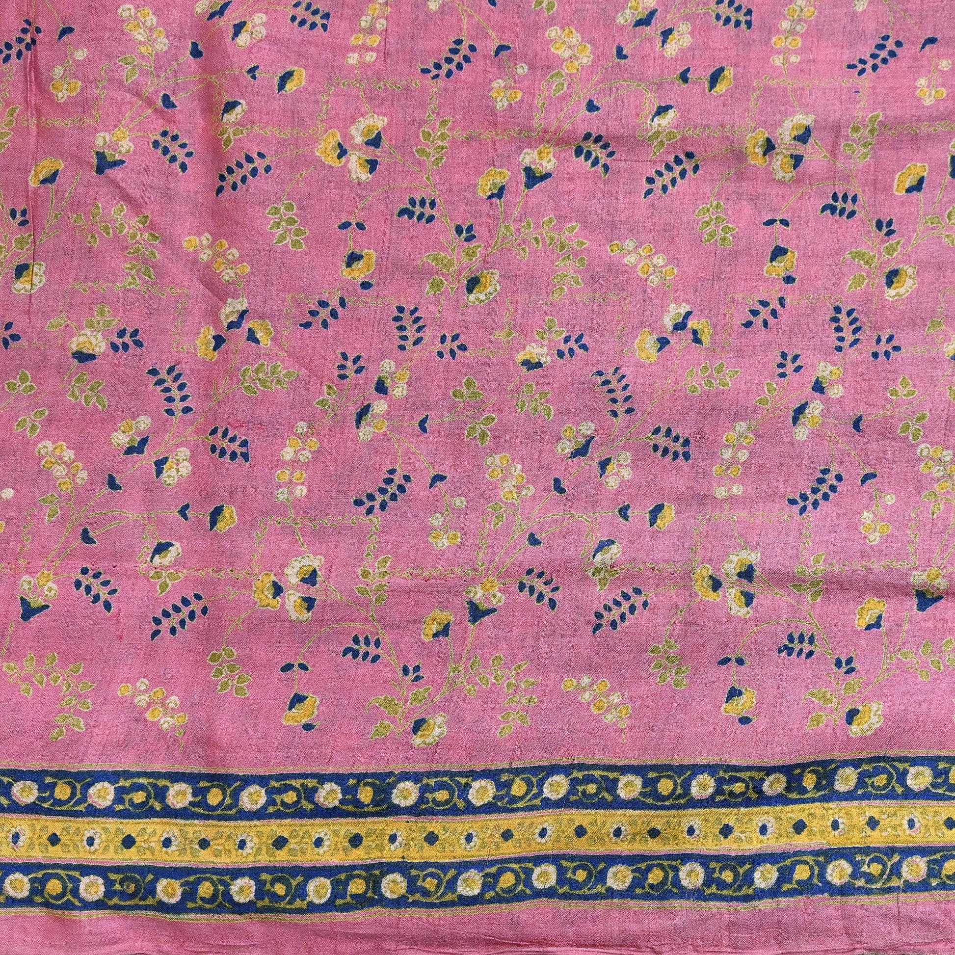 Indian Vintage Pink Saree Pure Khadi Silk Handloom Printed Sari Fabric 5yard Ethnic Wear Sari Floral