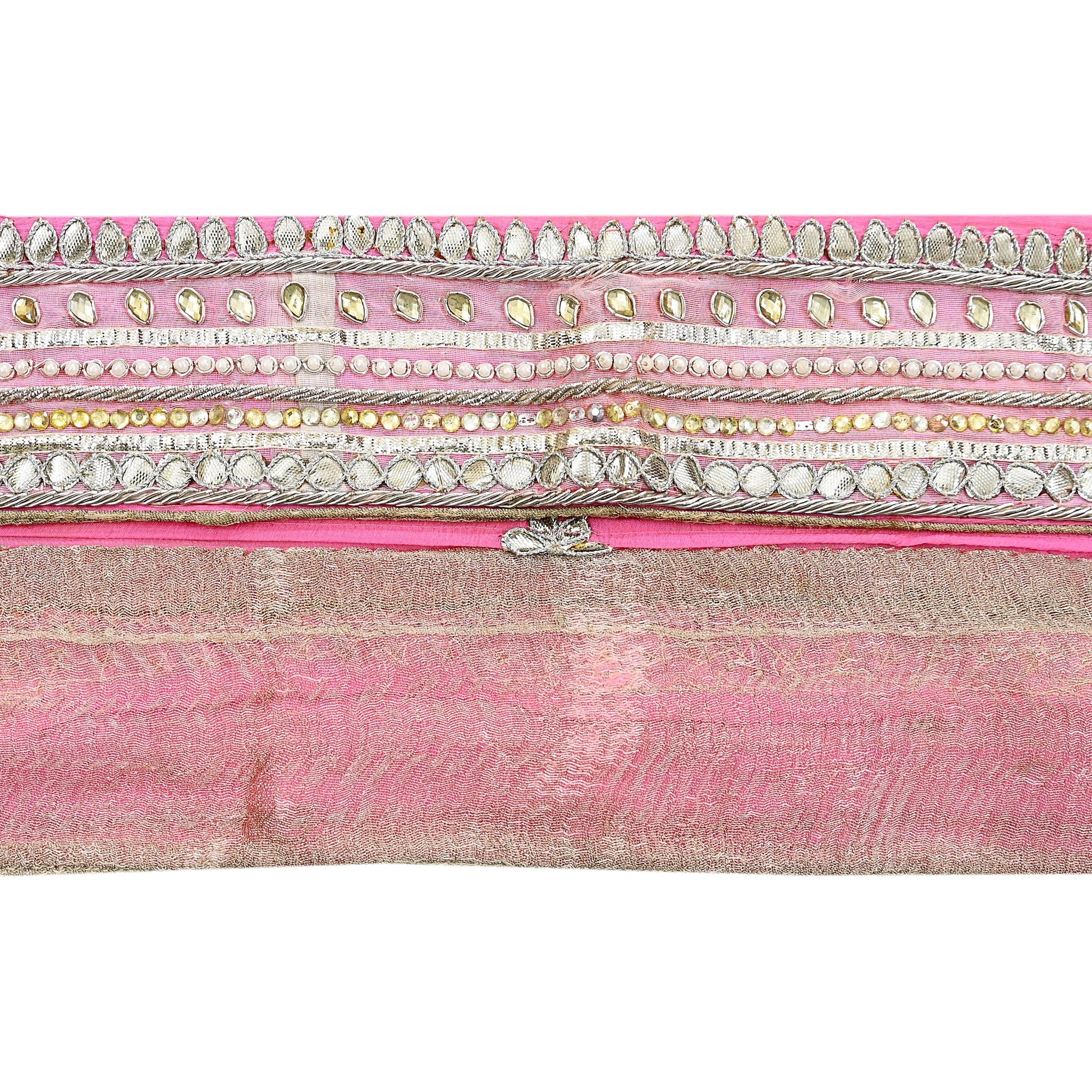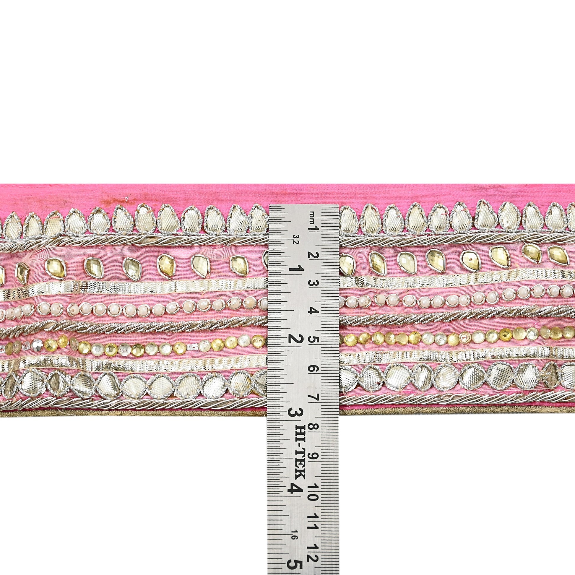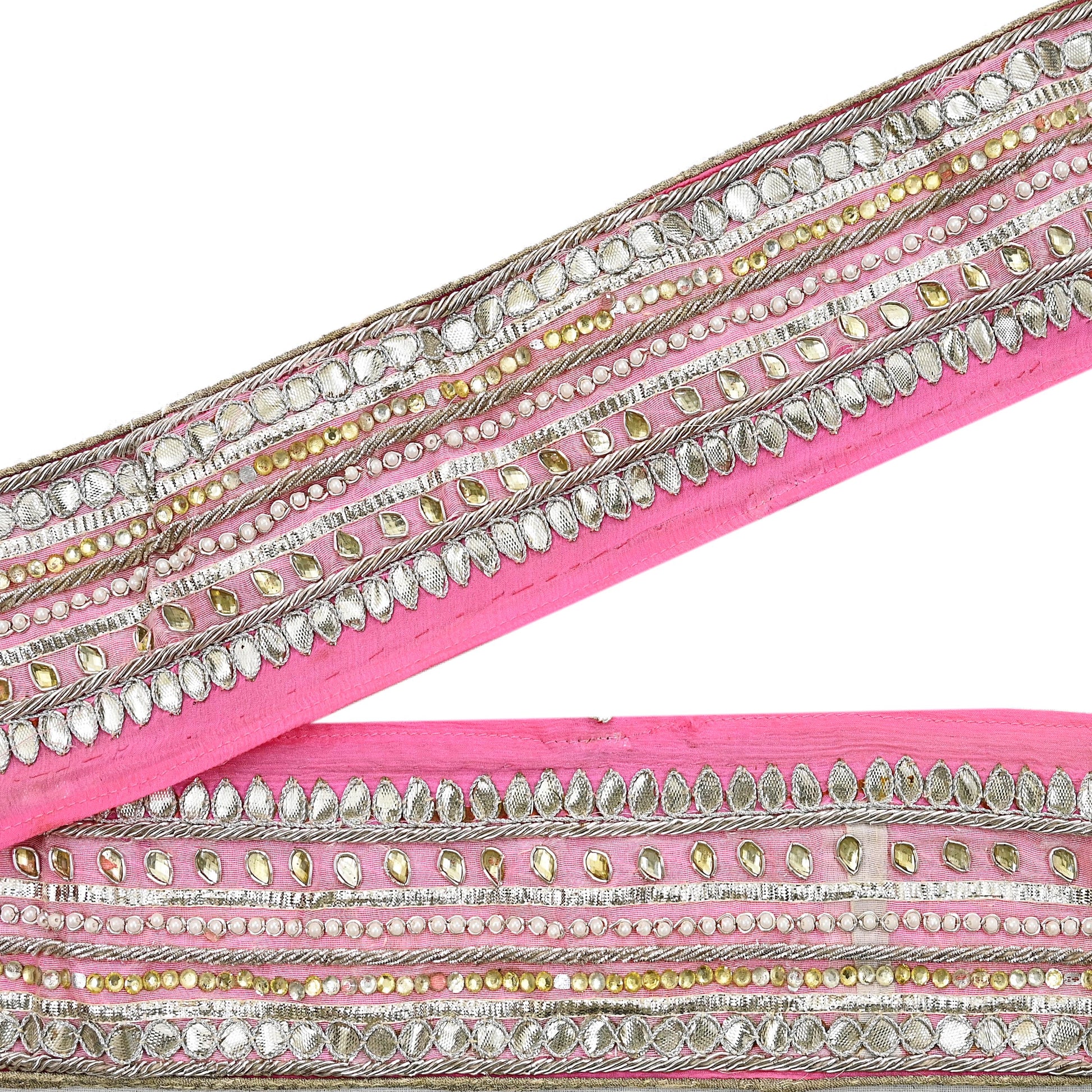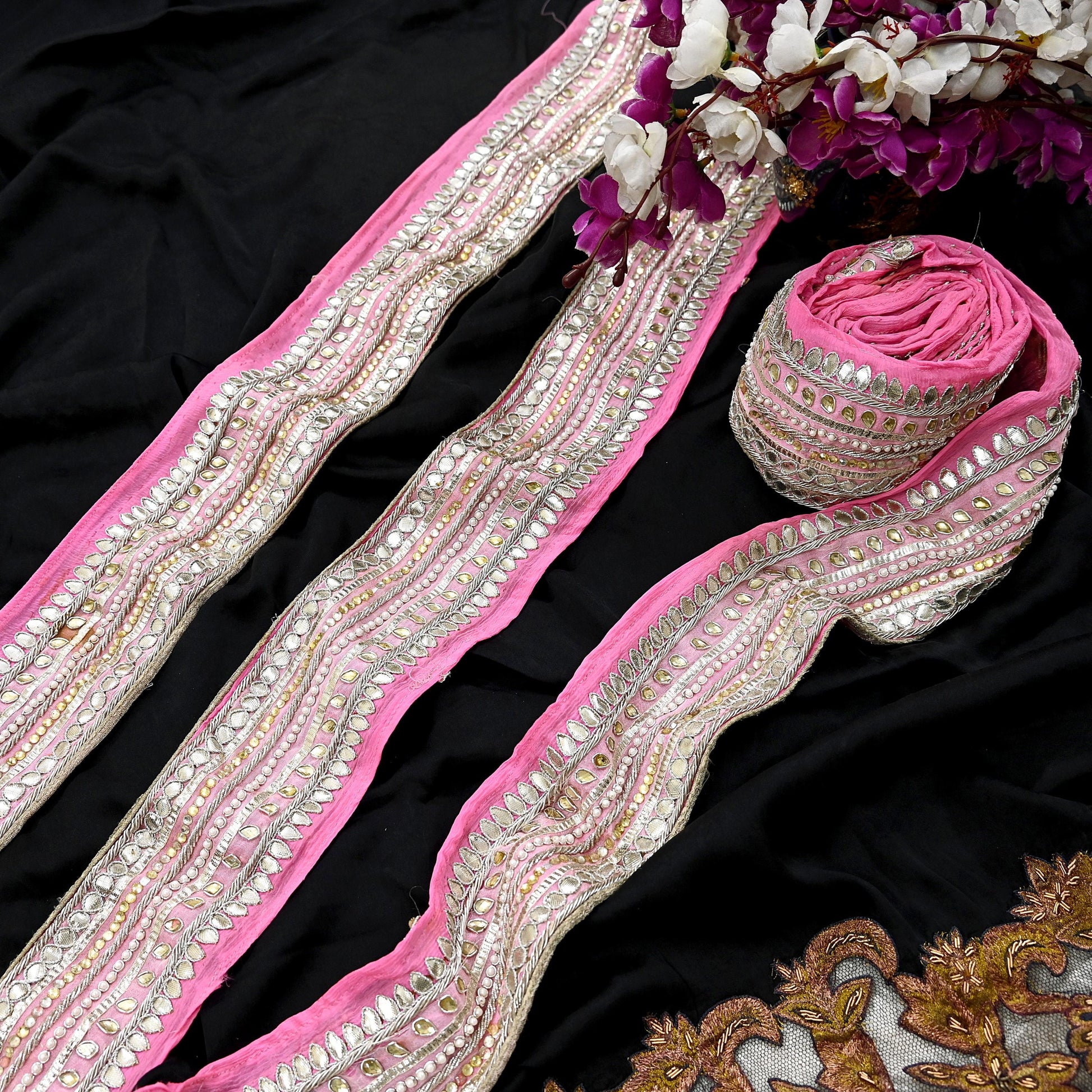 Indian Vintage Pink Sari Border Hand Embroidered Gota Patti Craft Trim Lace Sewing Sari Ribbon Pure silk Zardozi/Dabka Zari