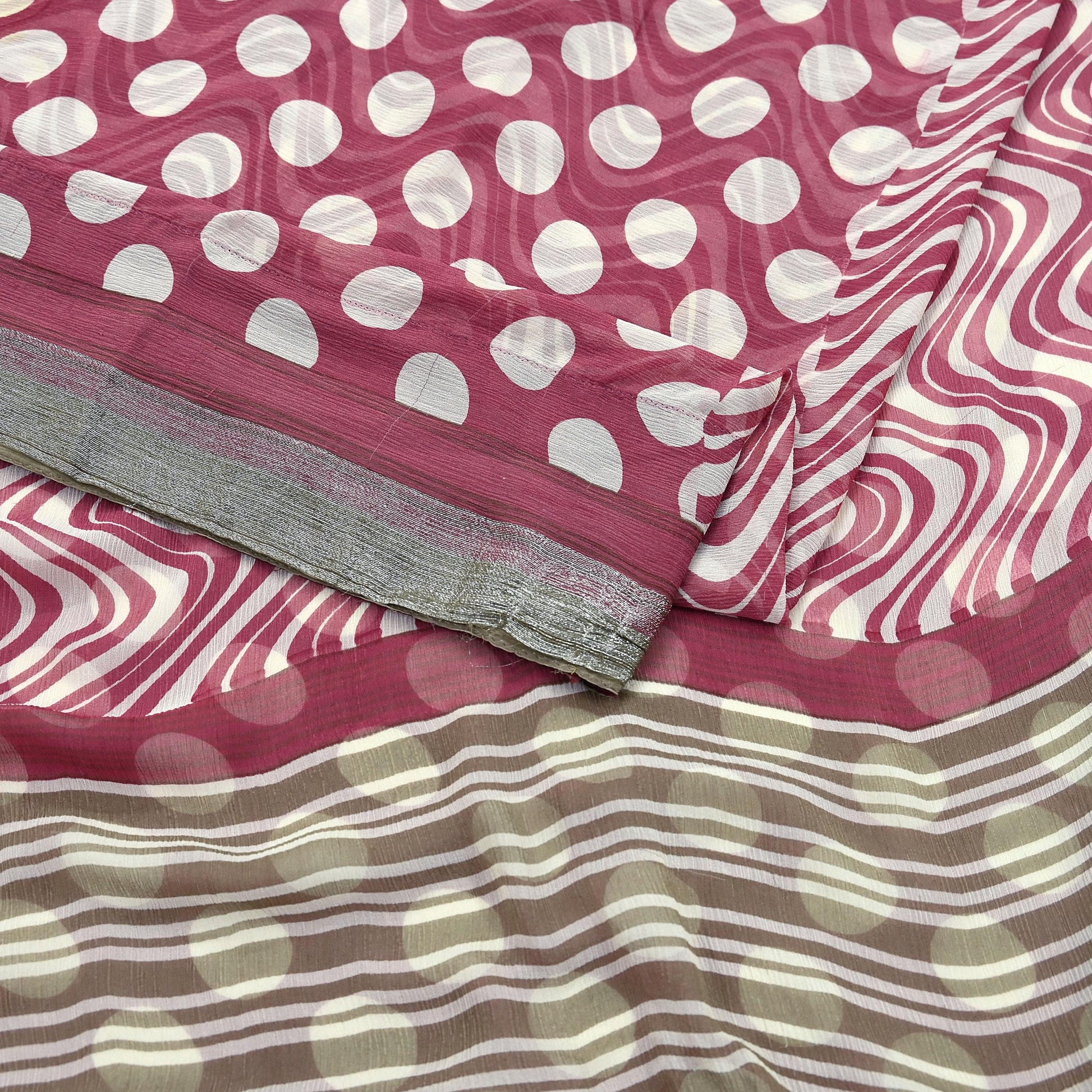 Indian Vintage Pure Chiffon Silk Saree | Printed Abstract Design | 5 Yards | Sheer Soft Fabric for Sewing, Dressmaking, Craft Projects