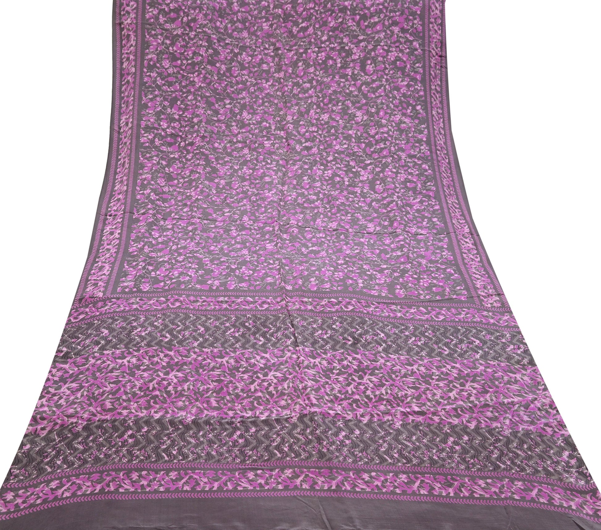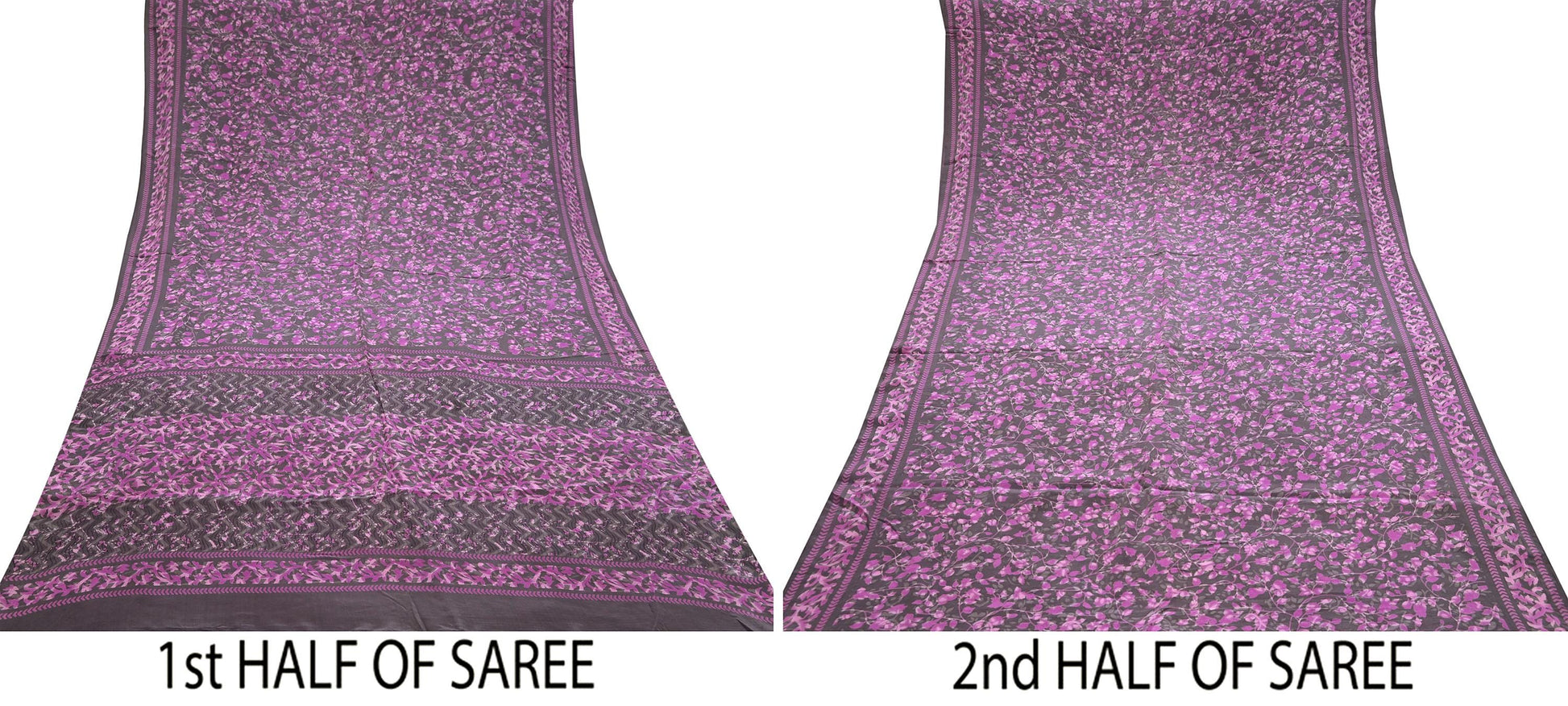 Indian Vintage Pure Crepe Silk Printed Saree | 6 Yards | Floral Craft Fabric | Soft Drape for Sewing, Dressmaking, Quilting &Upcycling