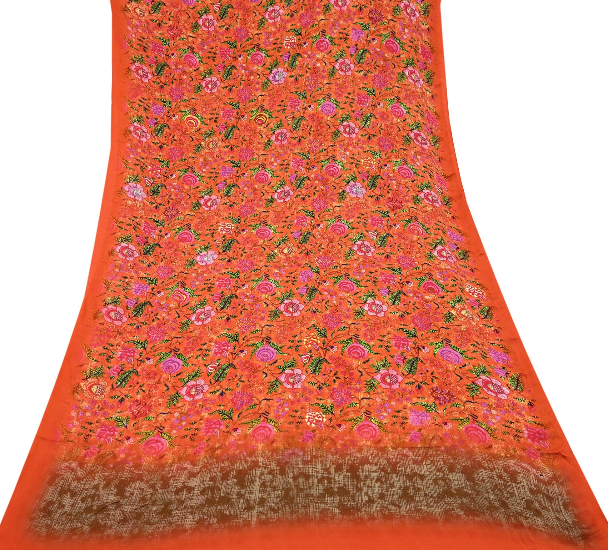 Indian Vintage Pure Silk Saree | Digital Printed Floral & Paisley Design | 5 Yards | Soft Craft Fabric for Dressmaking, Quilting, Upcycling