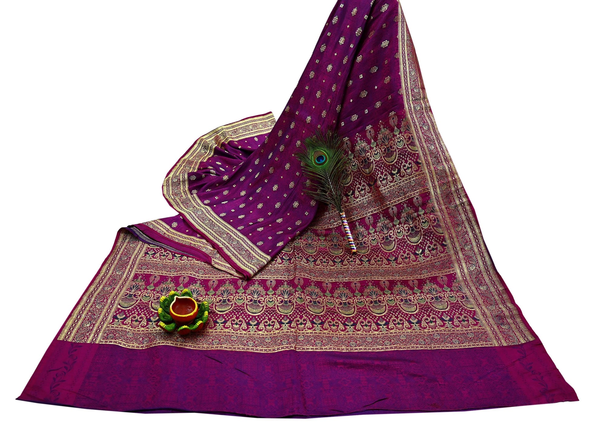 Rich hand-woven Banarasi brocade in authentic pure satin silk