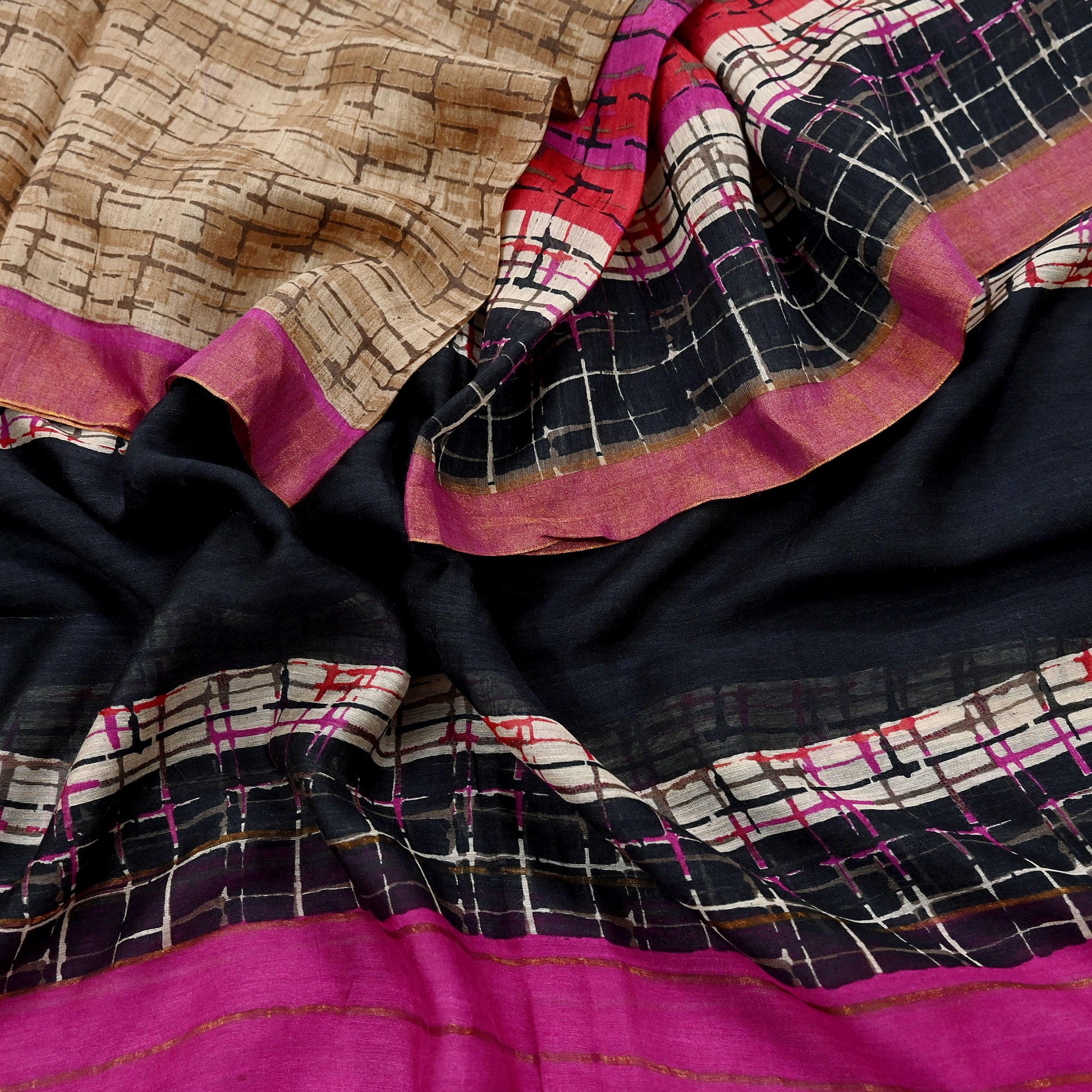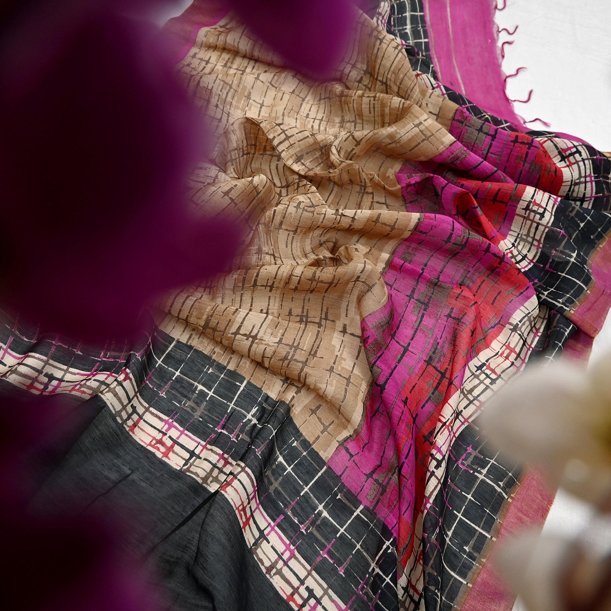 Artistry: Hand-Printed Stripes design in Purple, Black & beige tones