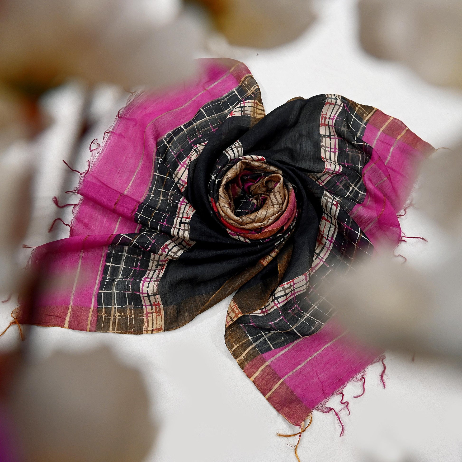 Elegant Purple, Black & beige Hand-Printed Pure Khadi Silk Dupatta | Stripes Design | Handloom Woven | Lightweight & Soft