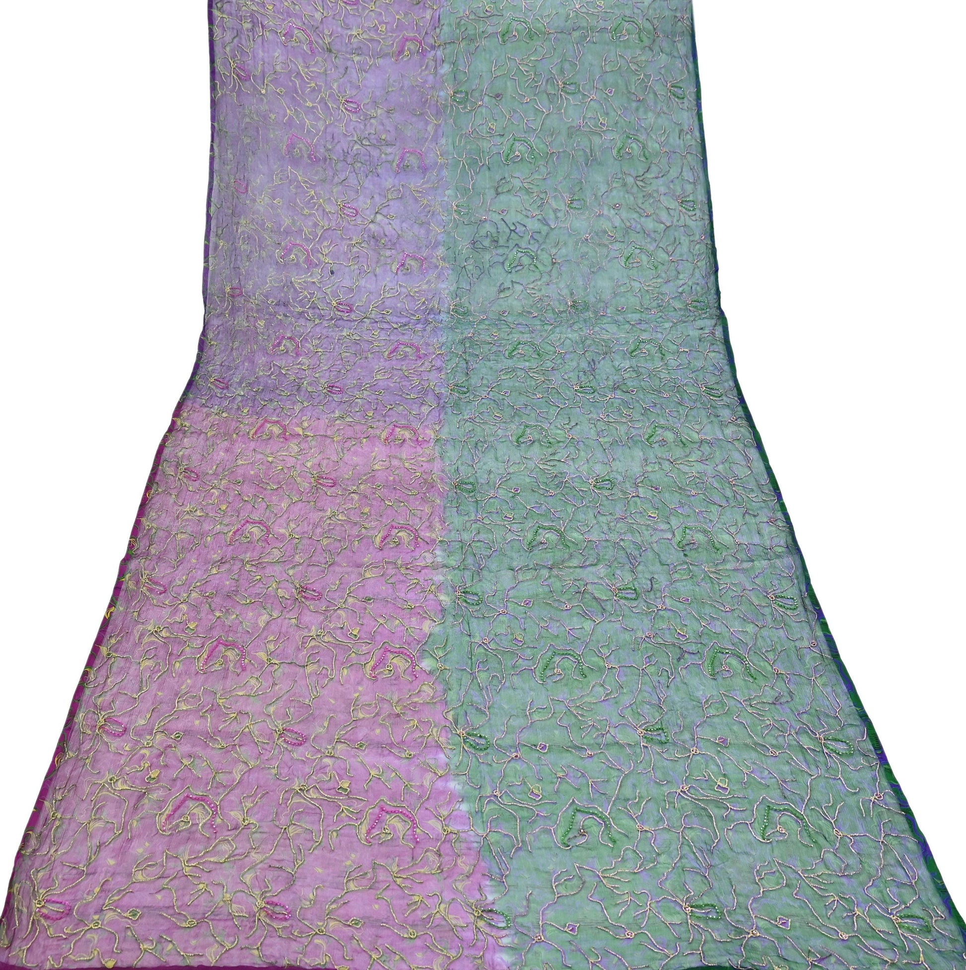 Add timeless elegance to your ethnic wardrobe with this one-of-a-kind vintage Purple & Green dupatta, beautifully hand-embroidered on pure chiffon silk. Lightweight, sheer, and luxuriously soft, it features intricate detailing that makes it perfect for special occasions or heirloom styling.