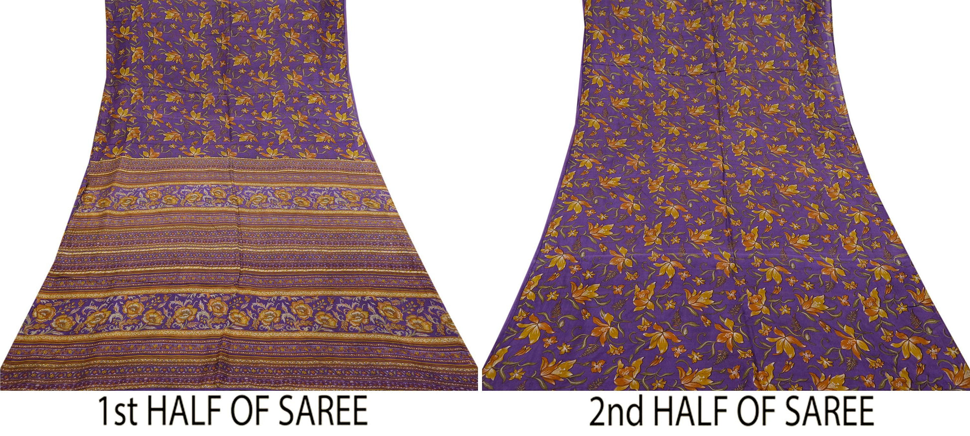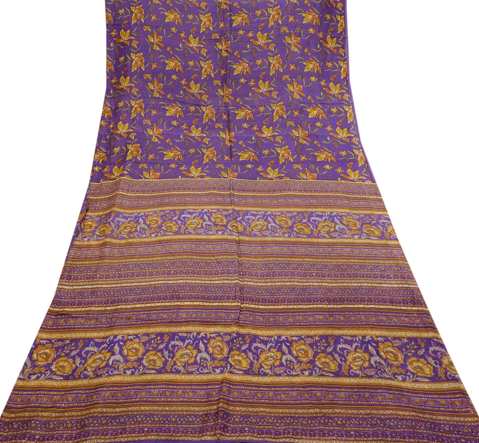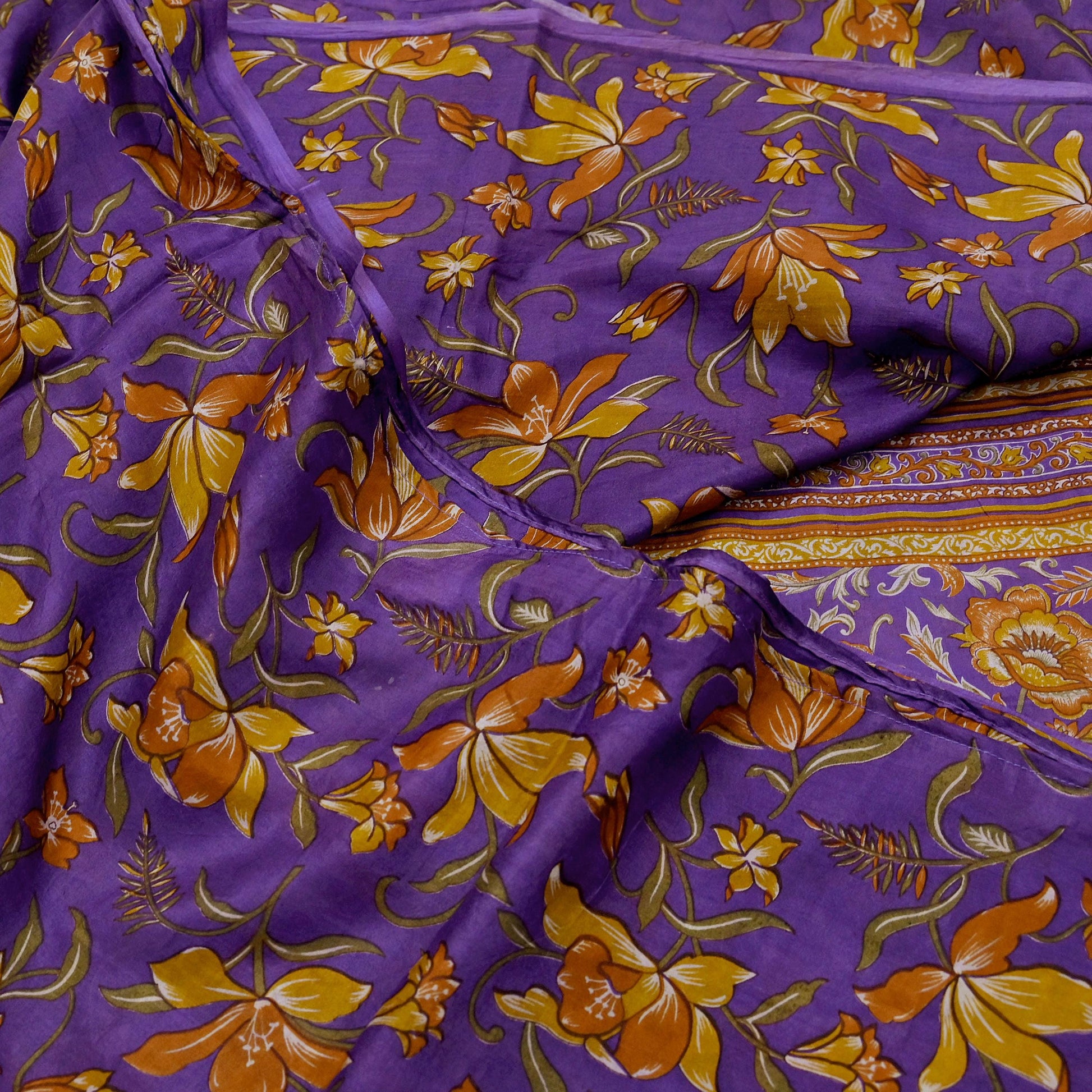 Indian Vintage Purple Pure Silk Printed Saree 5Yards Soft Floral Fabric for Dressmaking, Quilting, Crafting, Sewing & Upcycling
