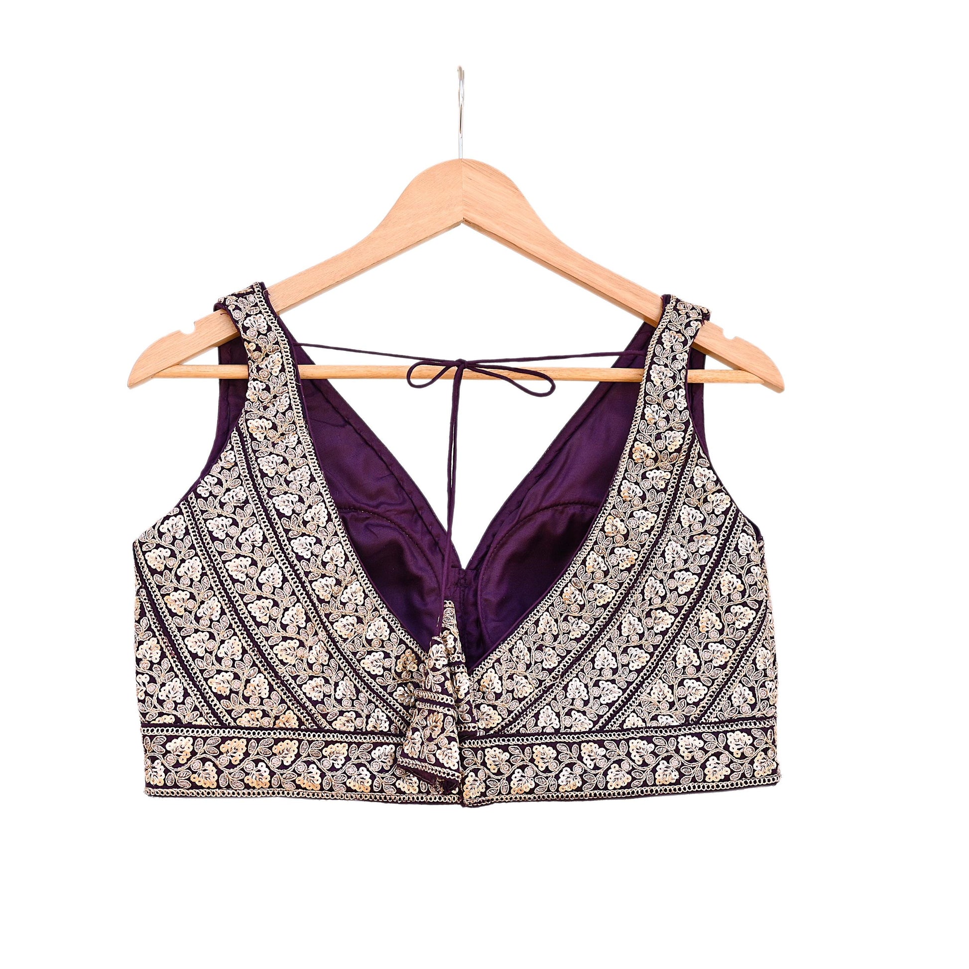 Indian Vintage Purple Raw silk Hand Embroidered sleeveless Padded Blouse/Top/Crop Party wear Bollywood