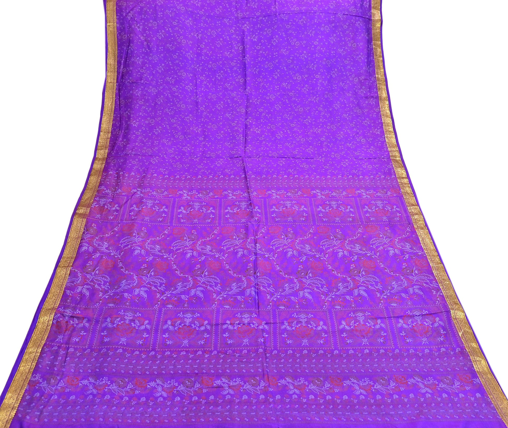 Indian Vintage Purple Saree 100% Pure Silk Printed Sari 6yard Sewing Craft Fabric DressMaking Soft Golden Zari