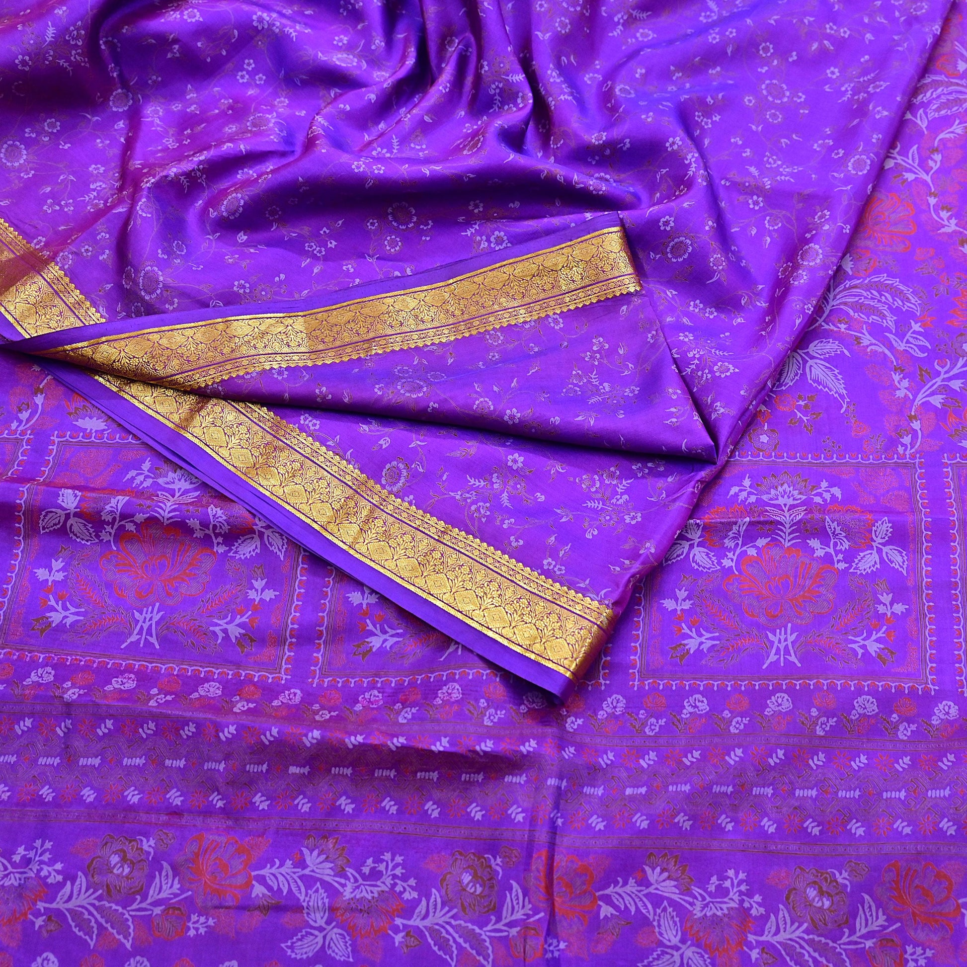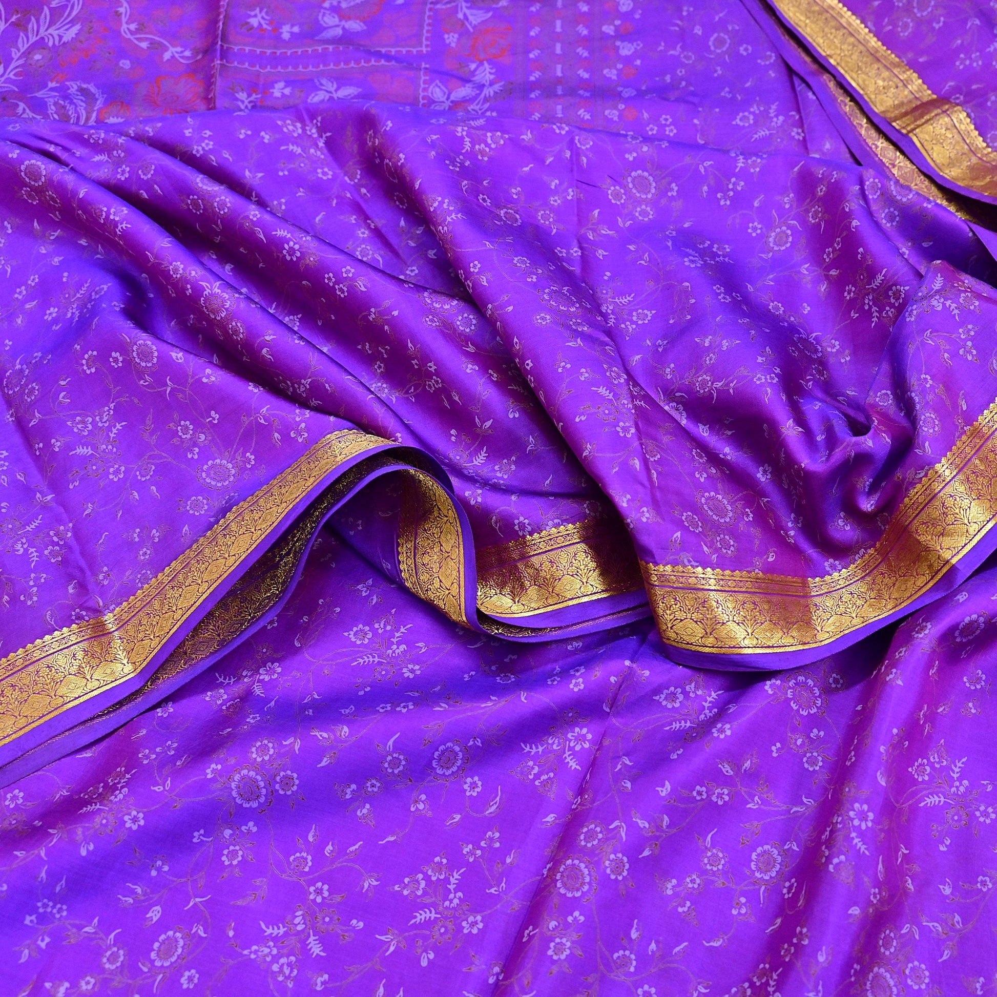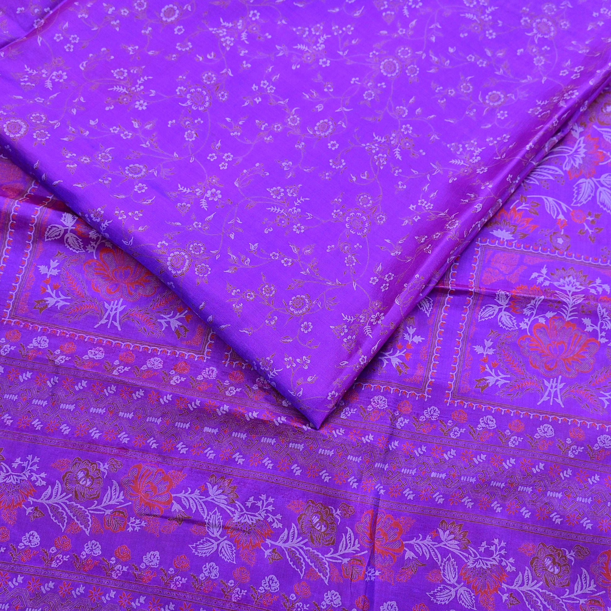 *Attractive Purple Colored Printed Pure Silk Saree .