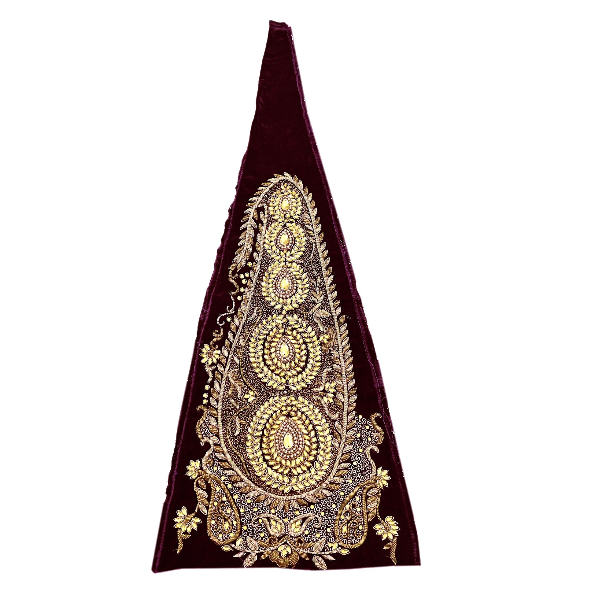 Enhance your craft with this stunning set of 1 hand-embroidered designer Manish malhotra appliques, cut from an elegant velvet lehenga in soft Purple. These graceful pieces feature floral motifs embellished with Golden Zardozi/Dabka Zari , yellow Stones, Beaded, Golden Sequins, white pearl like beaded embroidery, showcasing exquisite traditional Indian craftsmanship.
