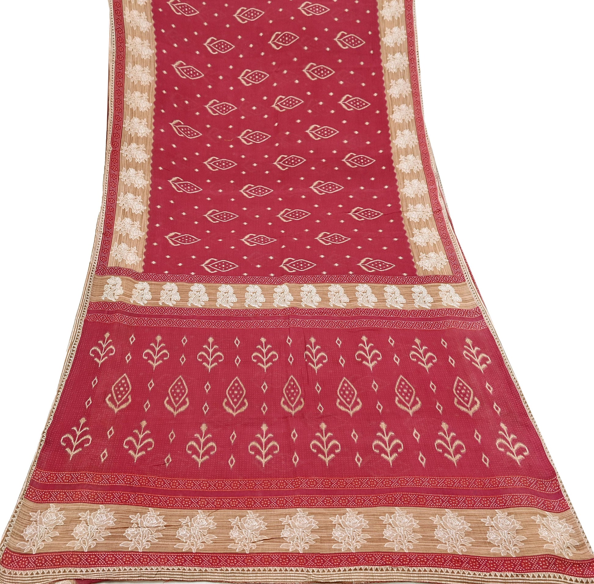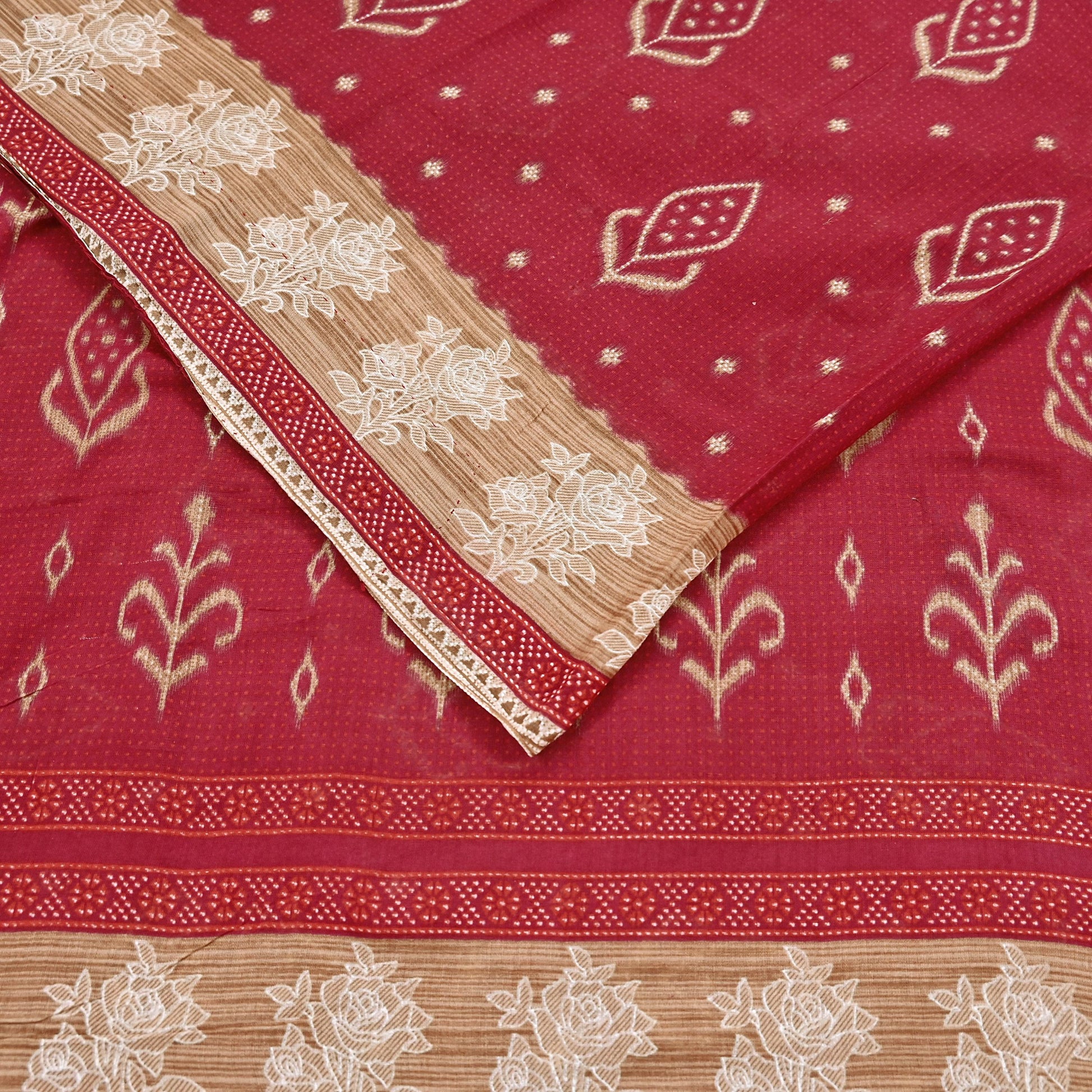 Indian Vintage Red & Beige Saree Printed 100% Pure Cotton Sari Craft Fabric 5Yd Soft Sewing Sarong Wrap Dress Making Quilting Crafting