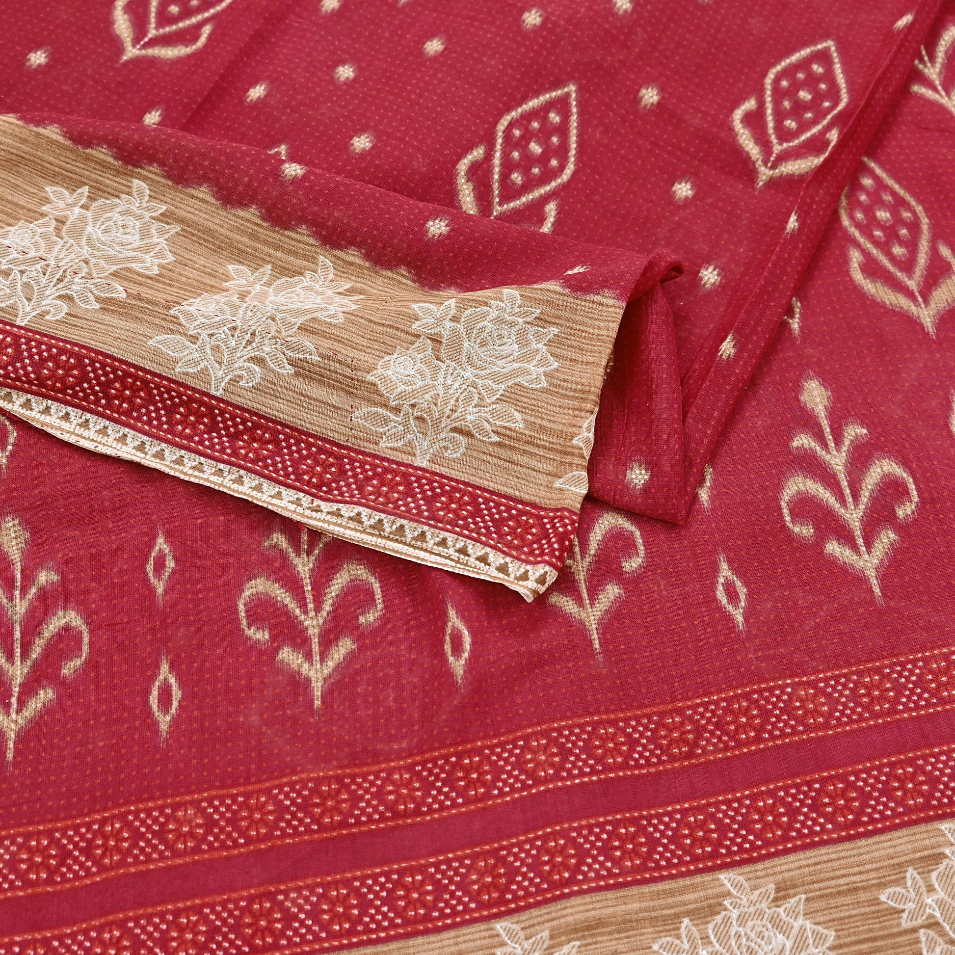 *Beautiful Red & Beige Colored Printed Pure Cotton Sarees.