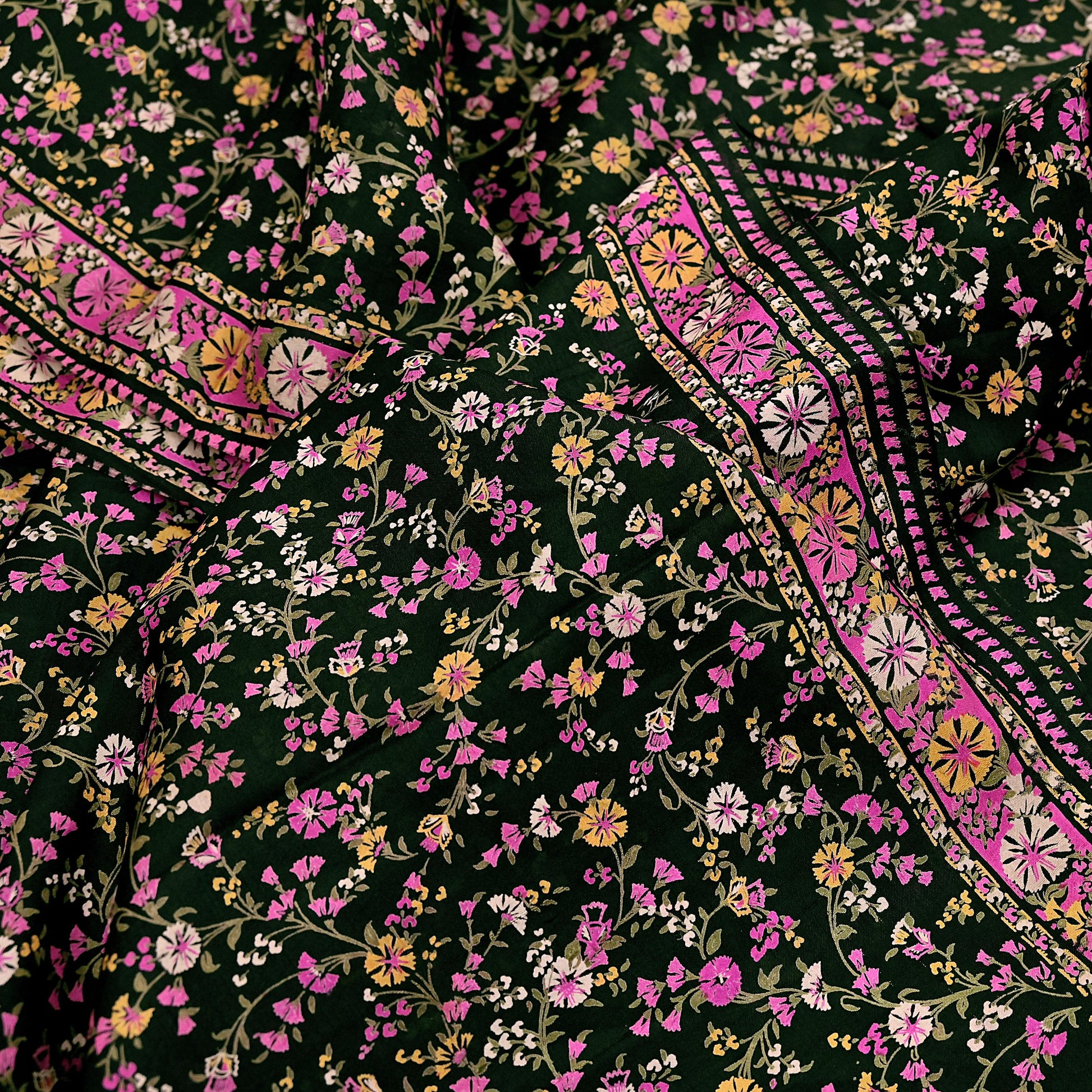 Pallu & Border: Embellished with intricate floral prints detailing