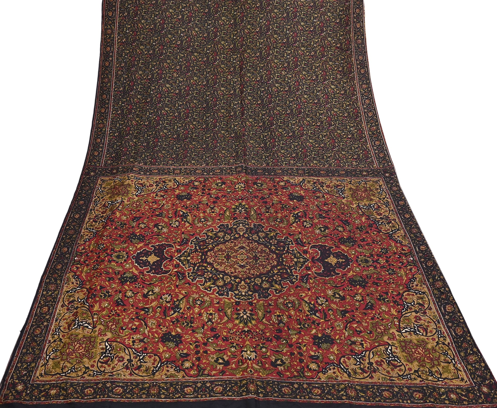 Indian Vintage Red & Black Pure Silk Printed Saree 6Yards Soft Floral Fabric for Dressmaking, Quilting, Crafting, Sewing, Dress Making