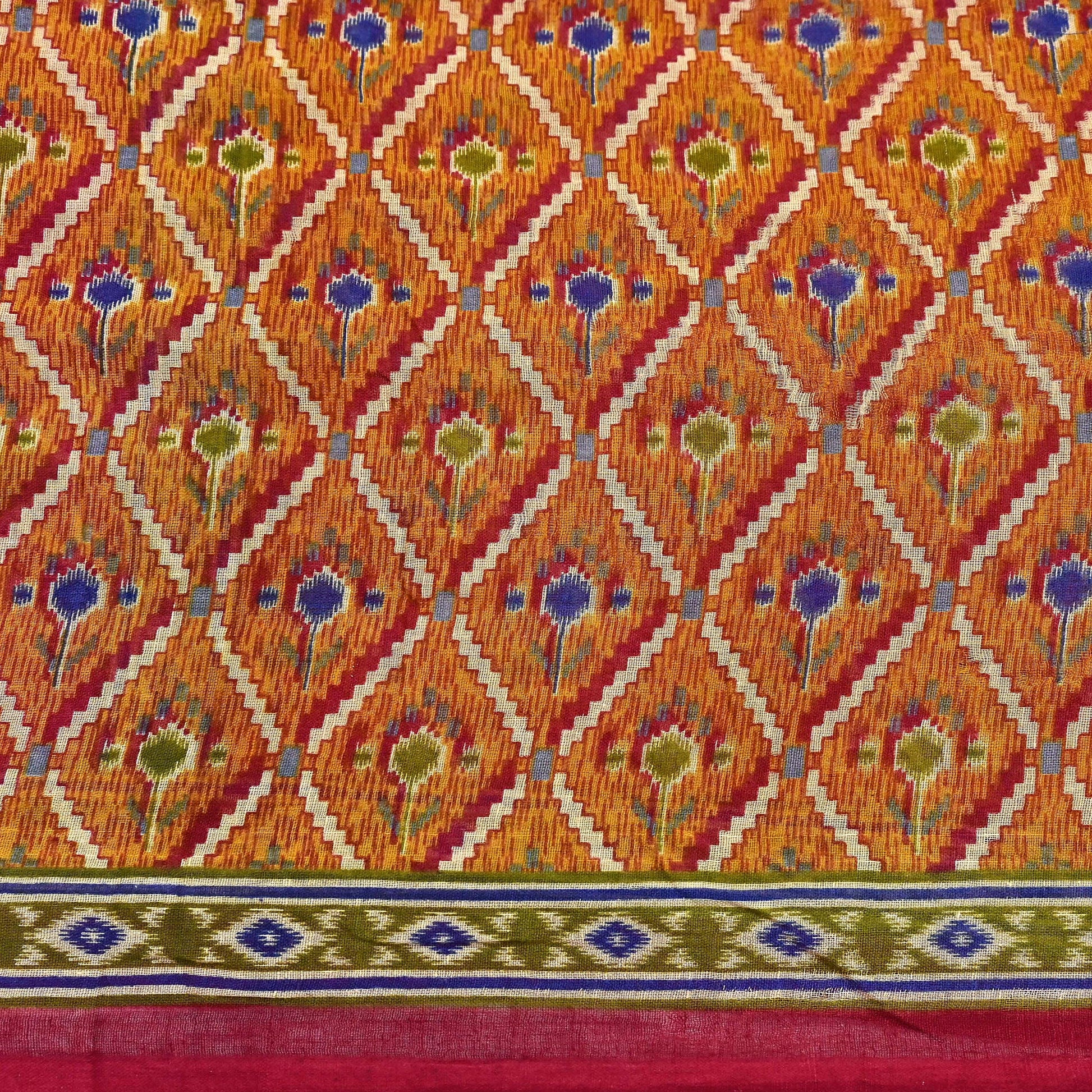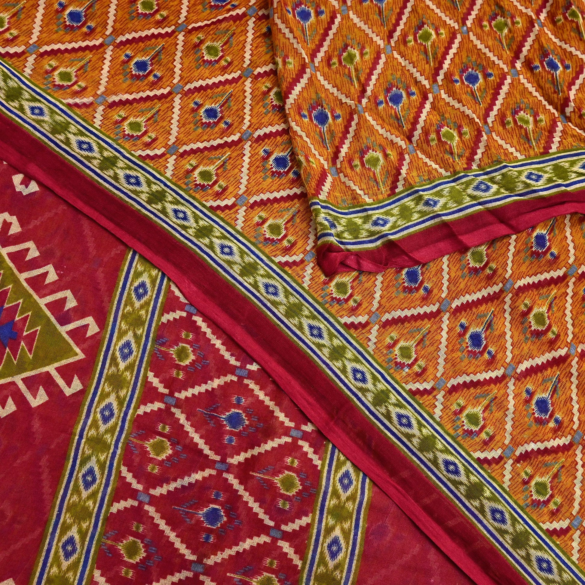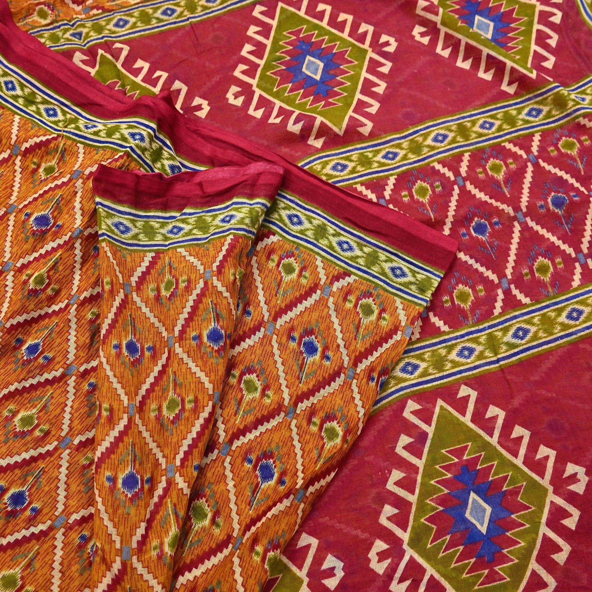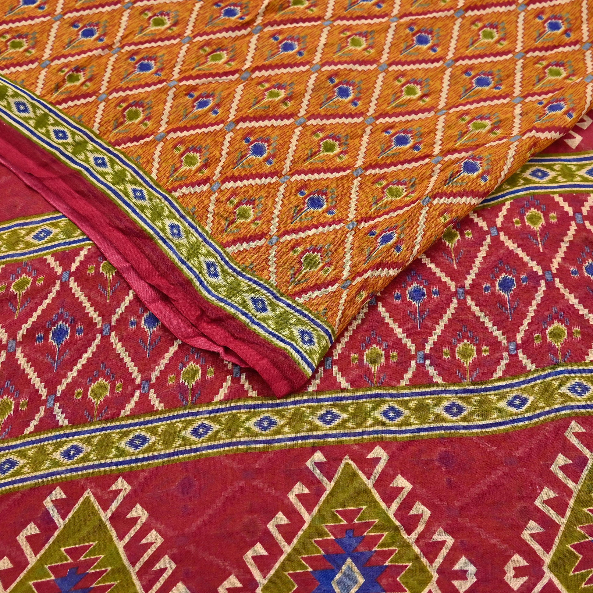 Indian Vintage Red & Mustard Saree Printed 100% Pure Cotton Sari Craft Fabric 5Yd Soft Sewing Sarong Wrap Dress Making Quilting Crafting