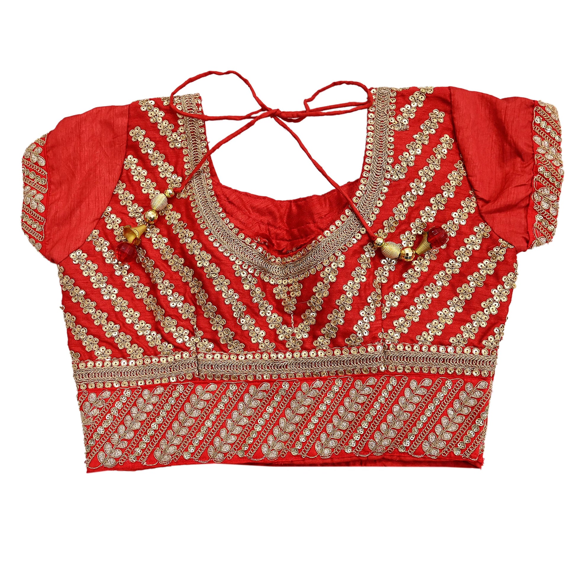 This one of a kind item is difficult to express in words. Border feature is floral design embroidered pure metallic Golden Dori, Golden Beaded And Red Thread work embellished work is the highlight of the dupatta. Also you can see similar Zari, Beaded work with floral pattern in center part adds to its beauty. Beautiful Red Border With Red Chanderi Border work is giving a fabulous look to the Lehenga Set. Awesome one !!!