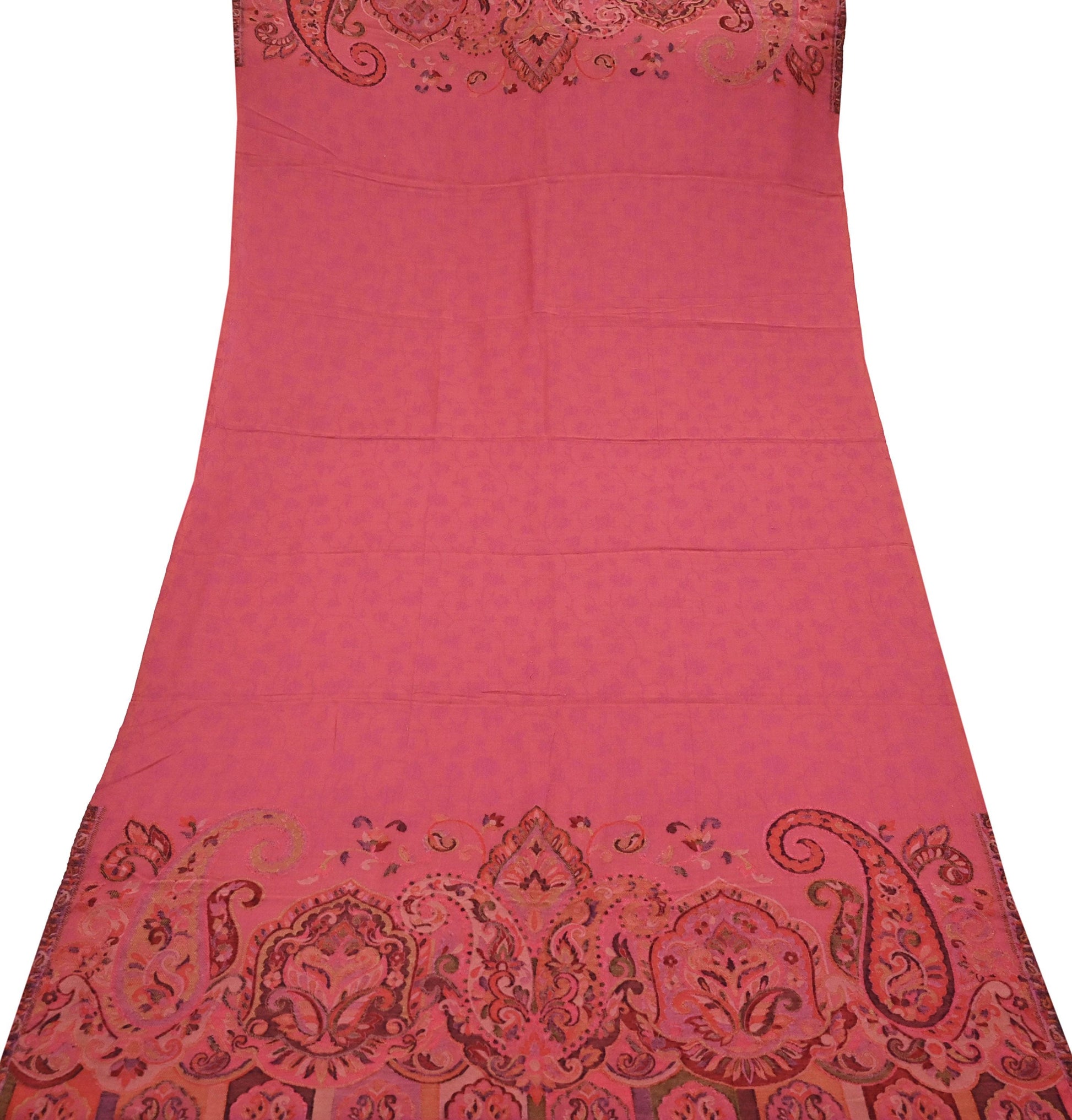 We are pleased to offer this vintage pink -colored stole/shawl, made from 100% pure wool and adorned with stunning handwoven multicolor Paisley patterns. The woven design gracefully decorates both the center and borders, adding artistic elegance to this timeless piece.