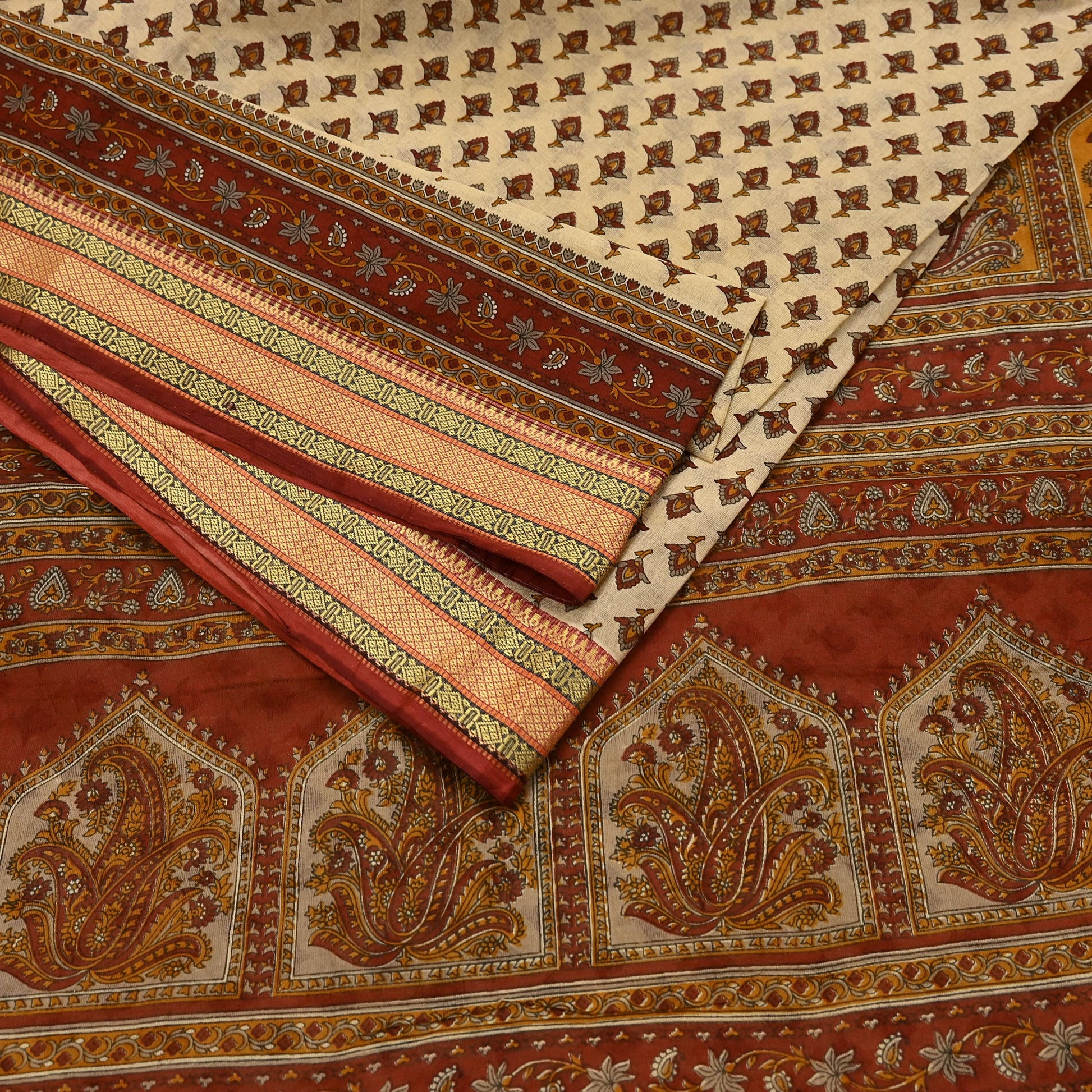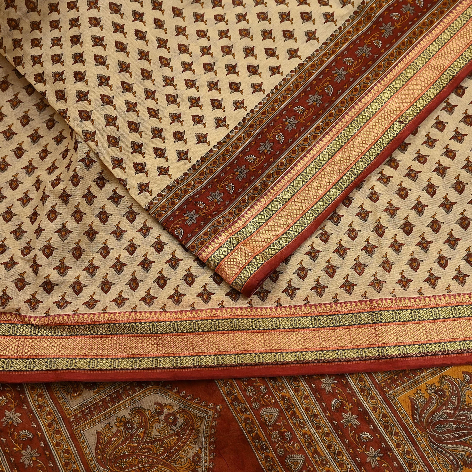 Indian Vintage Rusty & Beige Saree Printed 100% Pure Cotton Sari Craft Fabric 5Yd Sewing Sarong Wrap Dress Making Quilting Crafting
