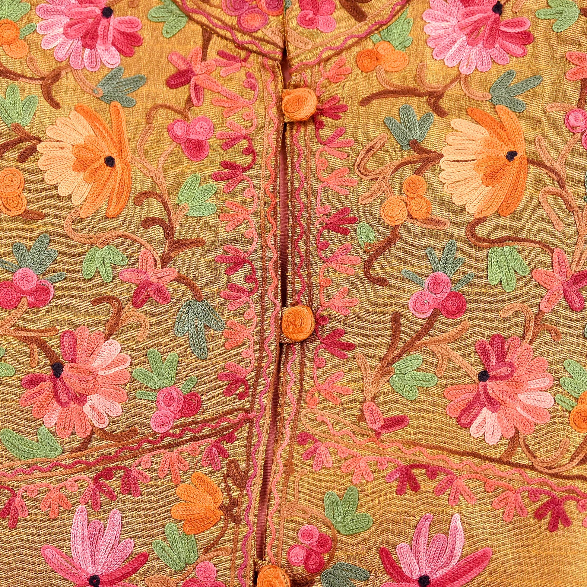 Stunning Embroidered Kashmiri Coat – Saffron Raw Silk Fabric