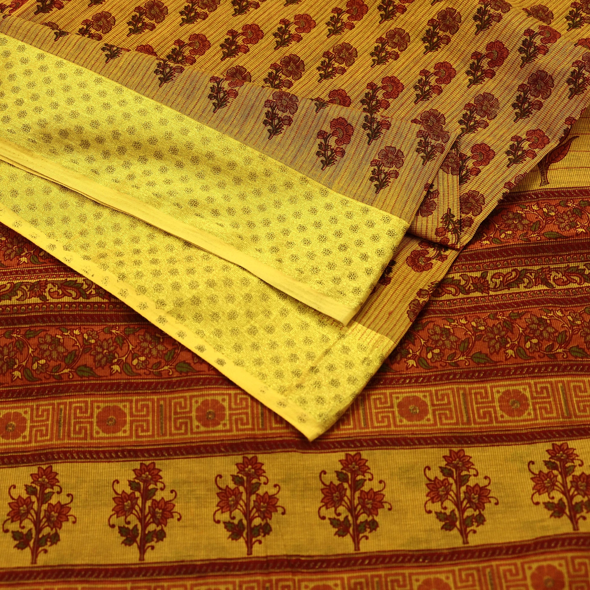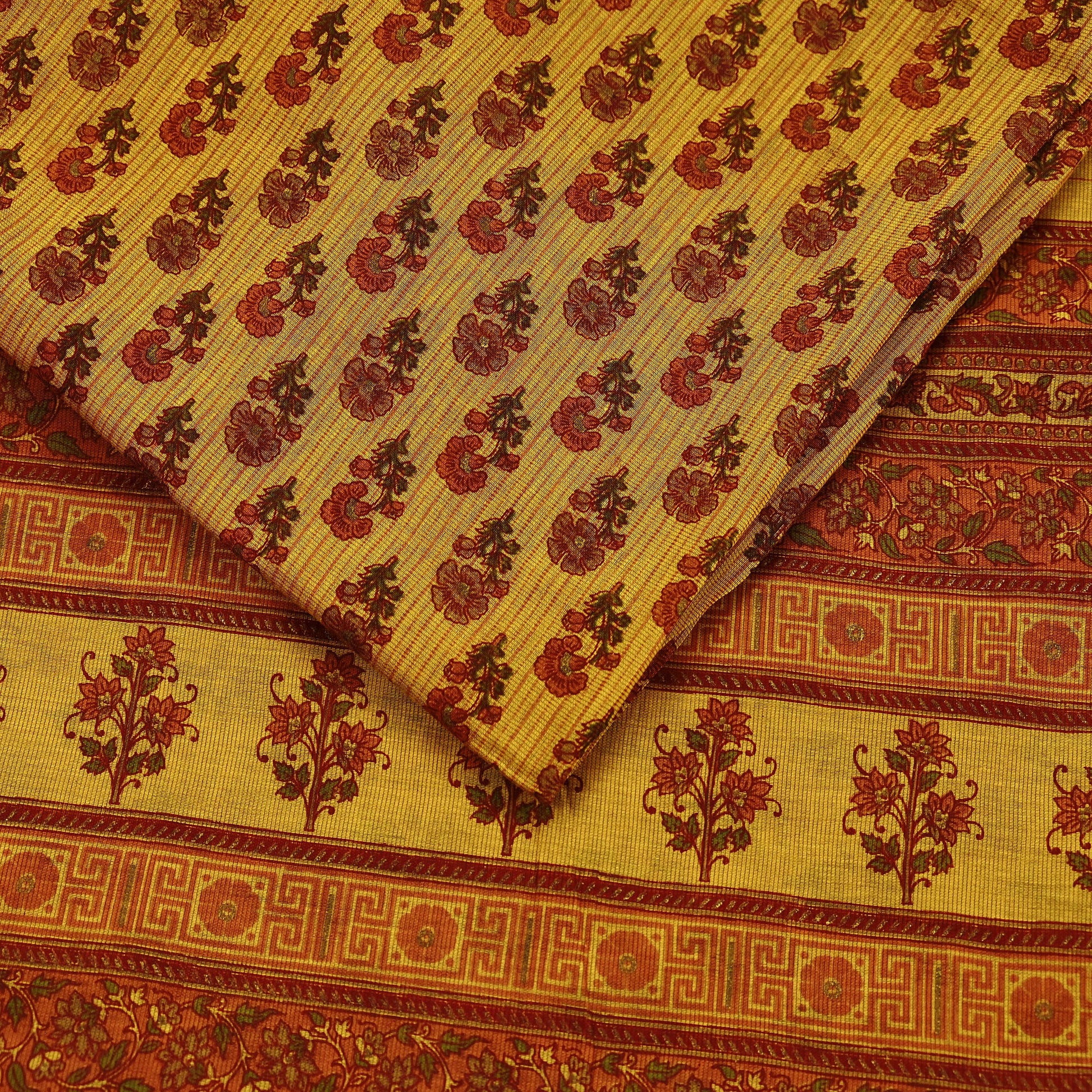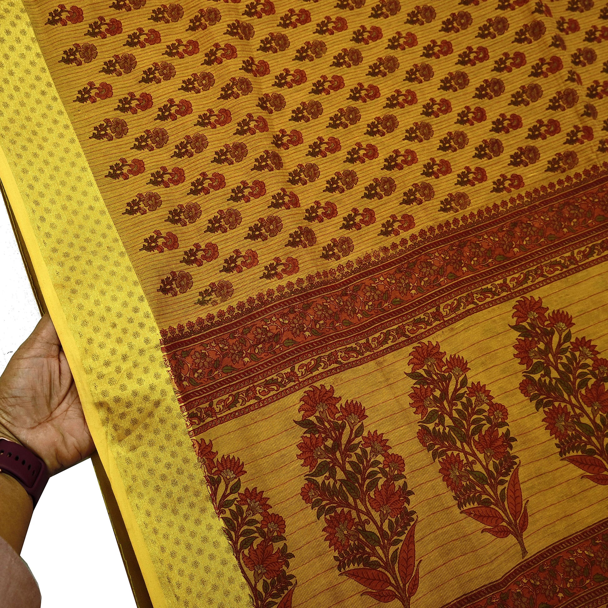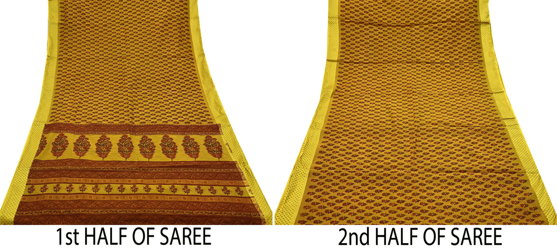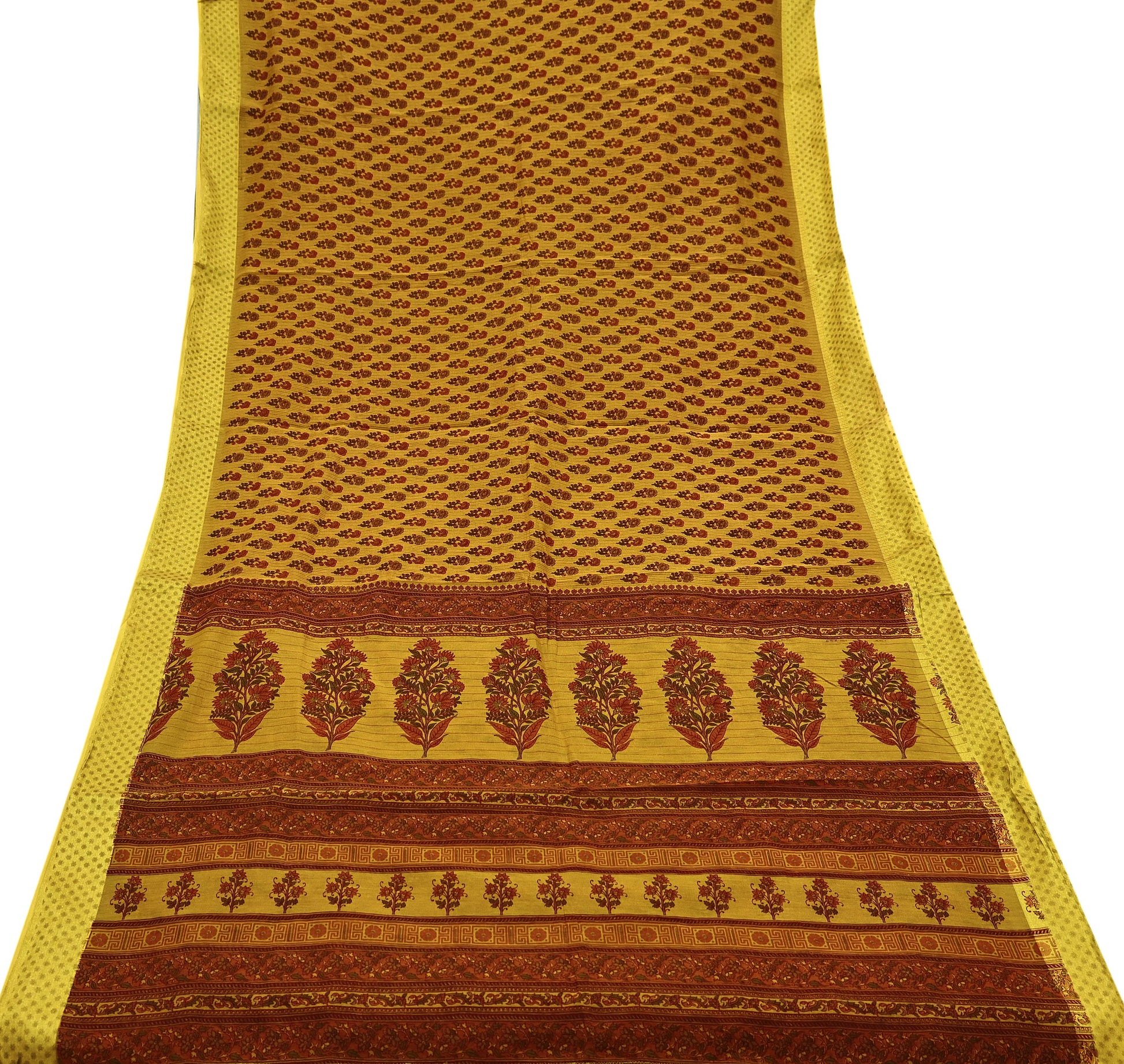 Indian Vintage Saffron Saree Blend Cotton Printed Sari Craft Fabric 5Yd Sewing Sarong Wrap Floral Dress Making Crafting Quilting Upcycle
