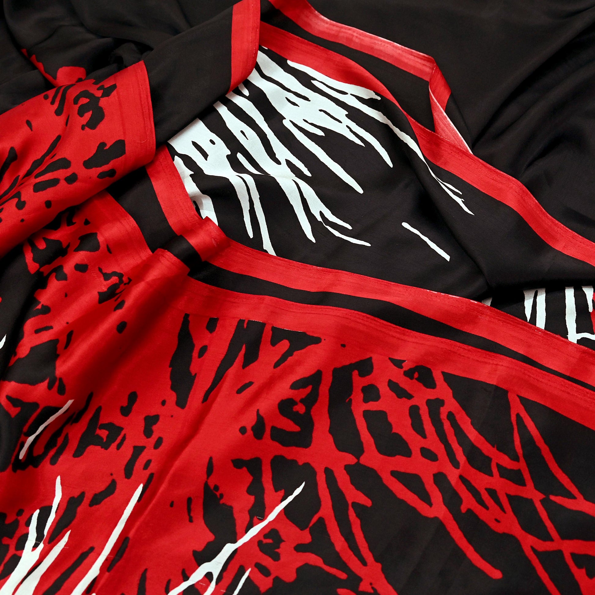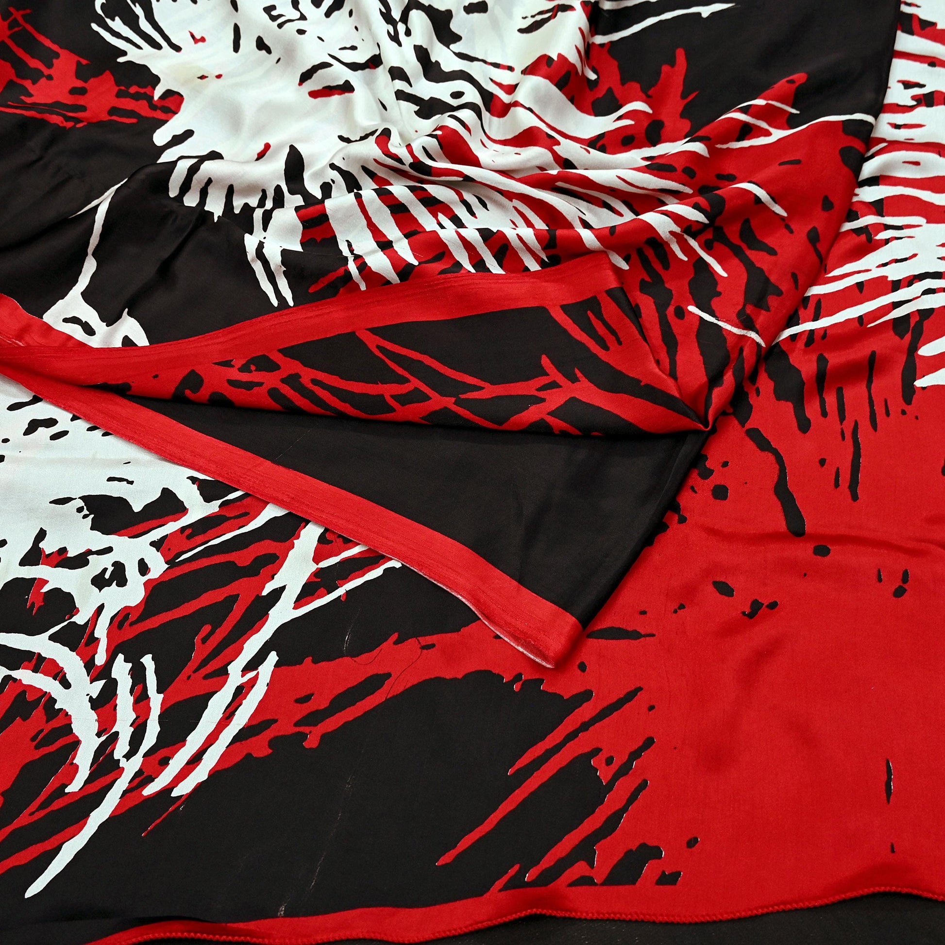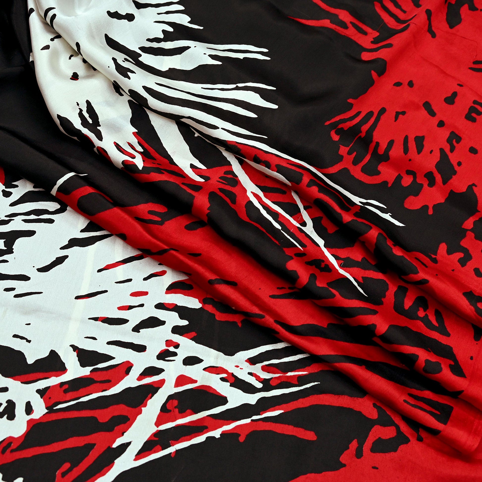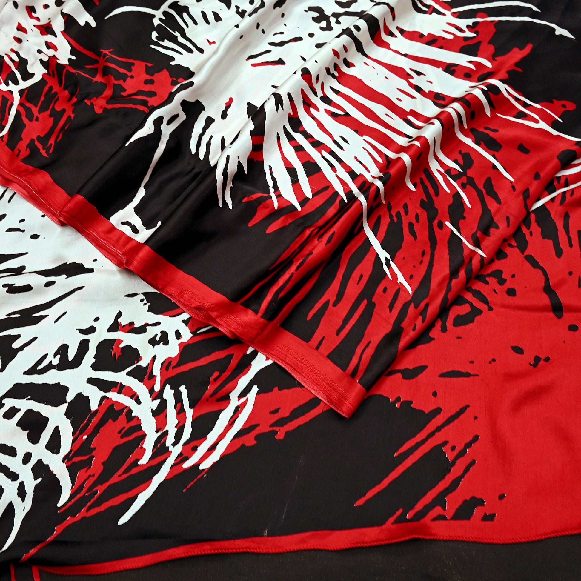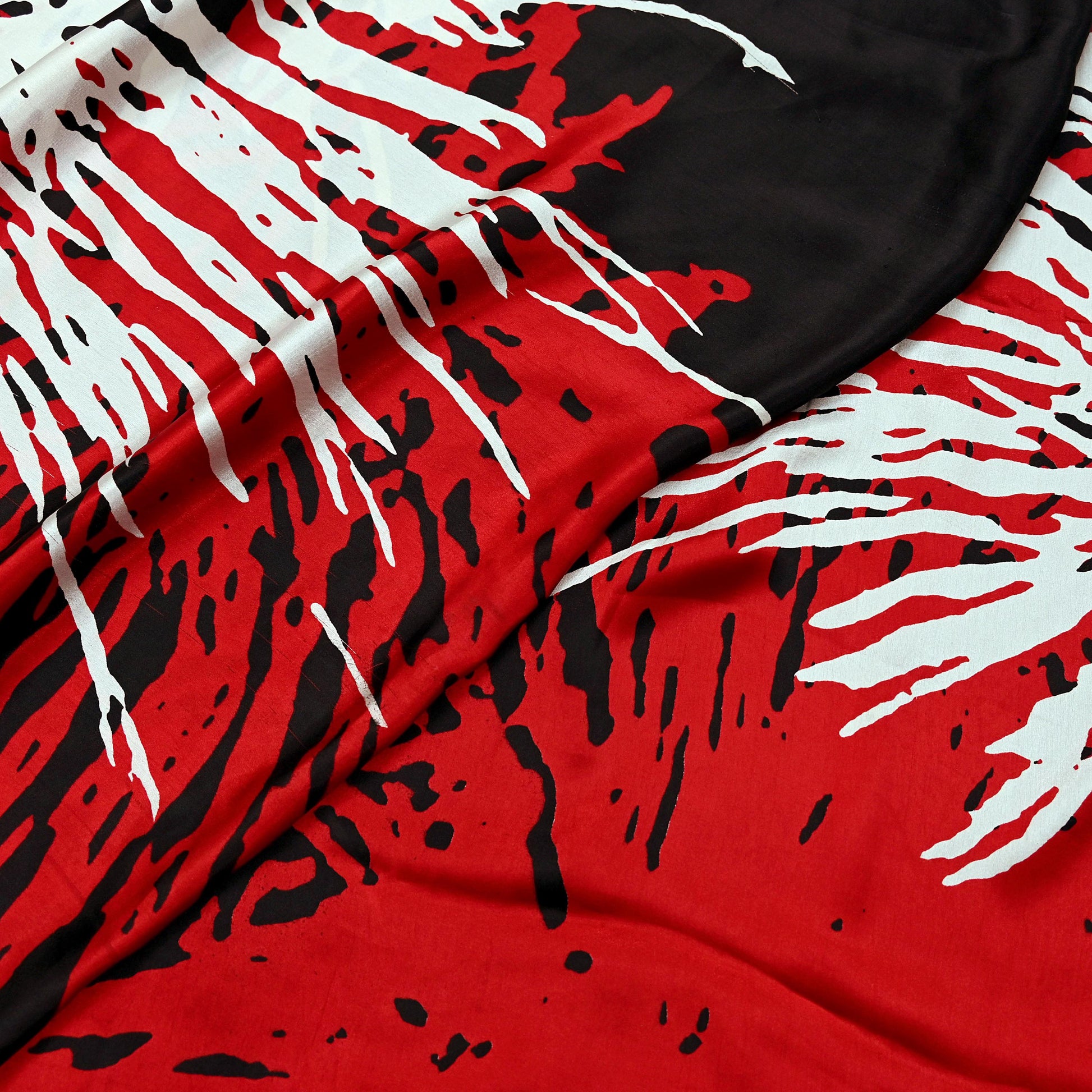 *Lovely Black, Red & White colored Digital printed Satin Artificial silk saree.
