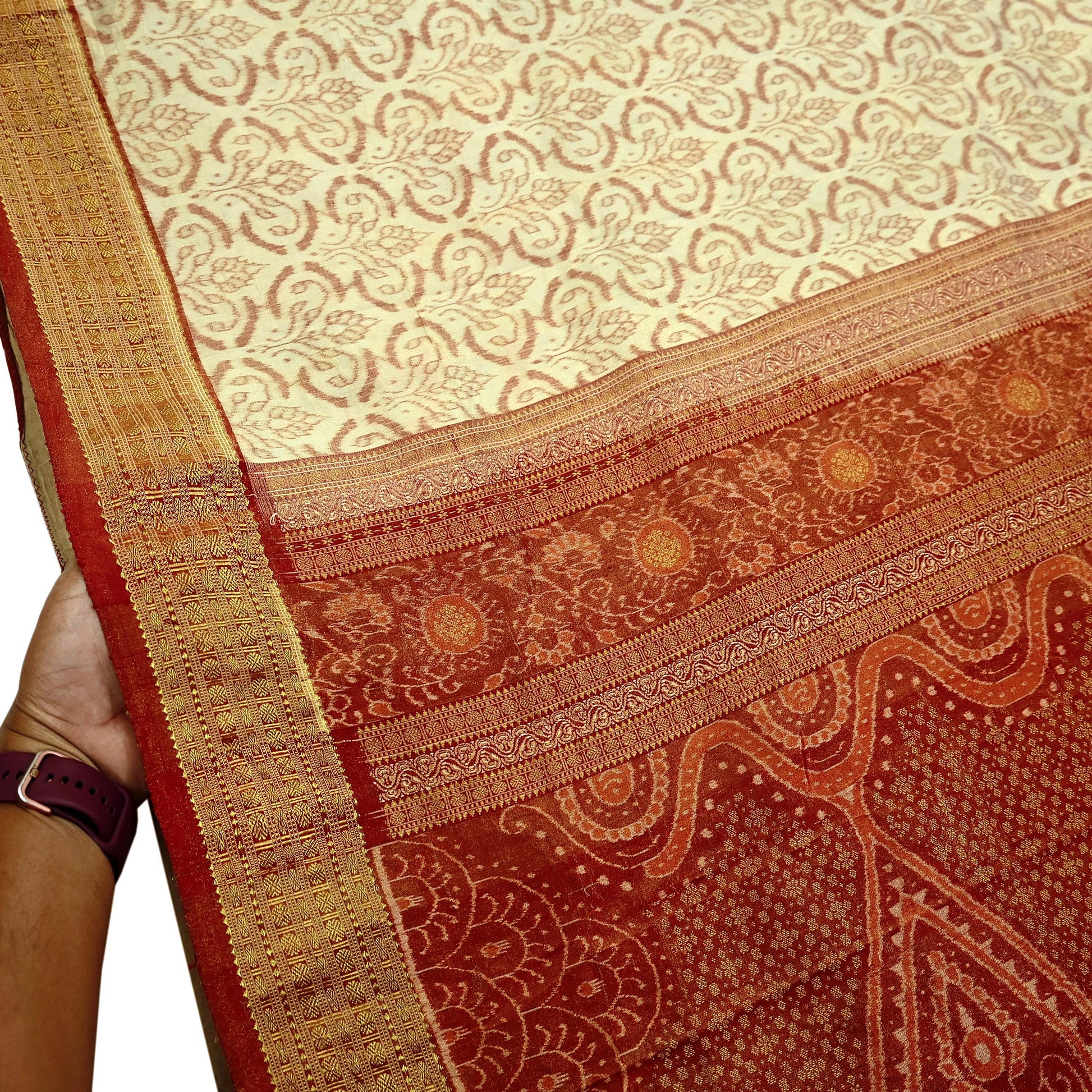 • Lovely Maroon & Ivory colored 100% pure silk Hand woven Double ikat Patola sari.