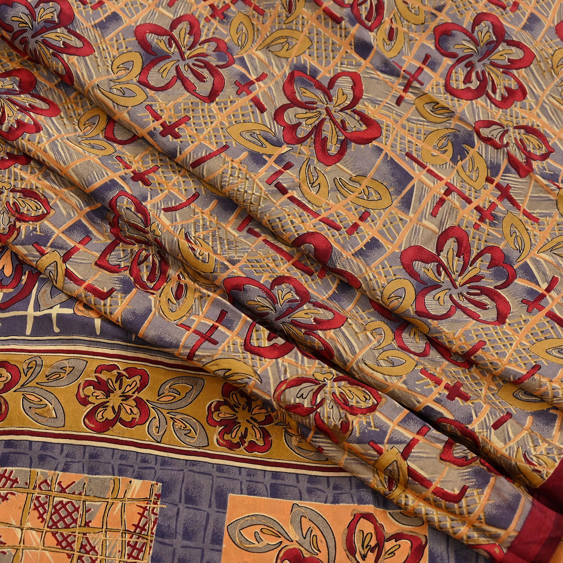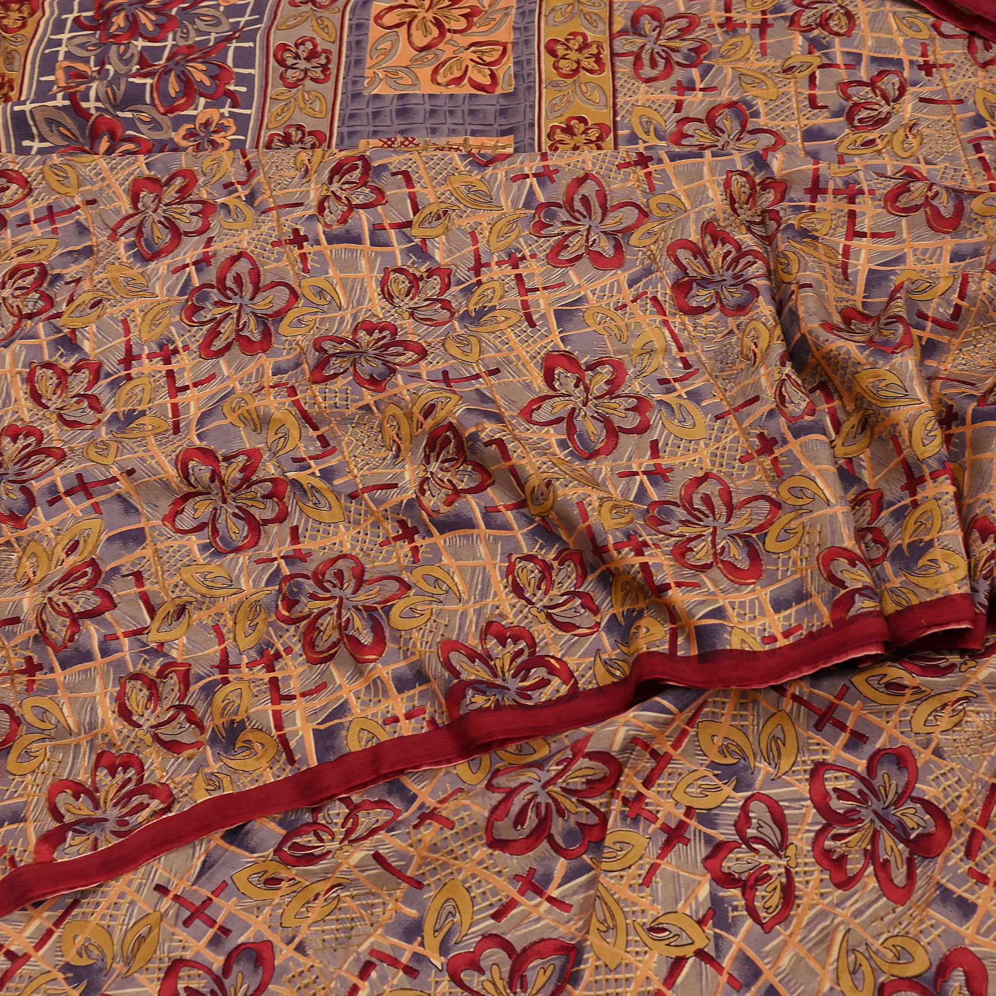 Indian Vintage Saree Multi 100% Pure Silk Printed Saree Sari Fabric 5yard Sewing Craft DressMaking Soft Abstract