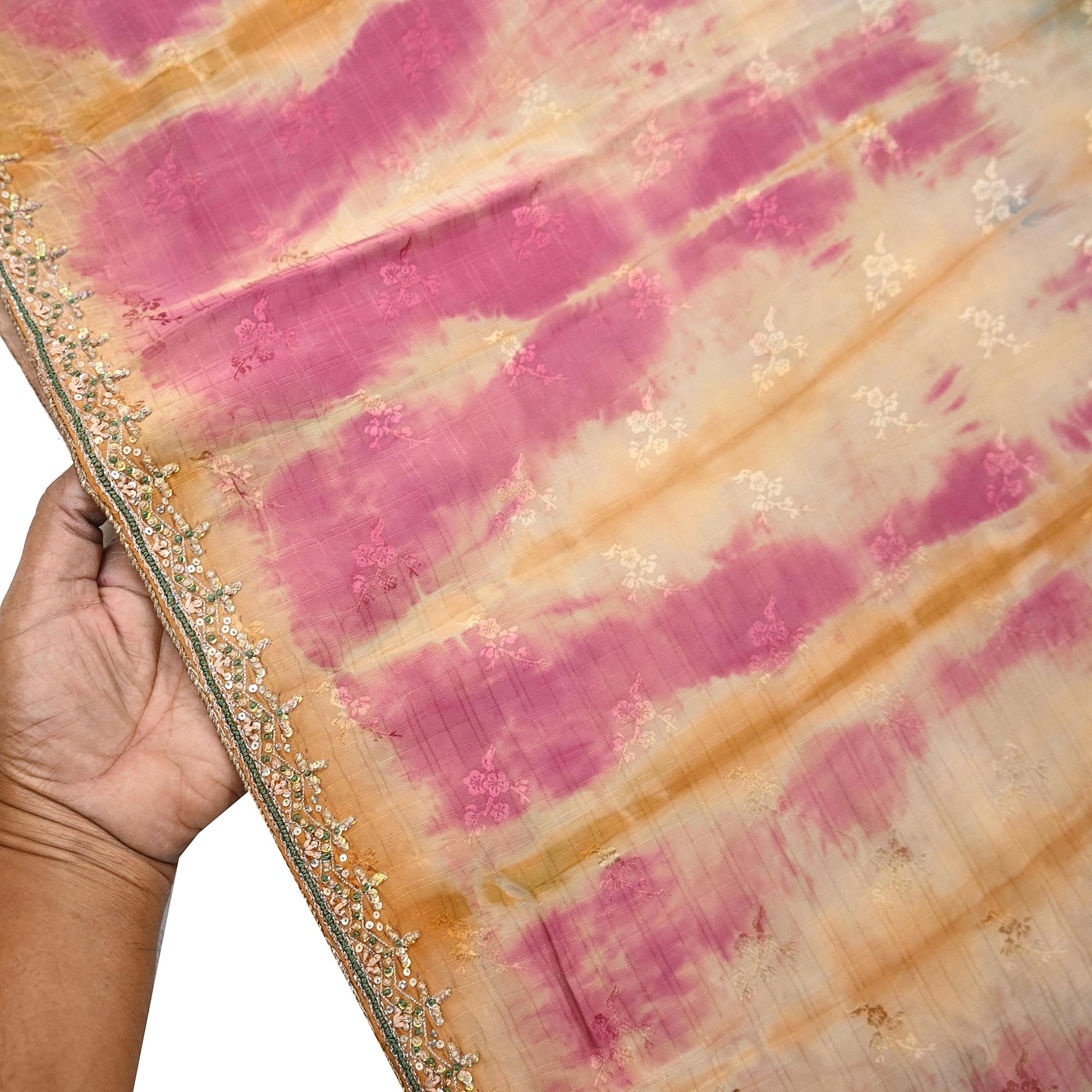 Border has tie-dye work embellished with Sequins, Multi Thread with Floral pattern Work.