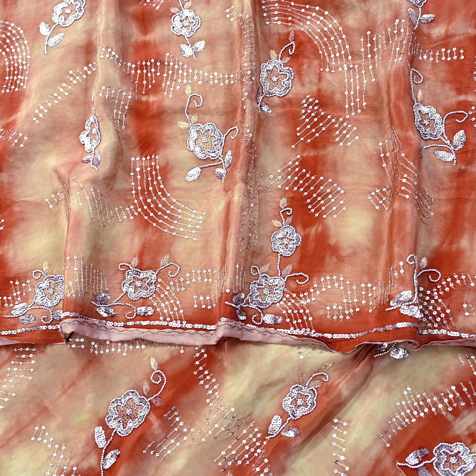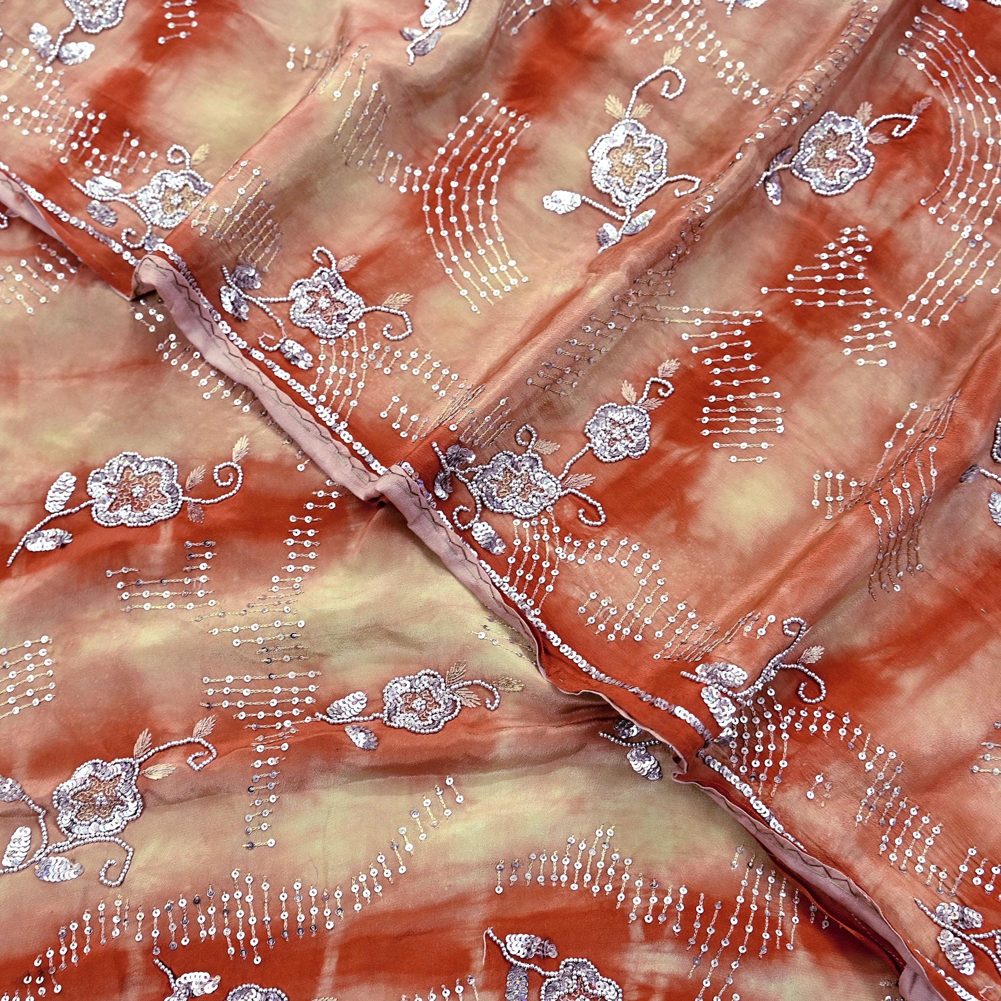 Indian Vintage Saree Pure Crepe Silk Hand Embroidered Tie-Dye Sari Fabric 5yard Sewing Craft Fabric Ethnic Dressmaking Crafting Zardozi Zari