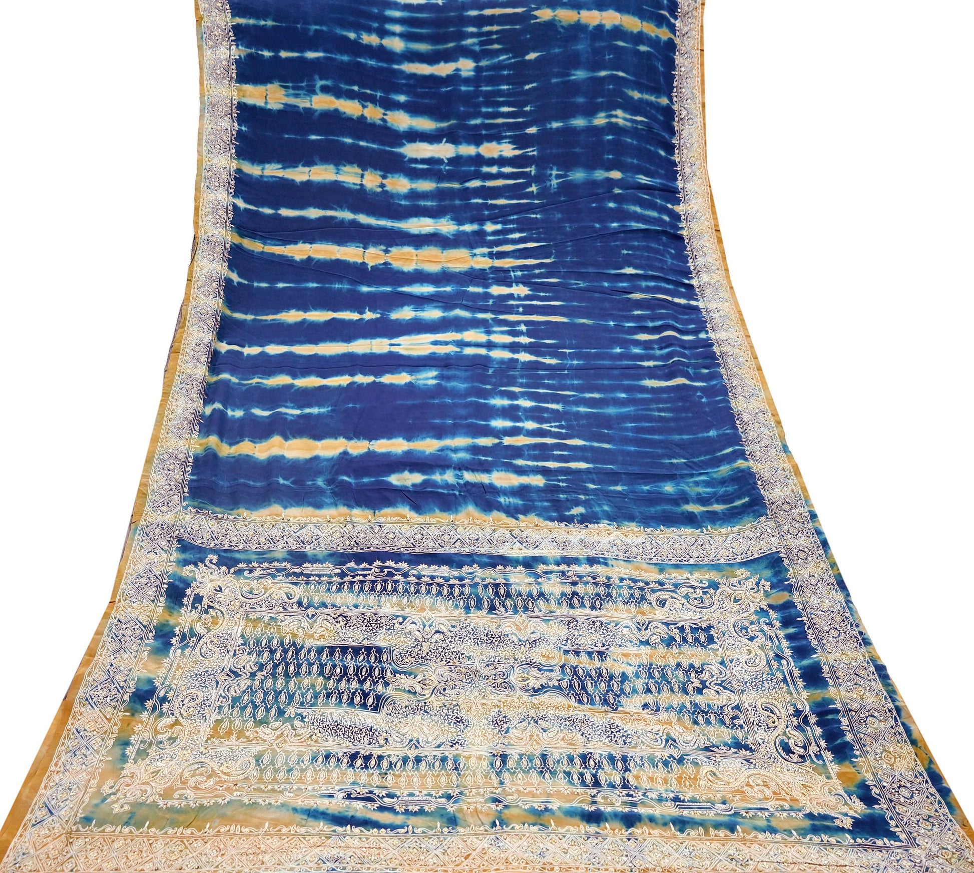Indian Vintage Saree Pure Crepe Silk Hand Embroidered Tie-Dye Sari Fabric 5yard Sewing Craft Fabric Ethnic Dressmaking Crafting Zardozi Zari