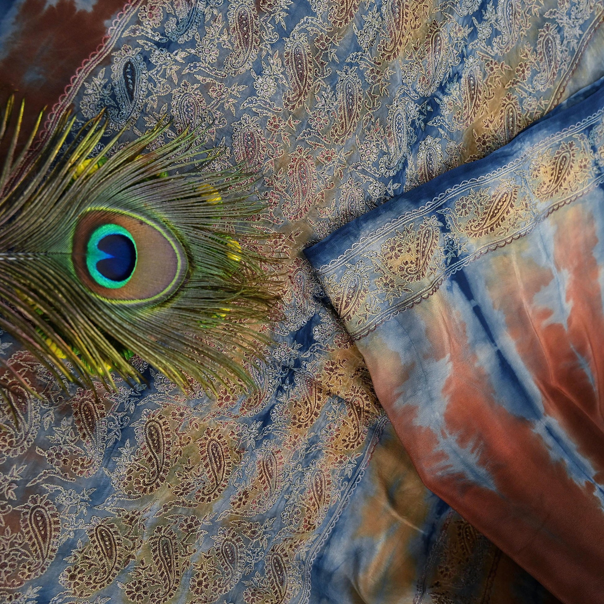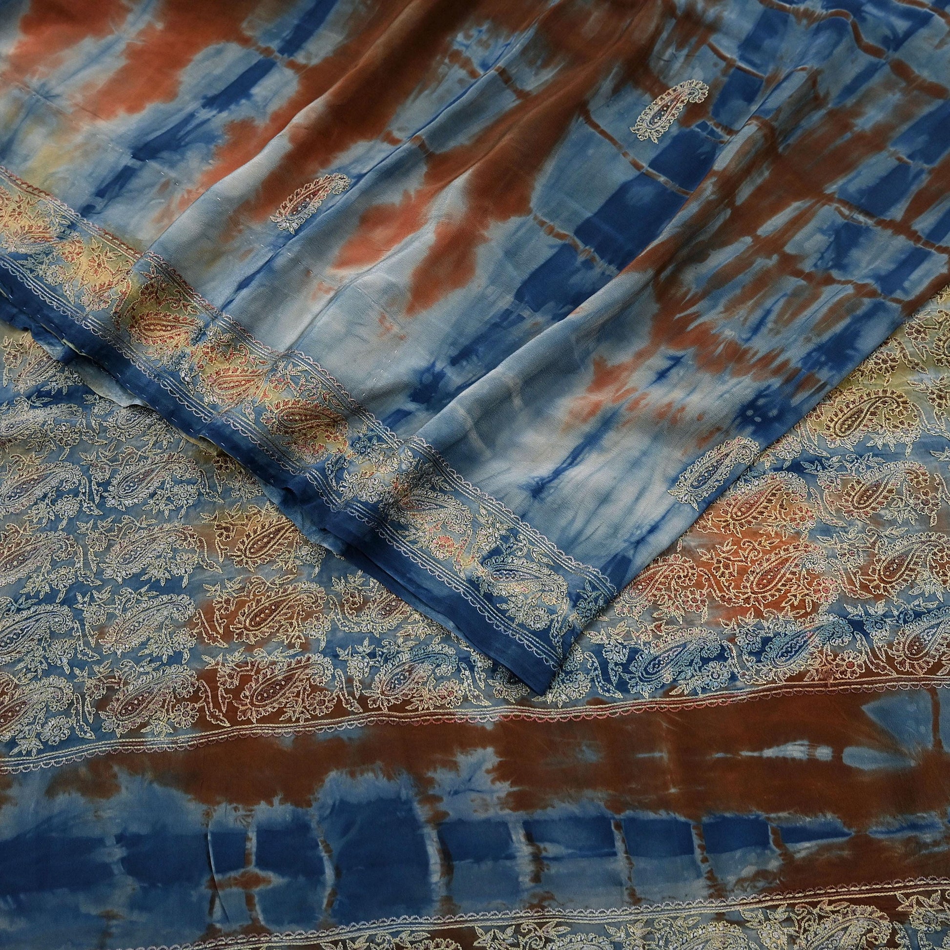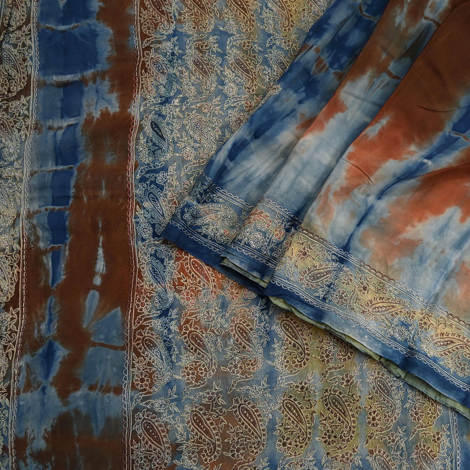 Outstanding shade of Brown & Gray colored 100% pure Crepe silk hand embroidered Tie-dye saree.