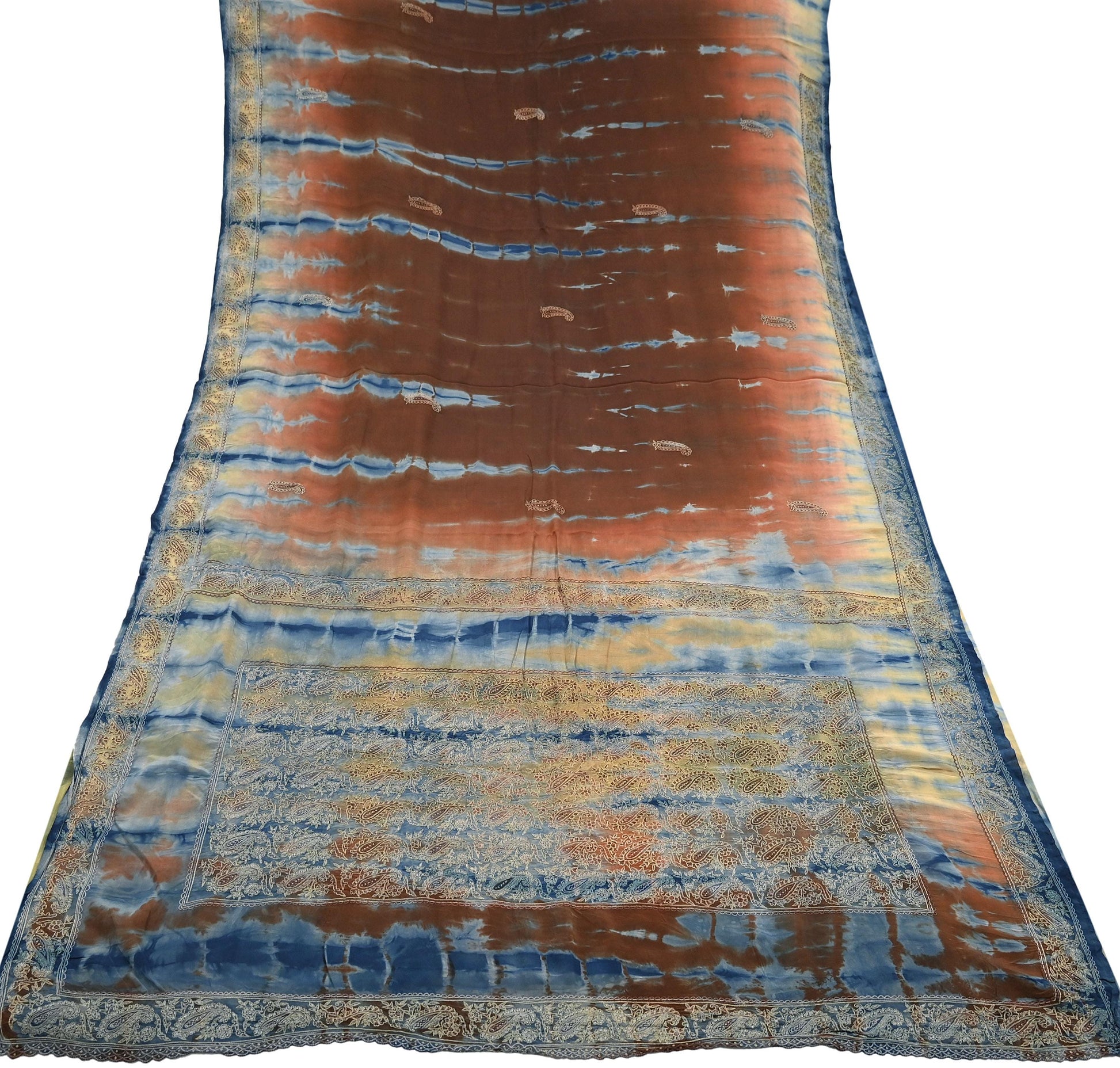Indian Vintage Saree Pure Crepe Silk Hand Embroidered Tie-Dye Sari Fabric 6yard Sewing Craft Fabric Ethnic Dressmaking Crafting Zardozi Zari