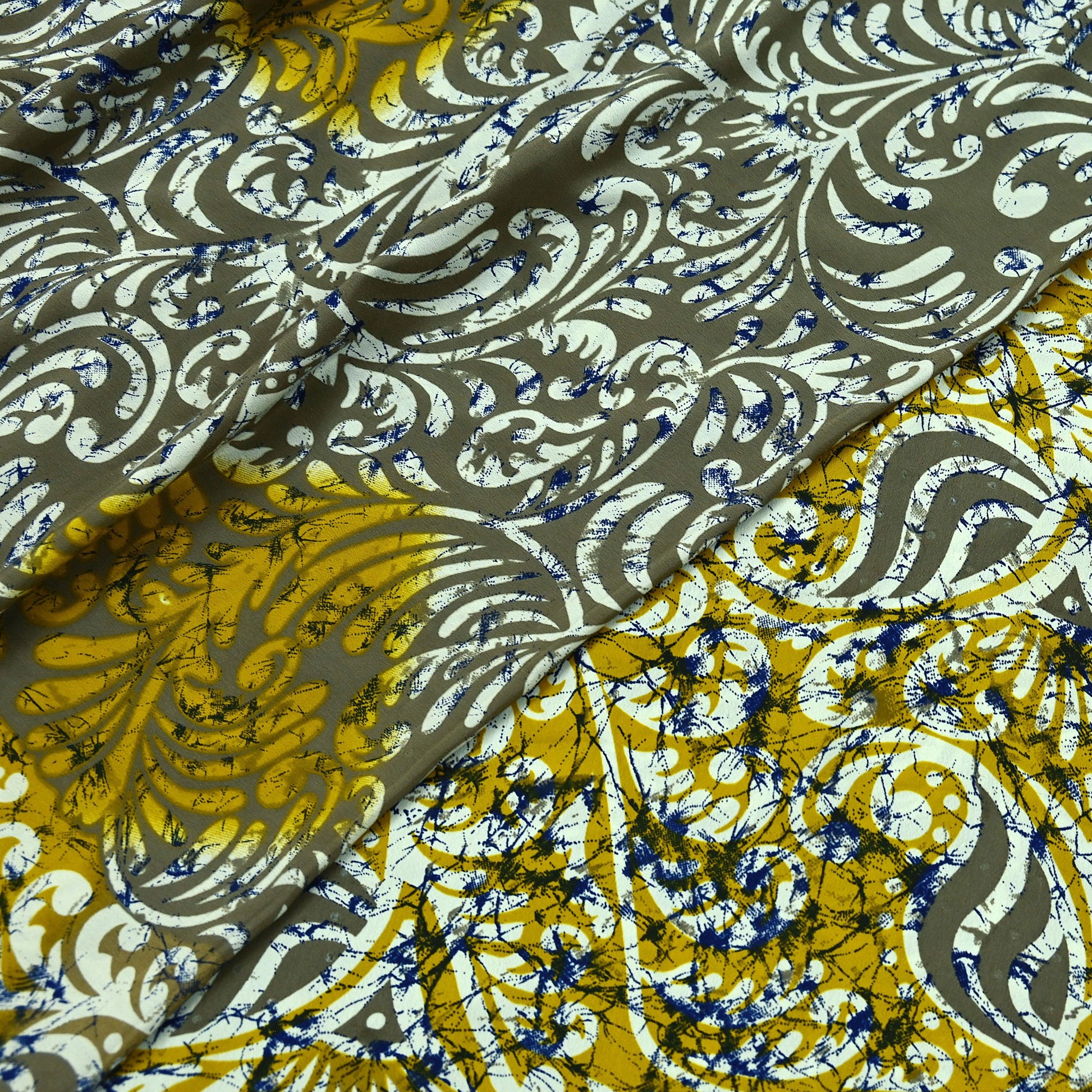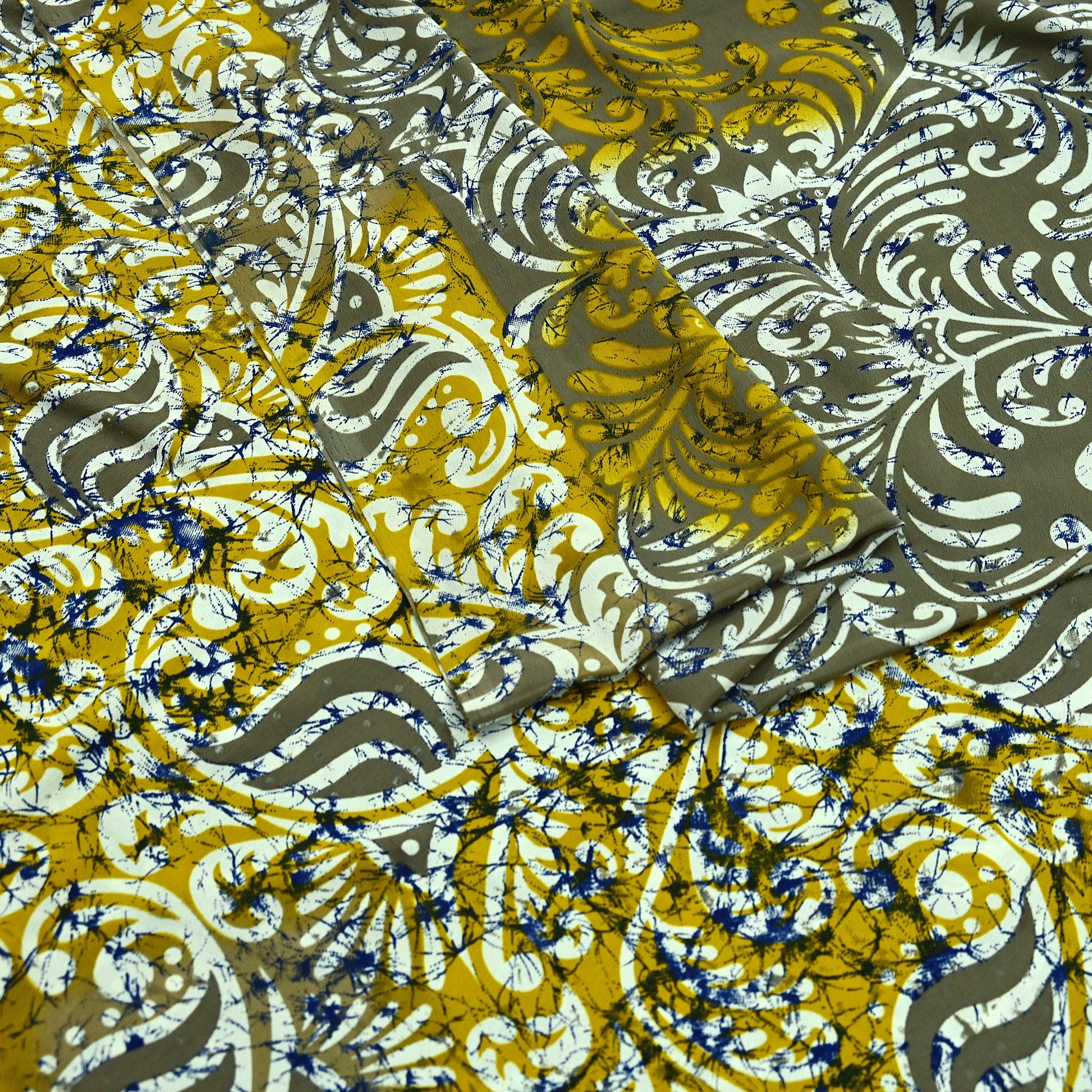 Add a touch of vintage charm to your creations with this Indian Vintage Saree in classic Yellow & Gray, featuring a stylish Floral print. Made from soft and flowy moss crepe fabric, this 5-yard piece is perfect for sewing, dressmaking, crafting, quilting, and upcycling.