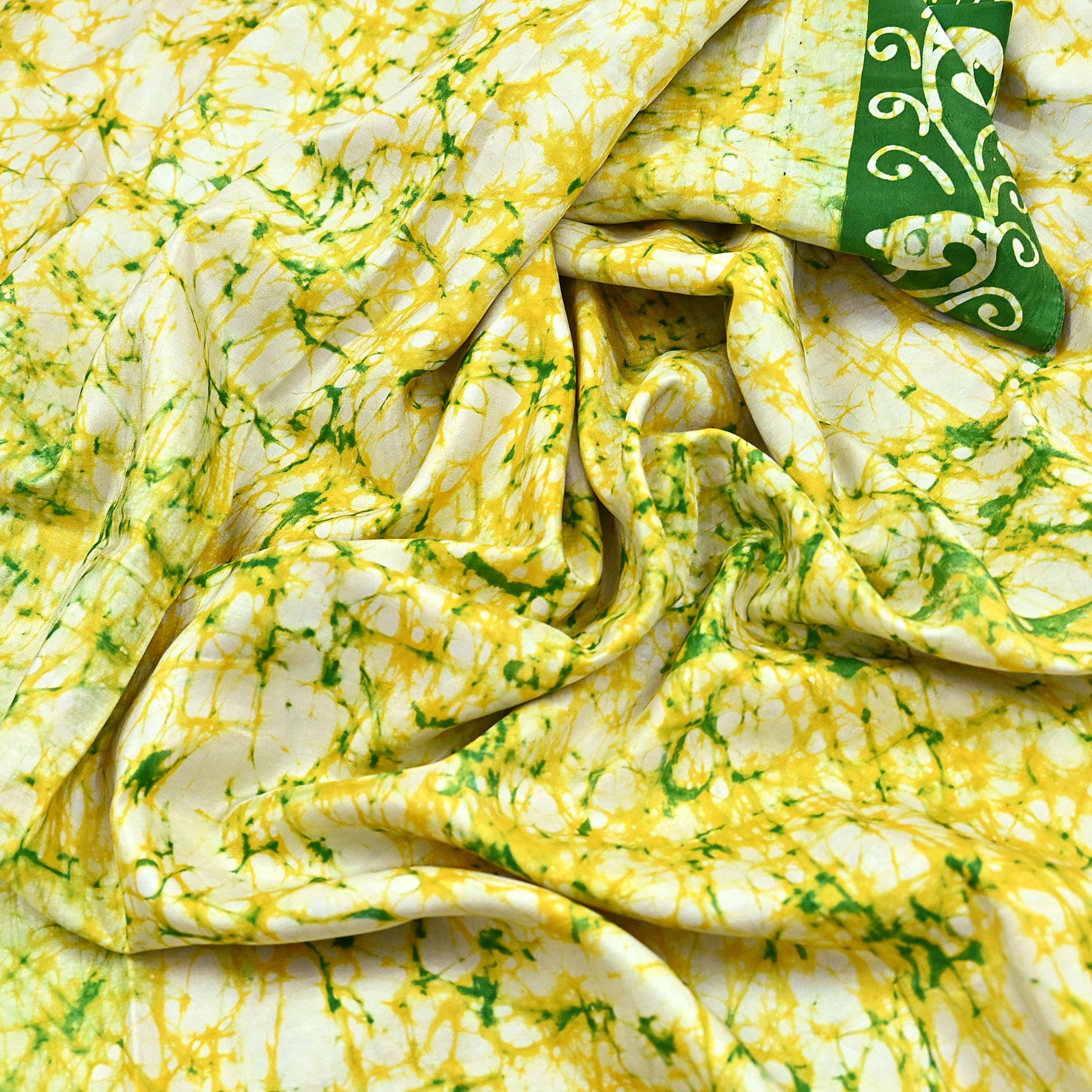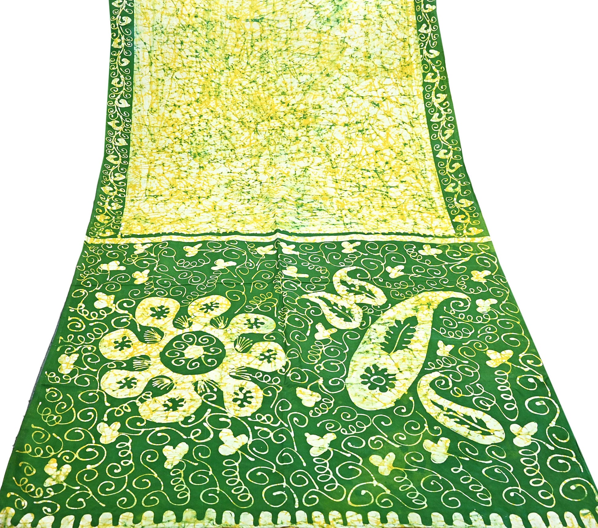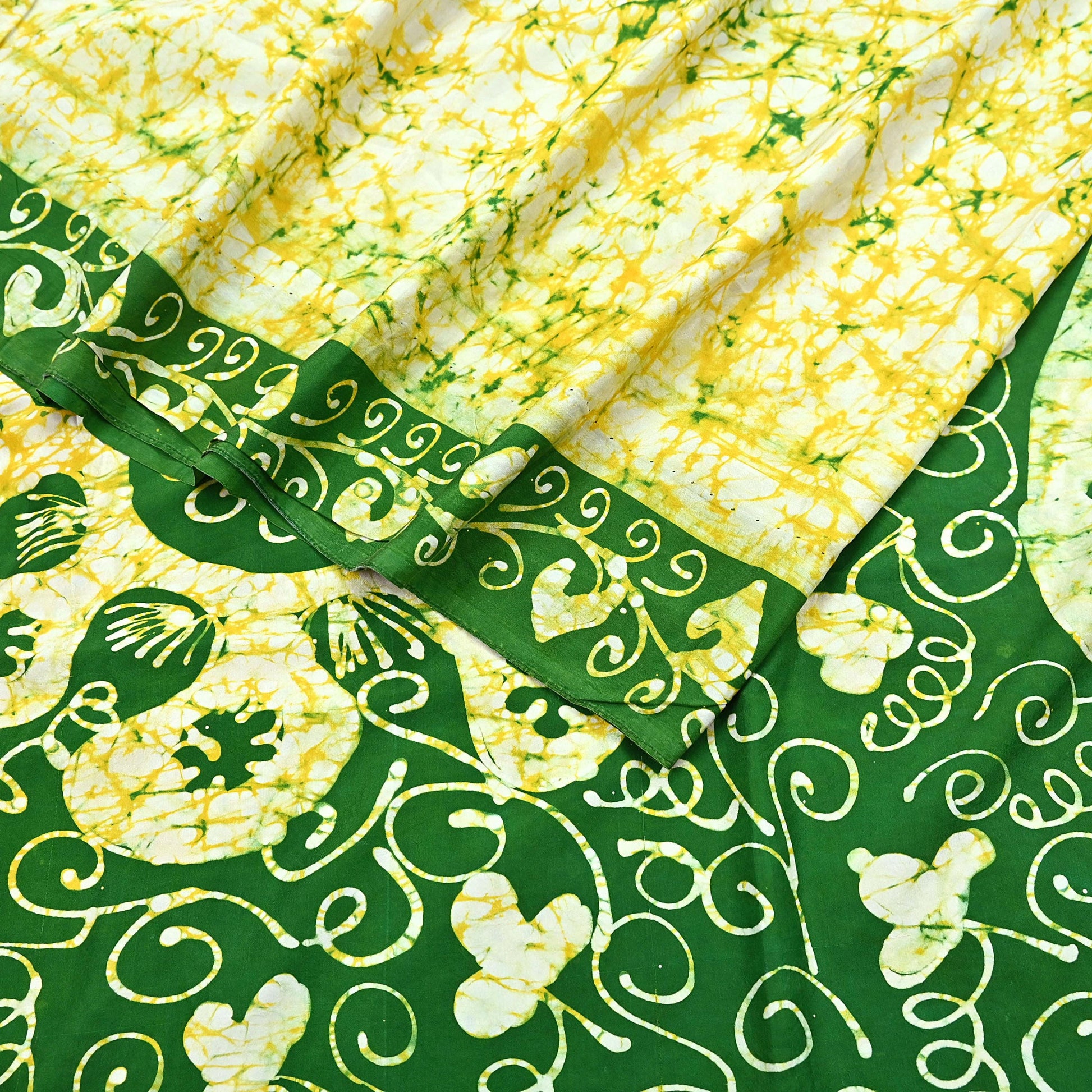 *Beautiful Green, yellow & Ivory Colored Printed Pure Silk Saree .