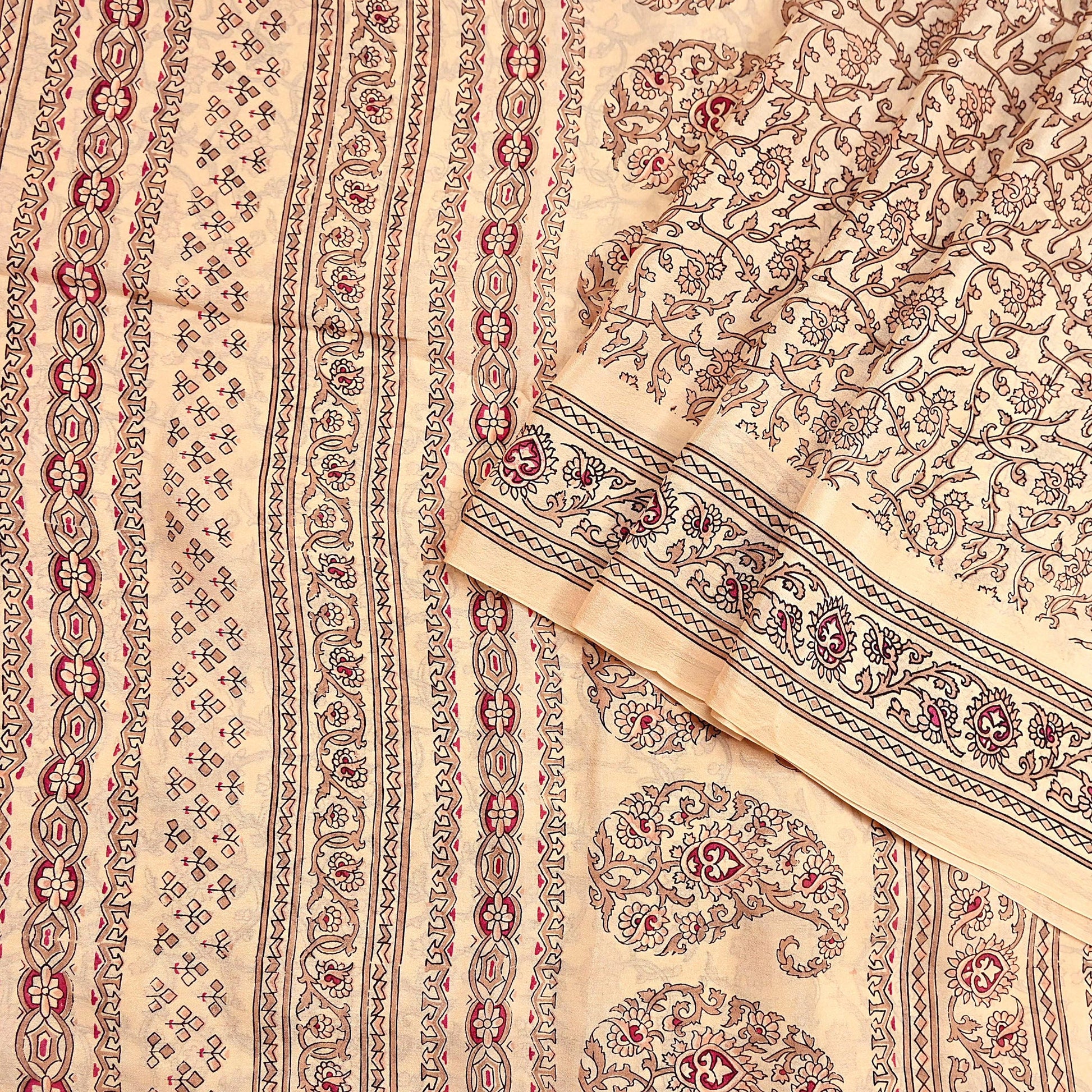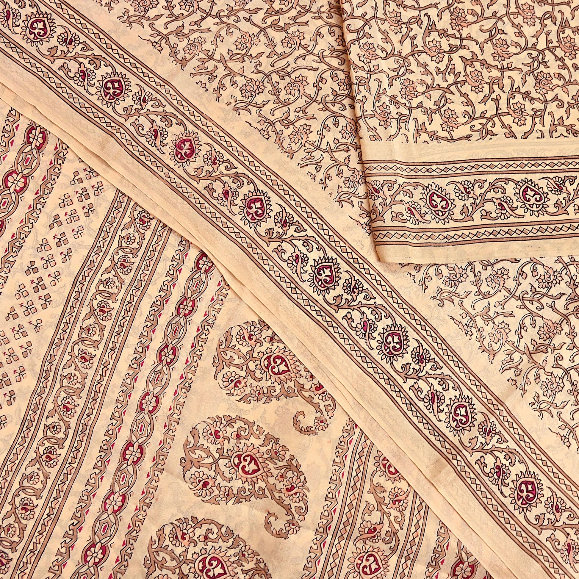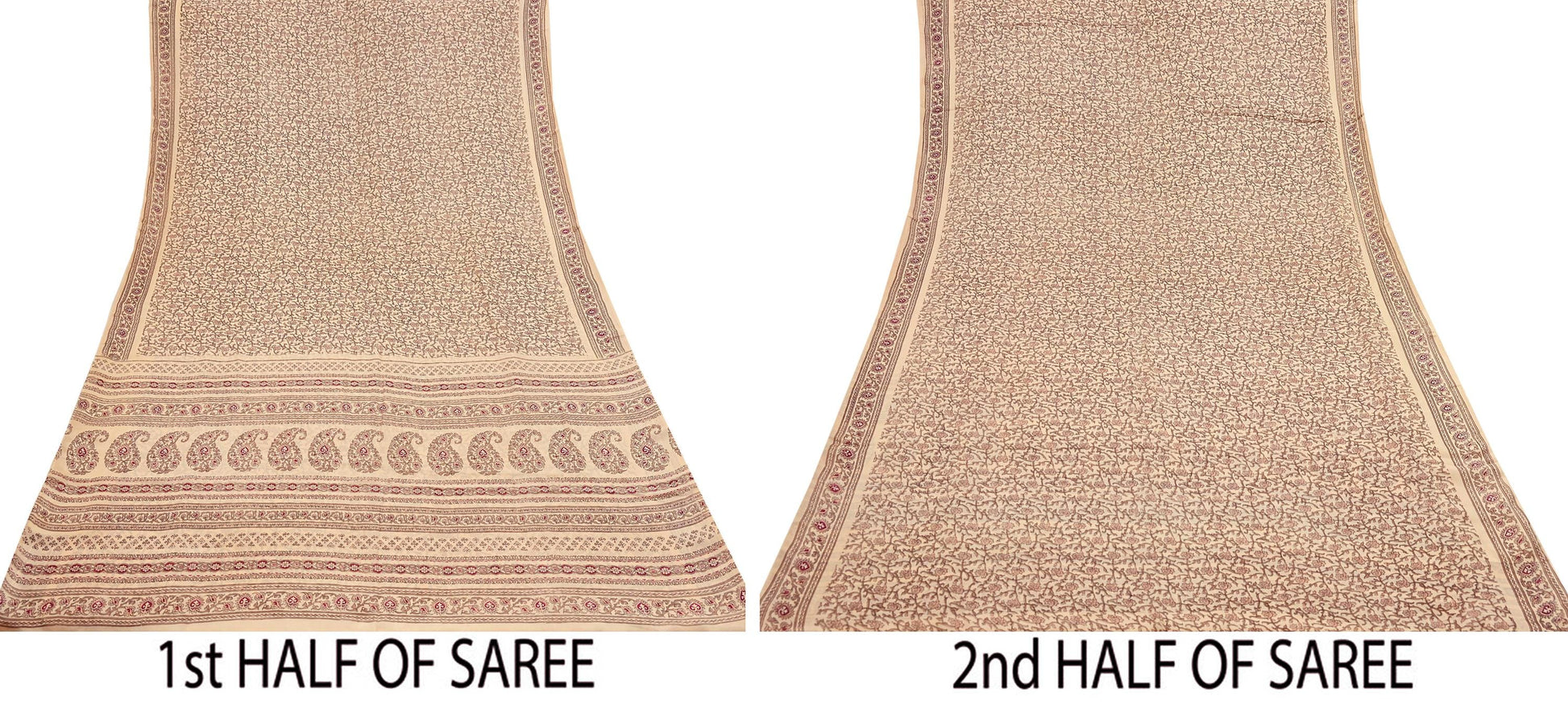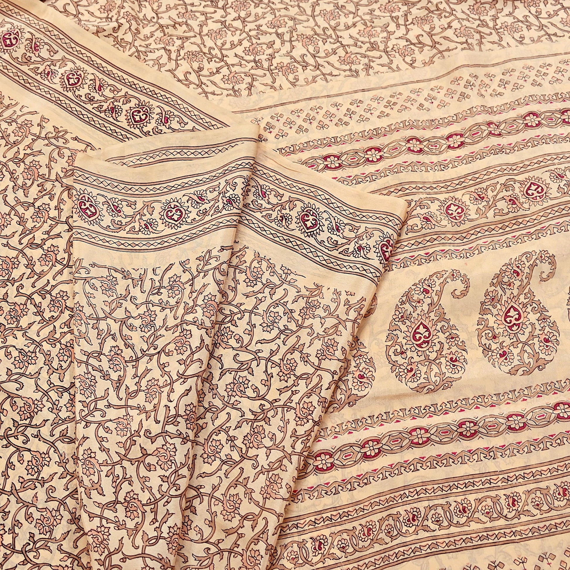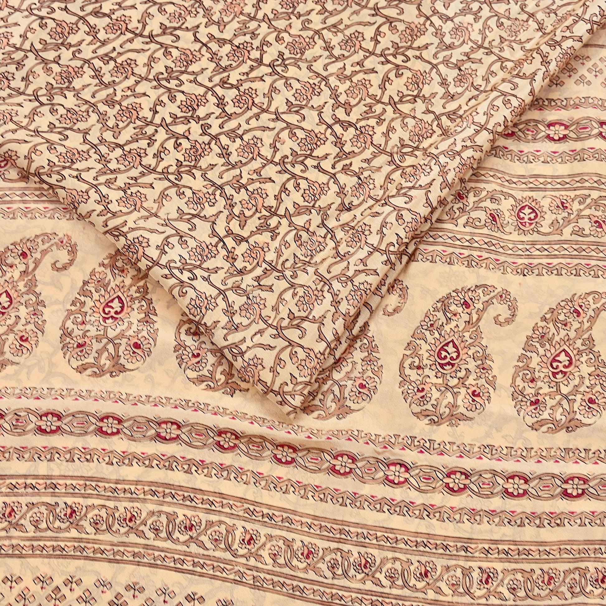 Indian Vintage Sari Beige 100% Pure Silk Printed Sarees 6yd Craft Fabric Sewing Soft Dress Making Floral Quilting Crafting Upcycle