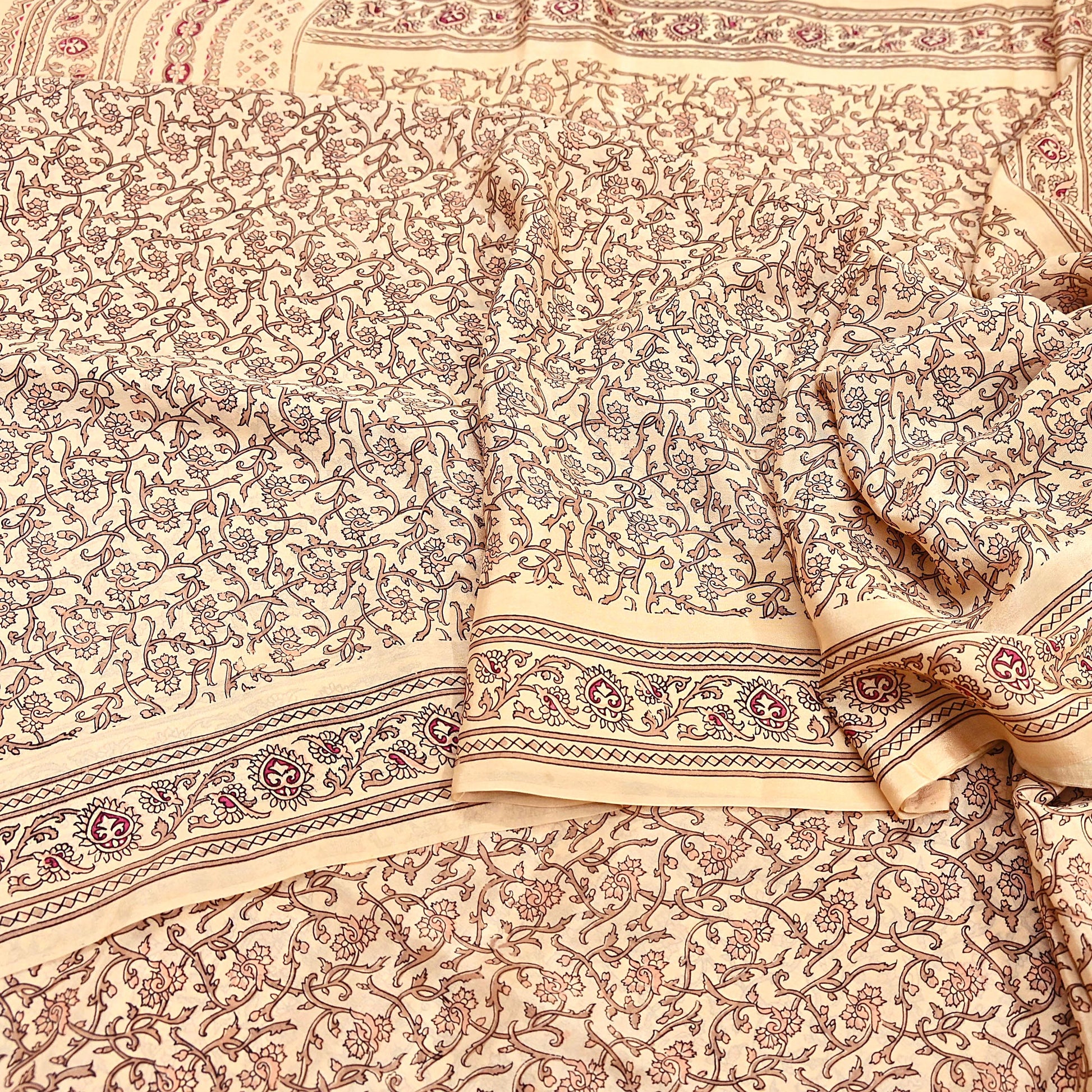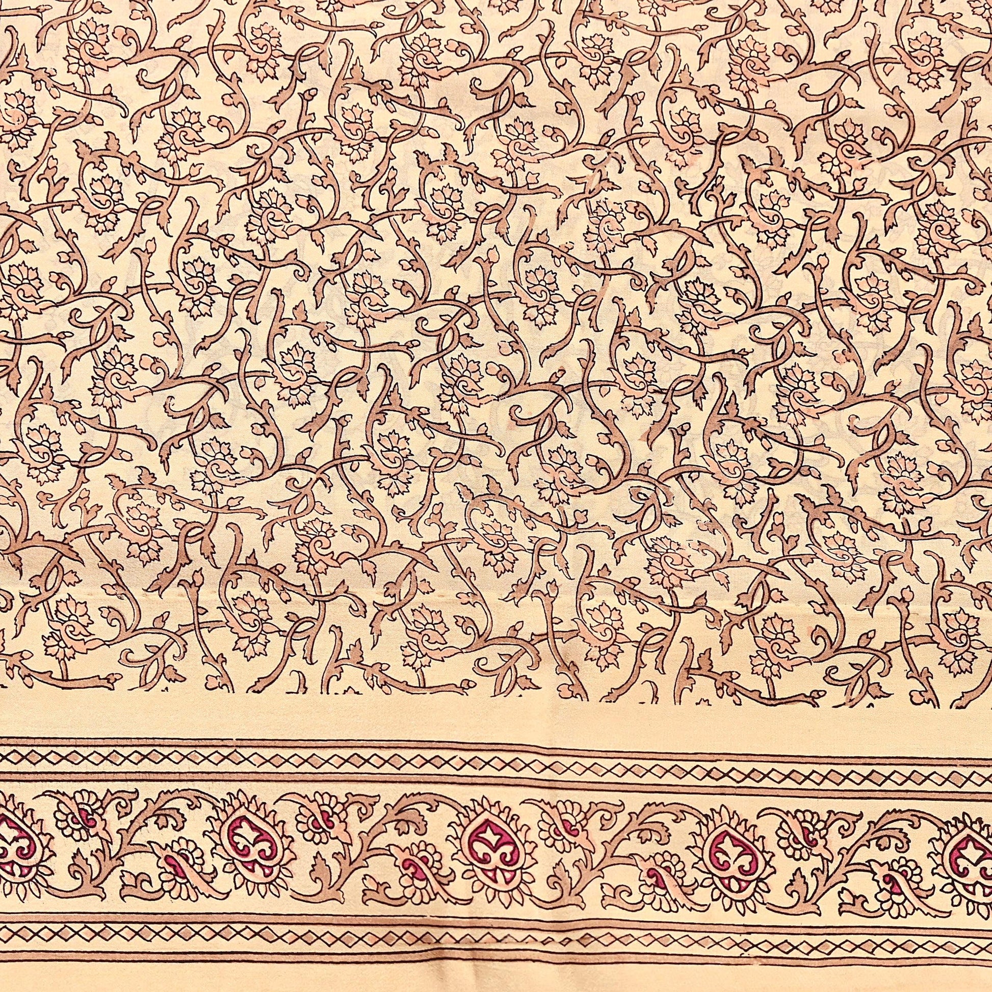 Vintage Beige Floral Printed Pure Silk Saree
