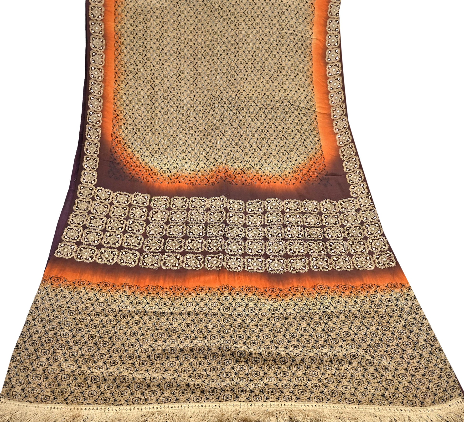 Indian Vintage Sari Beige & Brown Pure Crepe Silk Hand Embroidered Sarees 5yd Sewing Floral Craft Sequins Dress making Crafting Quilting