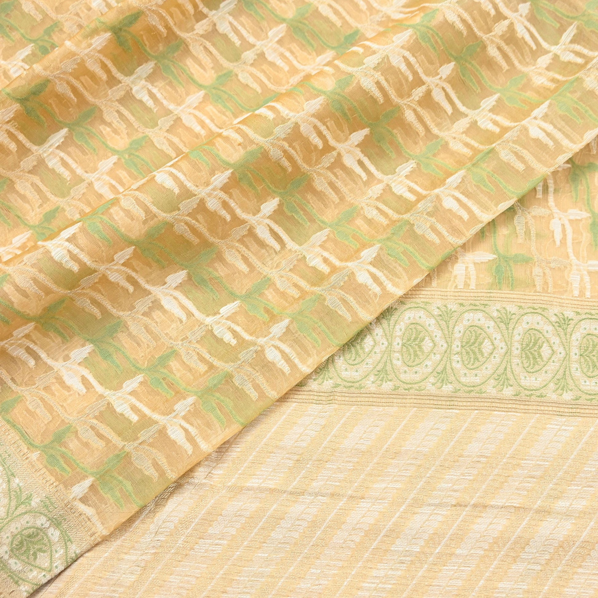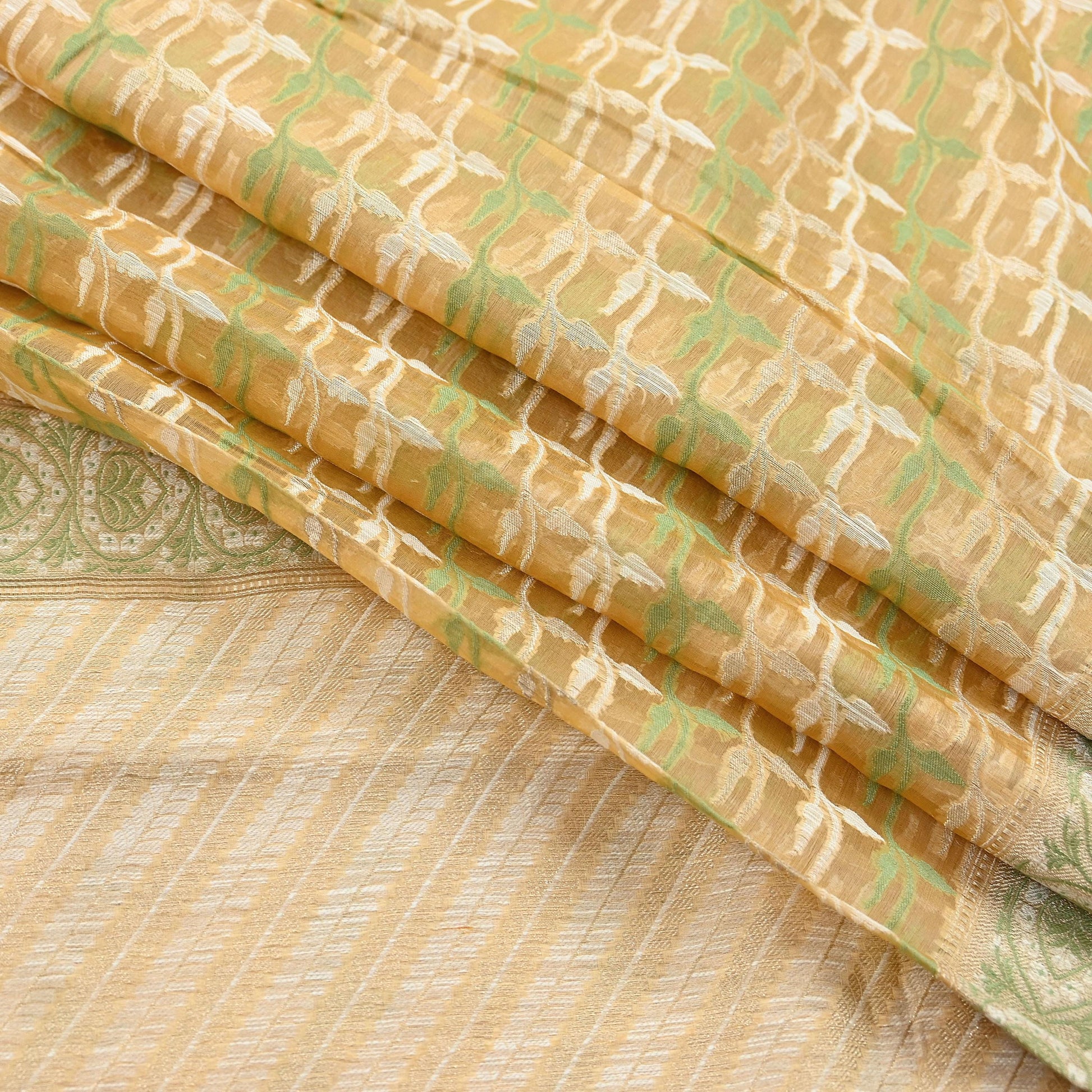 *pallu & border sari features Floral Motif Design with Golden woven Zari & Green & White Thread work.