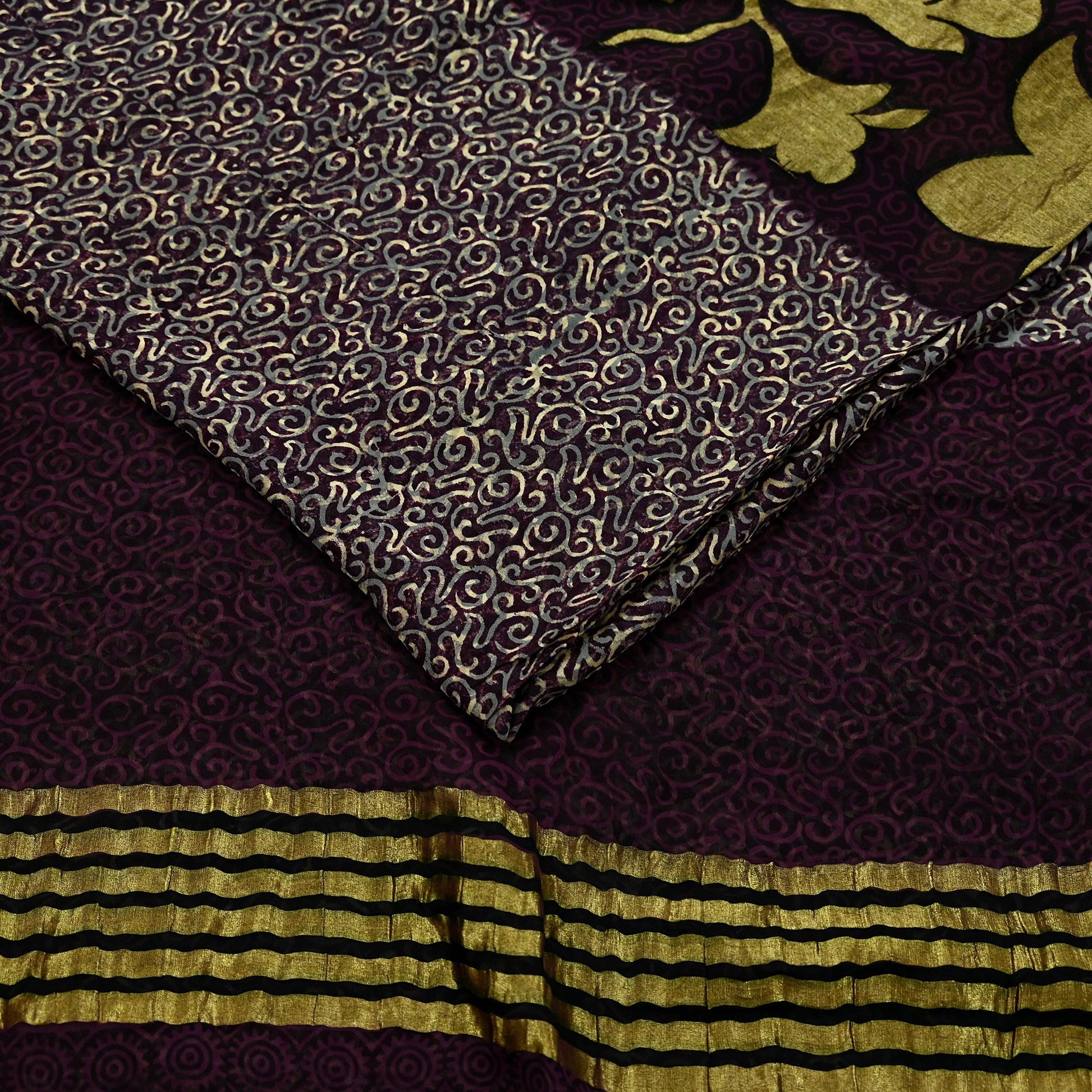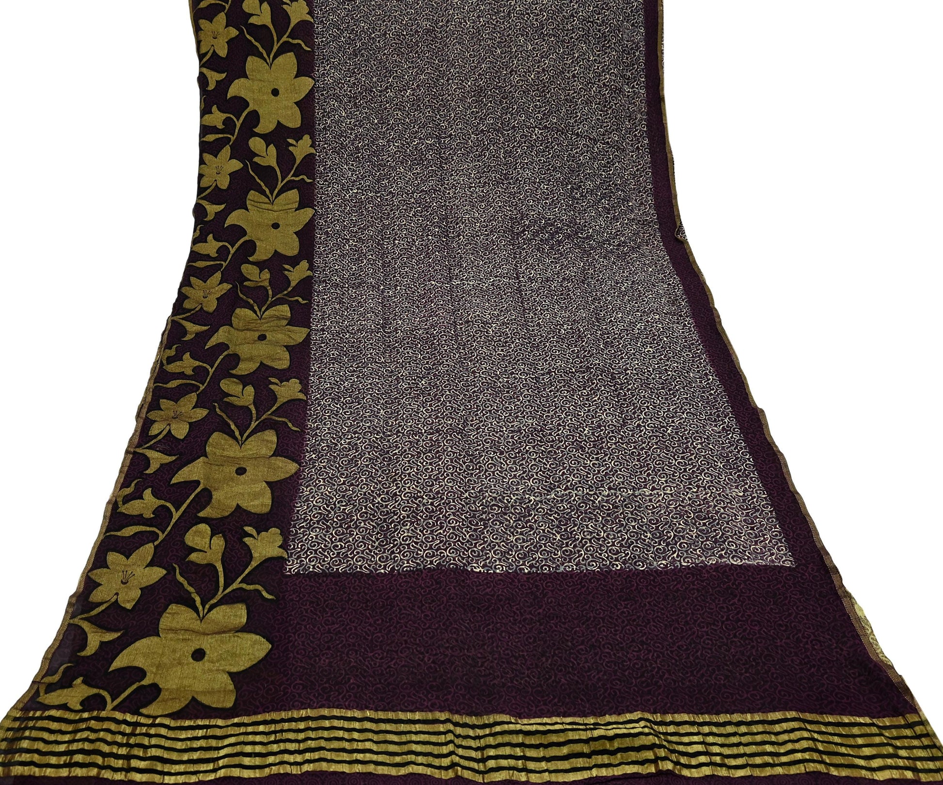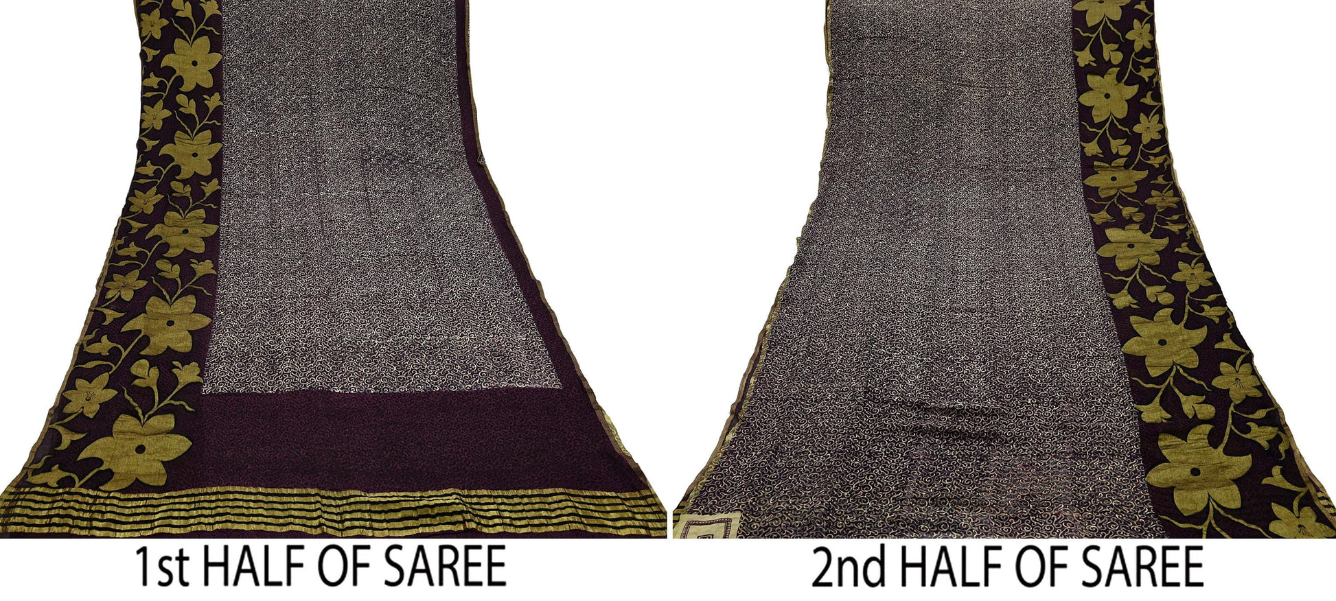 Indian Vintage Sari Beige & Maroon Pure Georgette Silk Printed Sarees Craft Fabric Sewing 5Yd Dress Making Crafting Quilting Upcycle Zari