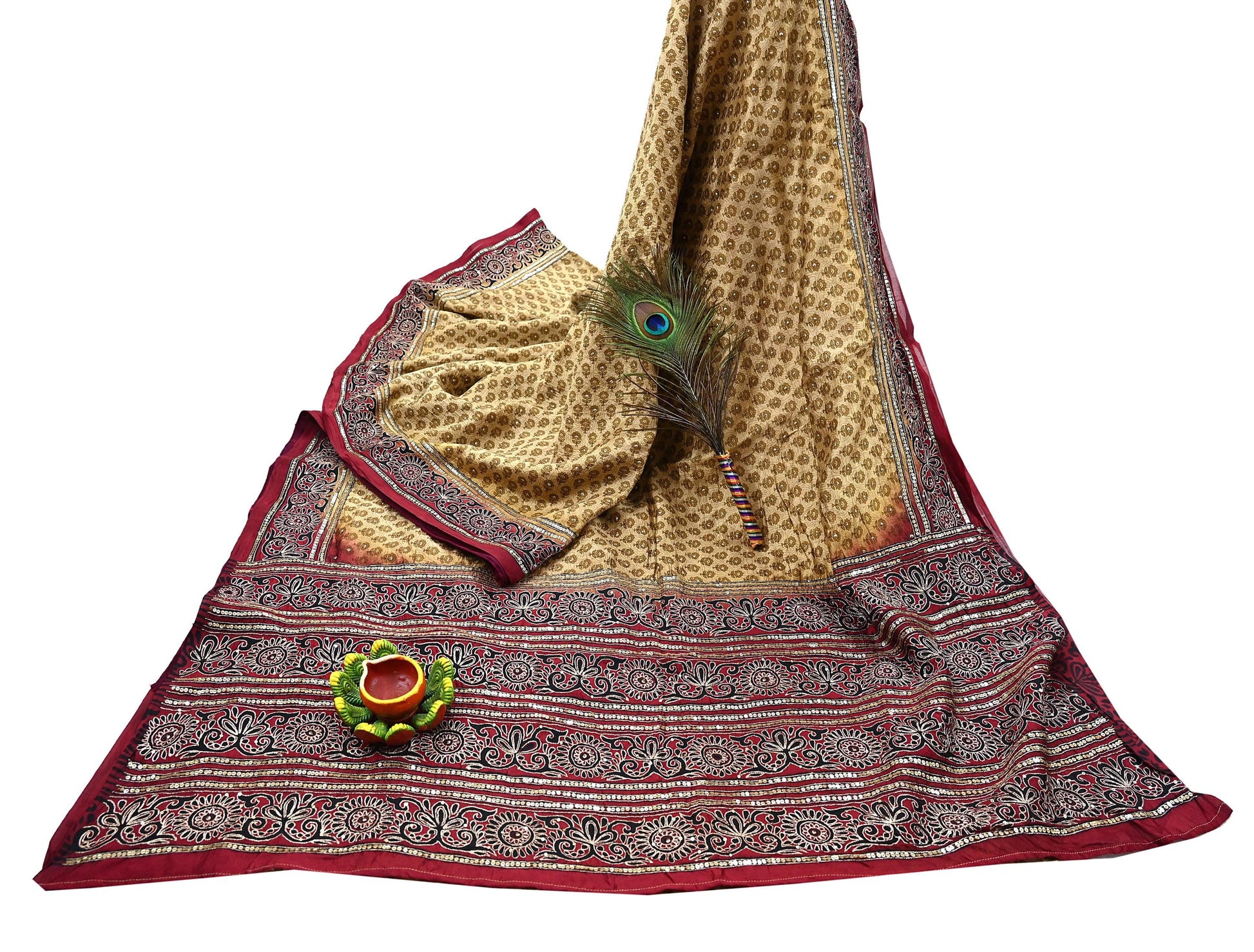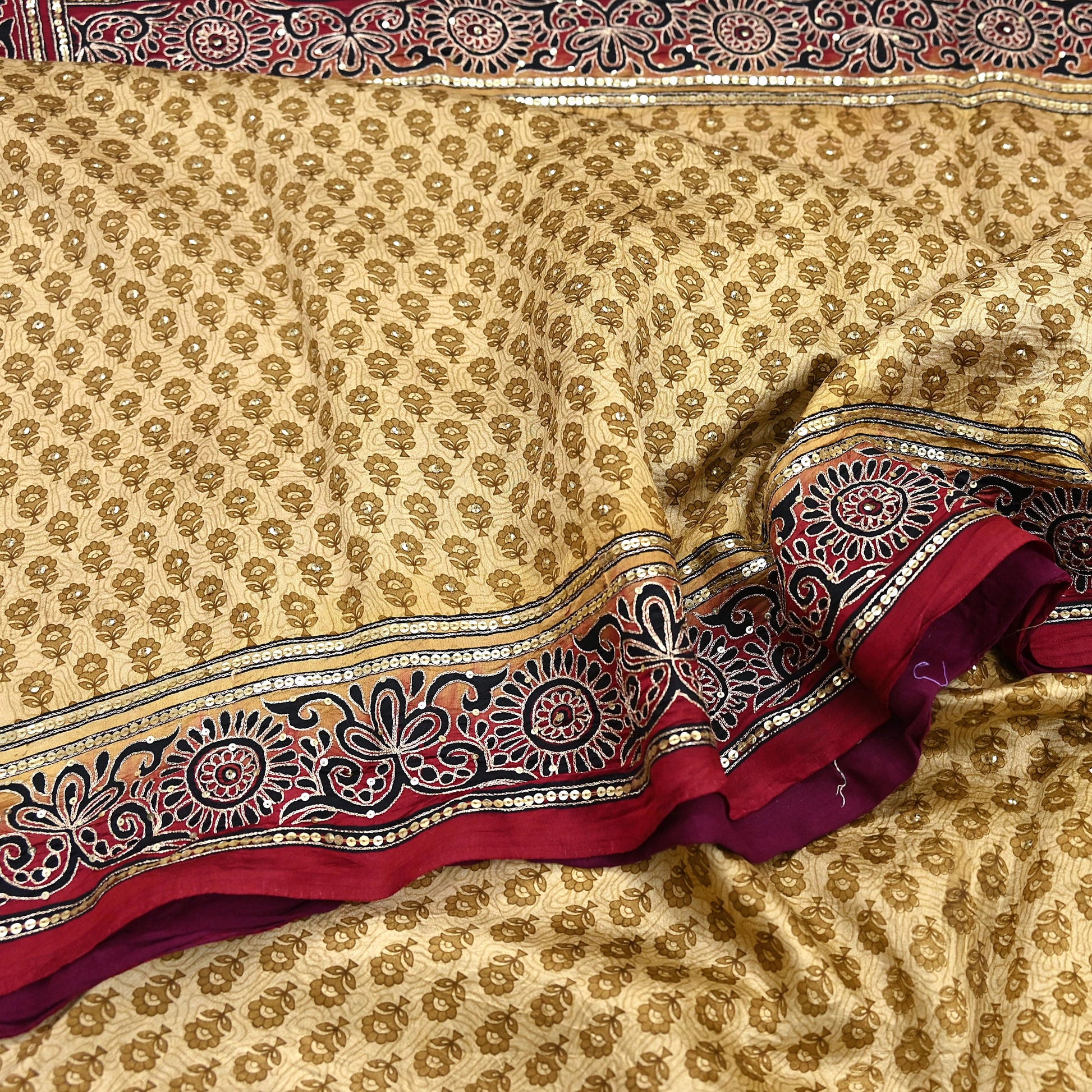 Indian Vintage Sari Beige & Maroon Pure Silk Hand Embroidered Sarees 5Yd Craft Fabric Sewing soft Quilting Crafting Ethnic Bollywood sarees