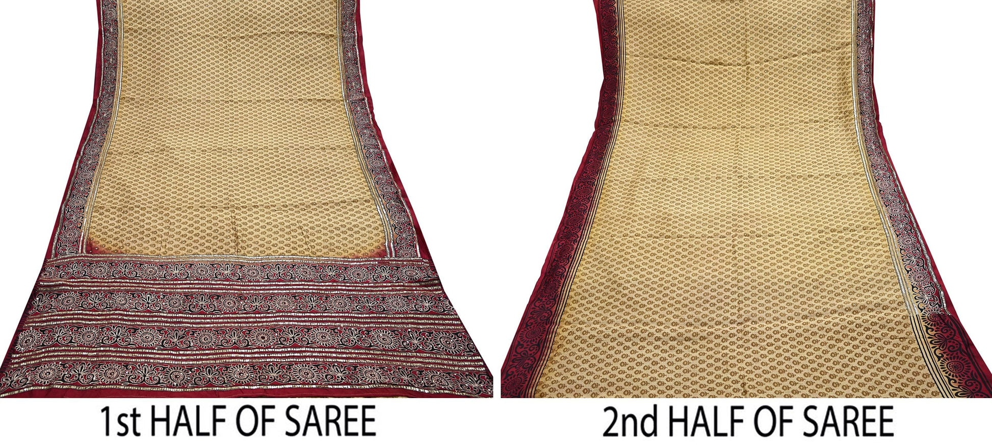 *Vintage Sari Beige & Maroon Colored Hand Embroidered Pure Silk Sarees.