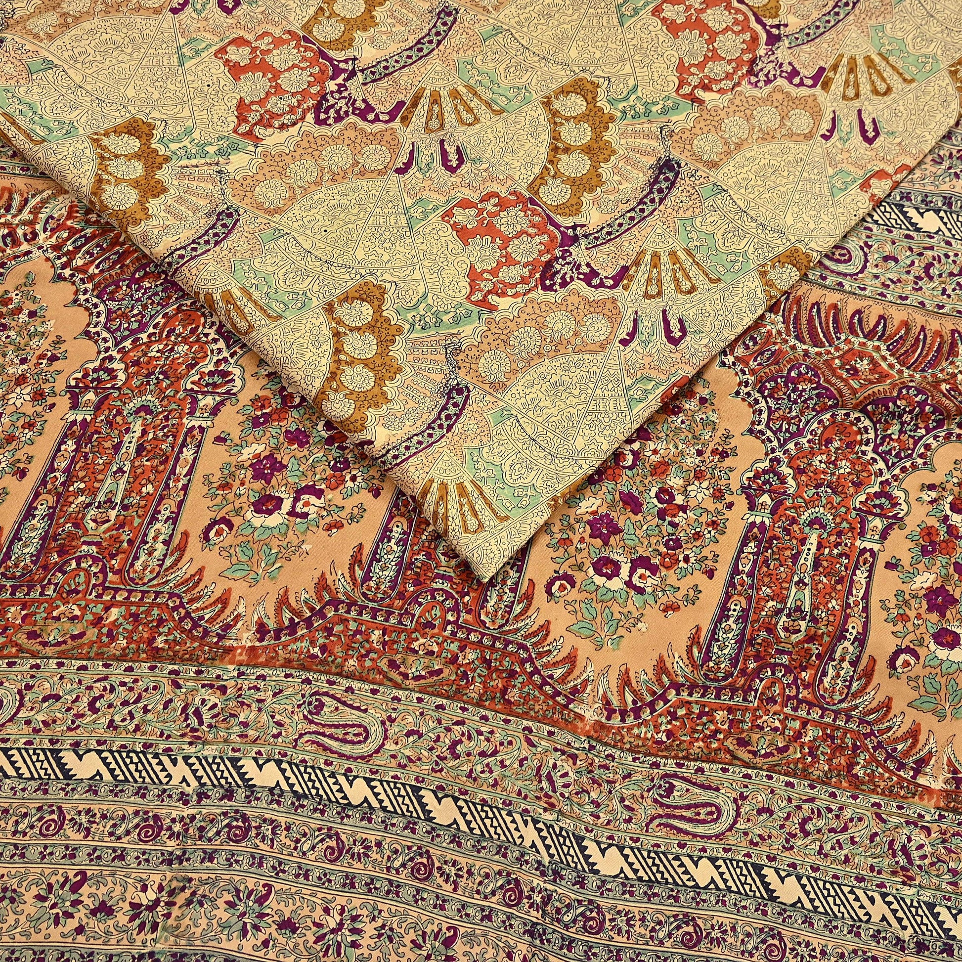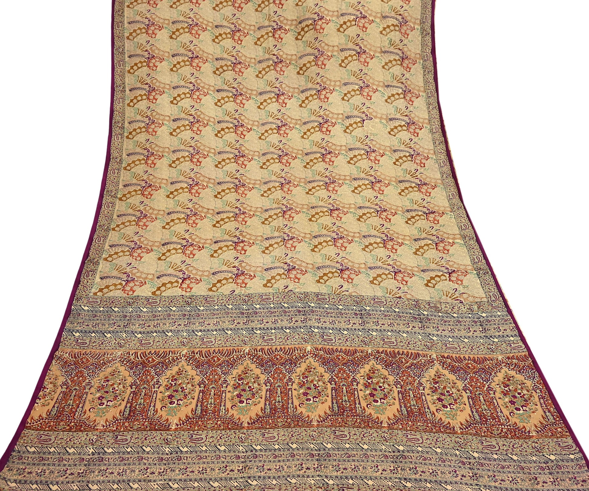 Indian Vintage Sari Beige & Maroon Pure Silk Printed Saree Fabric 6yard Sewing Craft Fabric DressMaking Wrap Floral